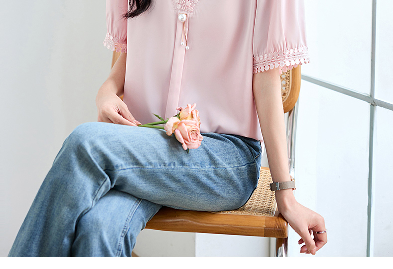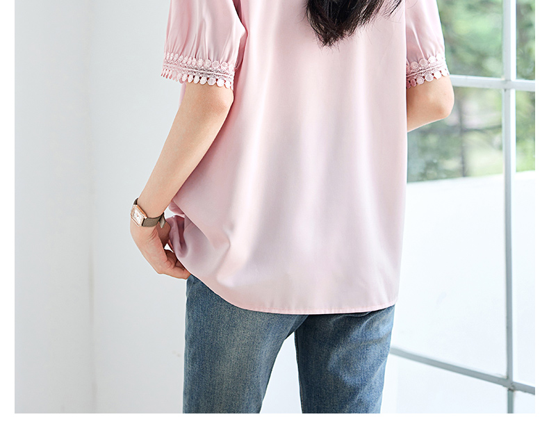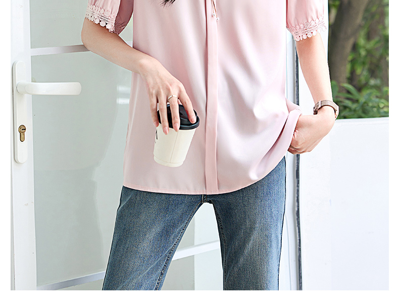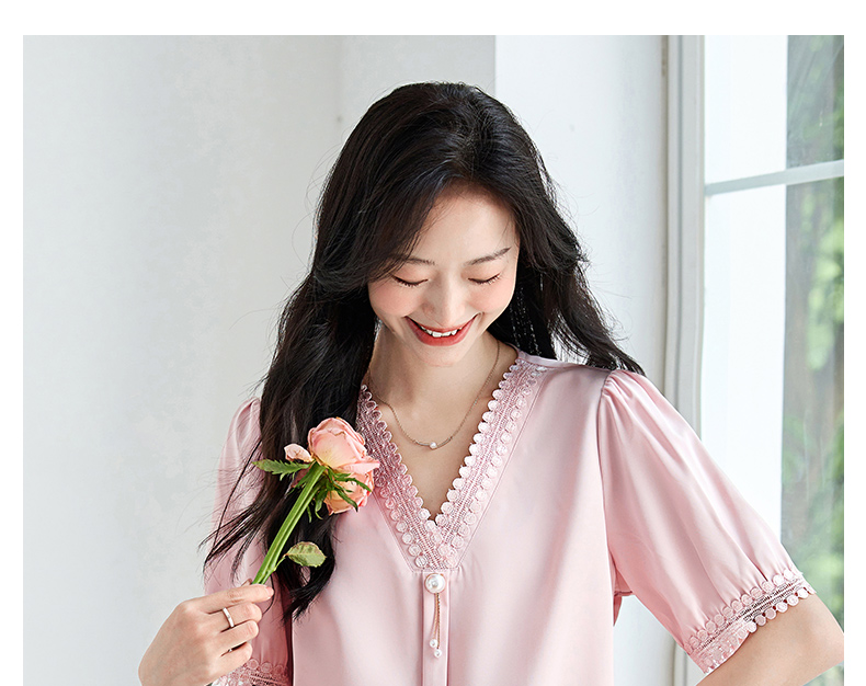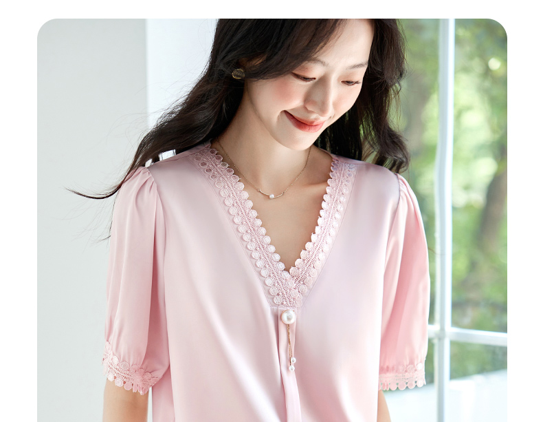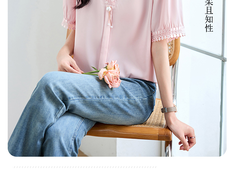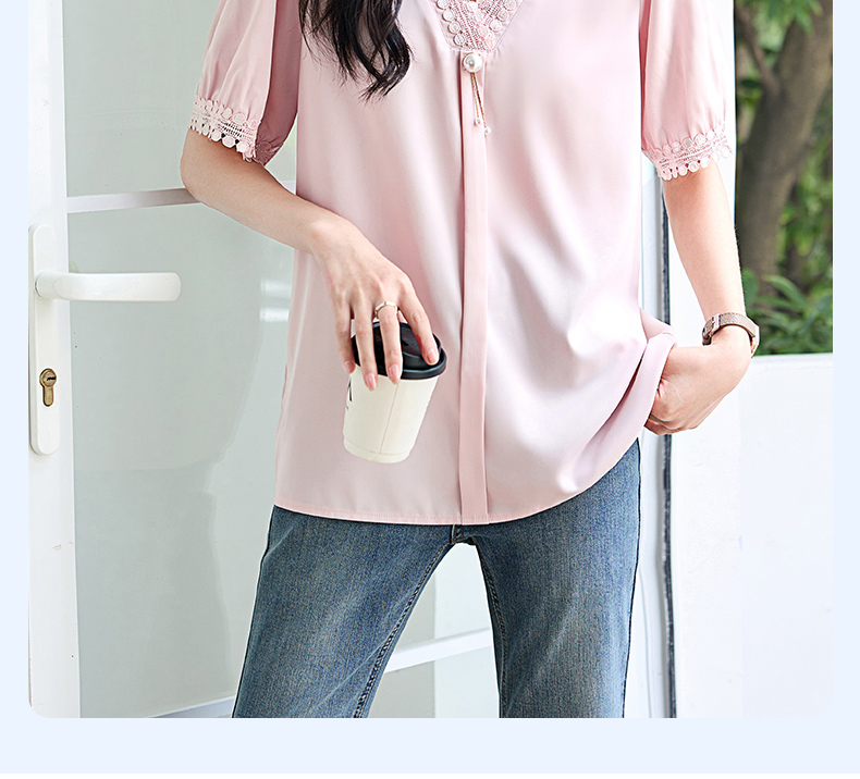 女士短袖雪纺衫夏季新款遮肚大码洋气上衣设计感小众V领气质小衫