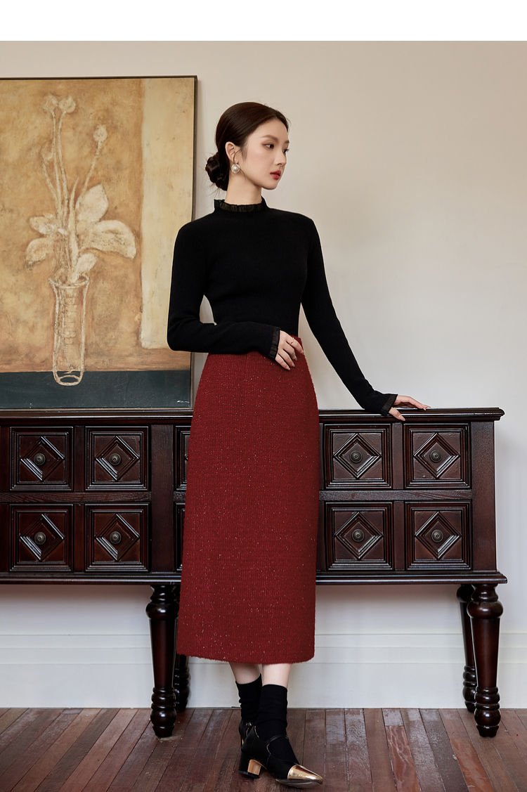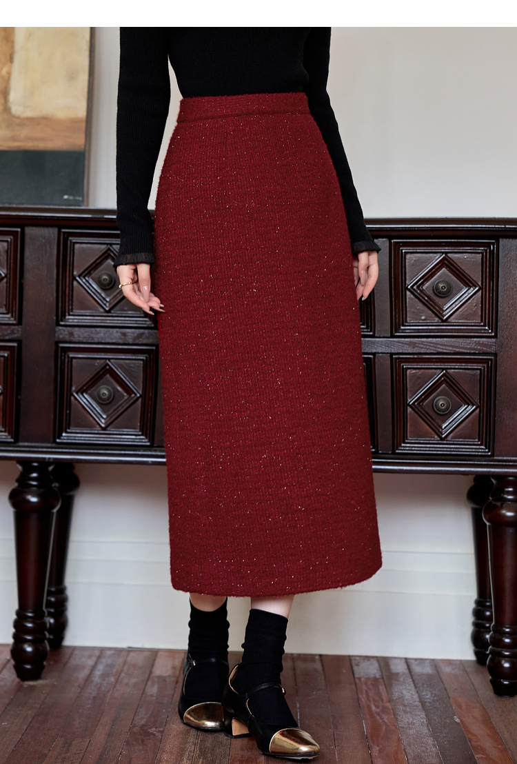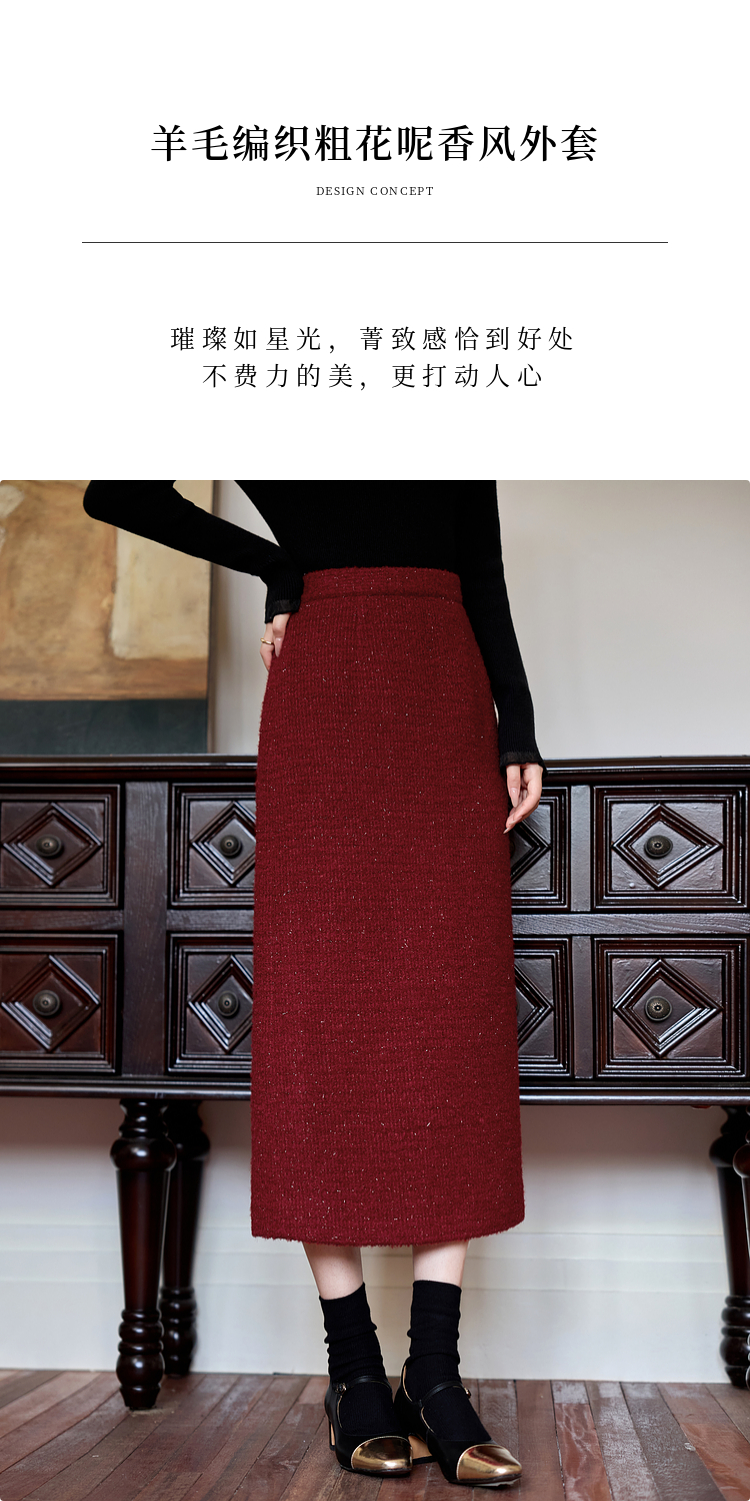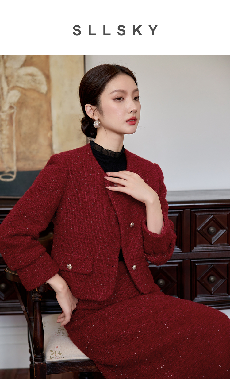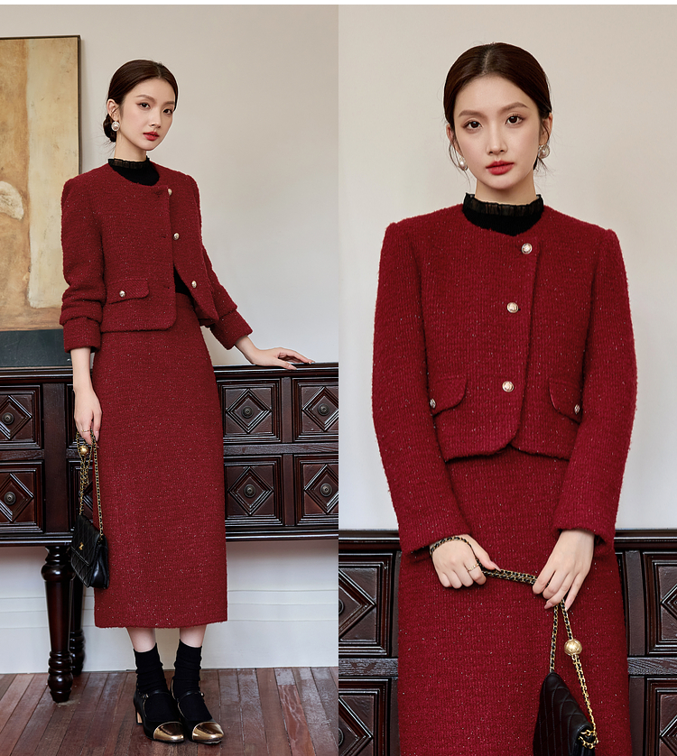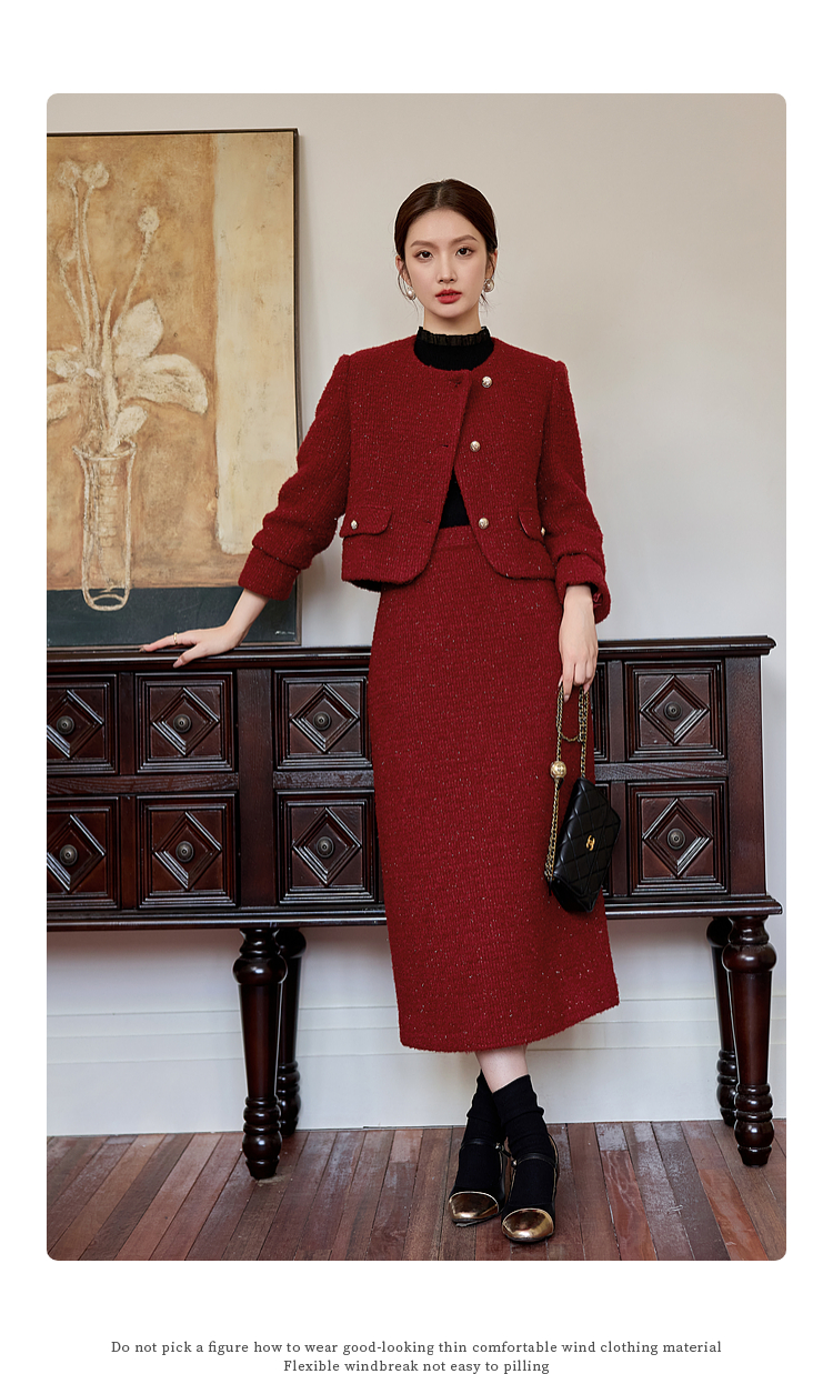 【年货节】熙世界小香风编织粗花呢羊毛短外套小个子红色开衫上衣2025冬装