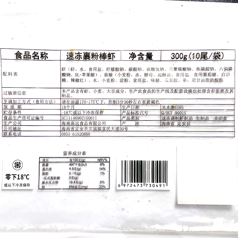 速冻粘粉棒虾30g*10尾 油炸虾棒芙蓉虾面包虾棒虾寿司虾商用油炸小吃半成品天妇罗虾(顺丰发货)