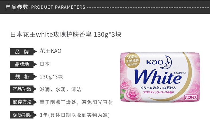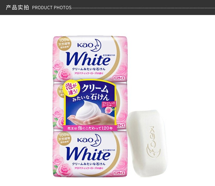 KAO/花王 WHITE天然植物沐浴玫瑰护肤香皂 130G*3有票JPY带授权招加盟代理