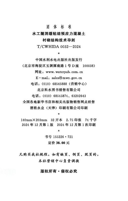 T/CWHIDA0032-2024水工隧洞缓粘结预应力混凝土衬砌结构技术导则(团体标准)