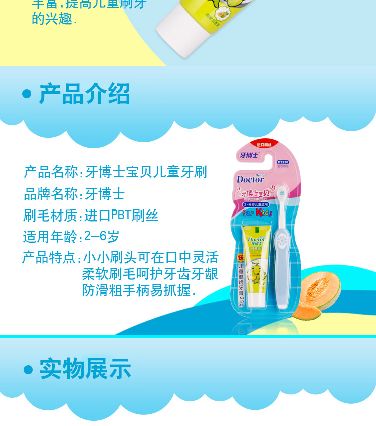 牙博士宝贝儿童(超细软毛)牙刷2-6岁适用DT220*1组