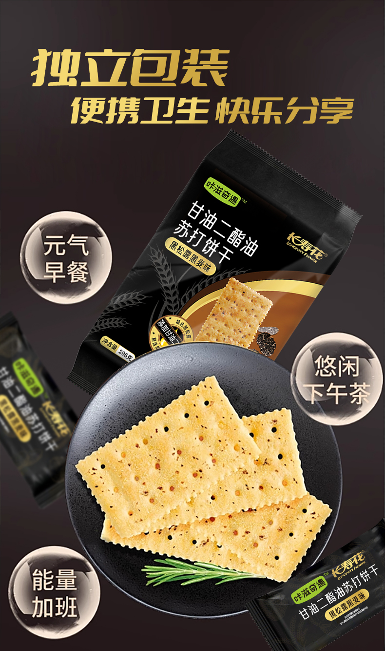 【黑松露甘油二酯油饼干】长寿花二酯黑松露黑麦苏打饼干下午茶早餐 295g
