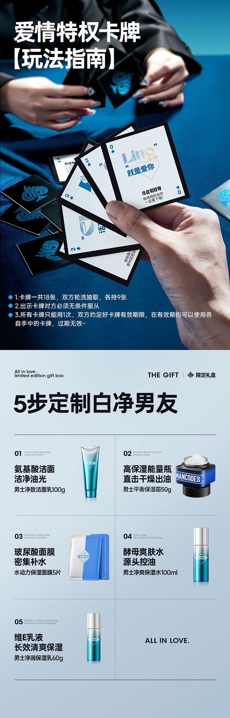 🎊春节不打烊 | 左颜右色 ALLINLOVE告白礼盒男士护肤套装控油祛痘清爽洗面奶精华乳面霜 五件套