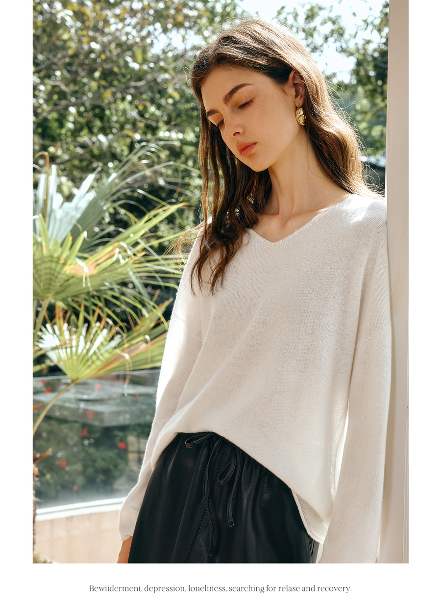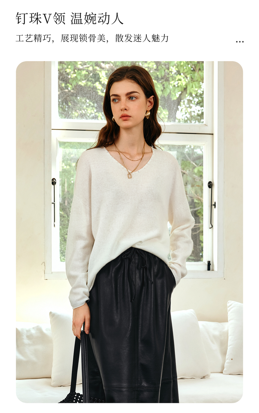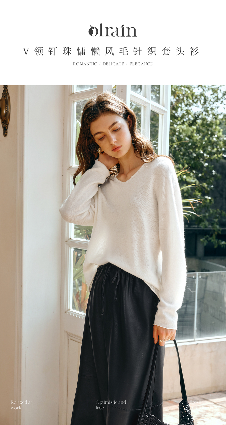 OLrain欧芮儿法式V领针织衫女春季2025新款钉珠慵懒风宽松套头衫