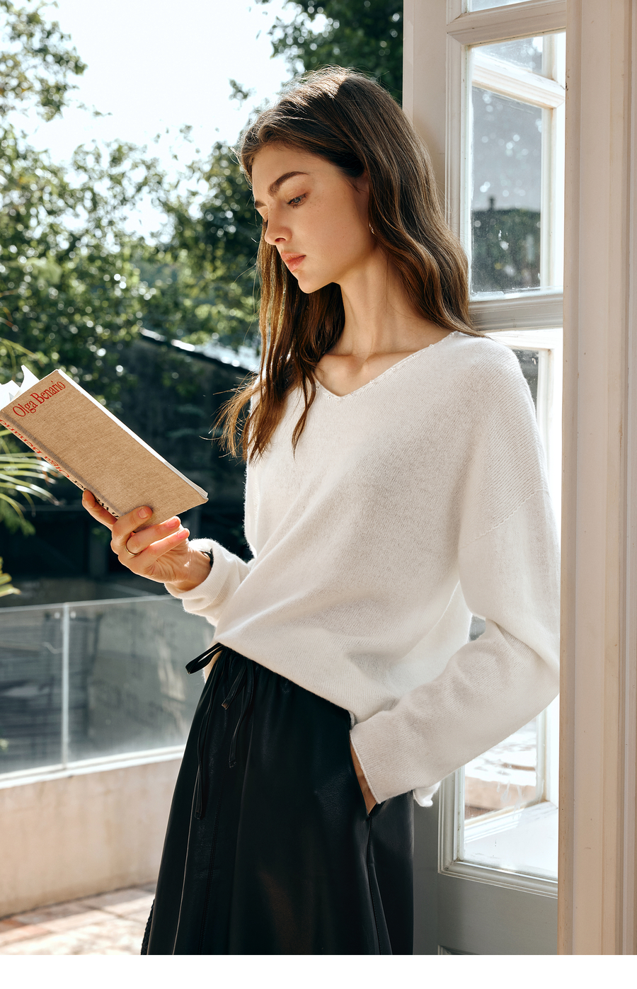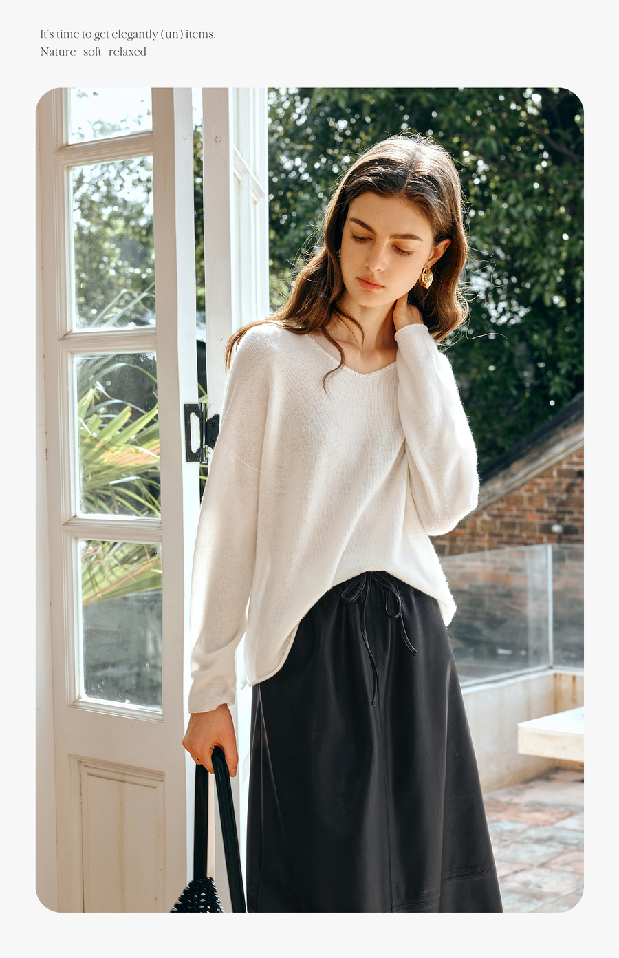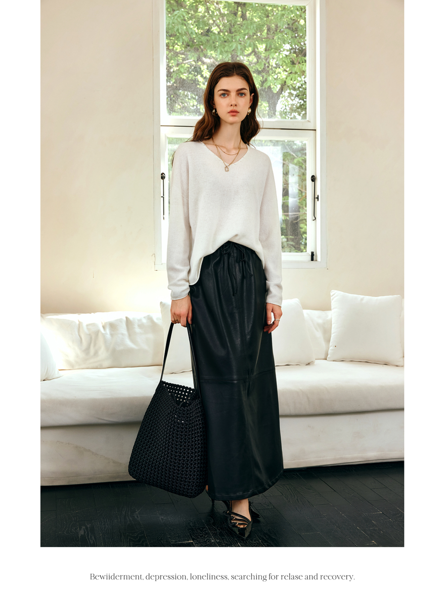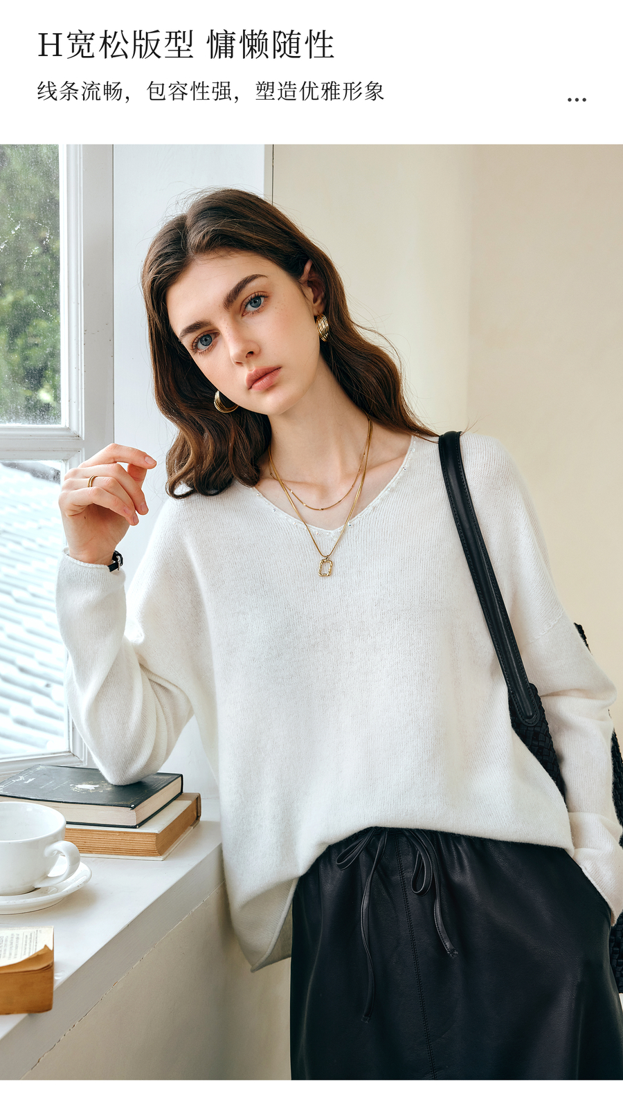 OLrain欧芮儿法式V领针织衫女春季2025新款钉珠慵懒风宽松套头衫