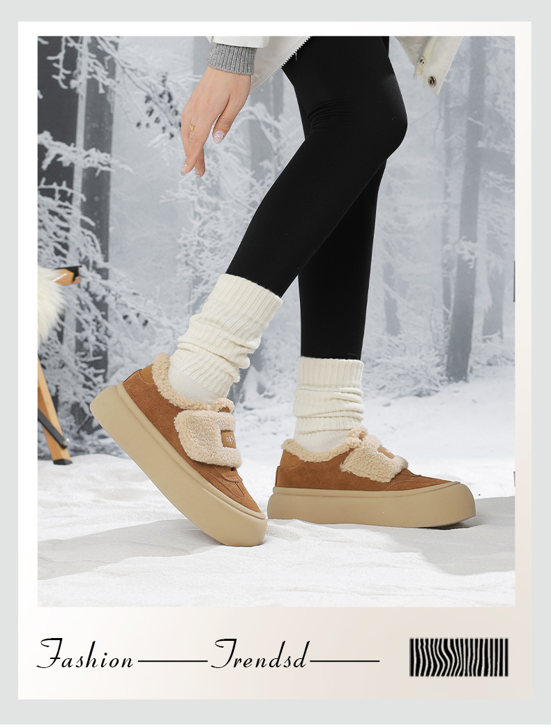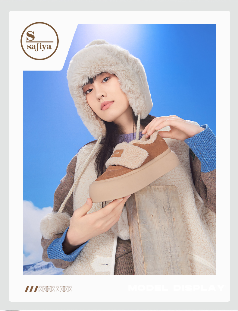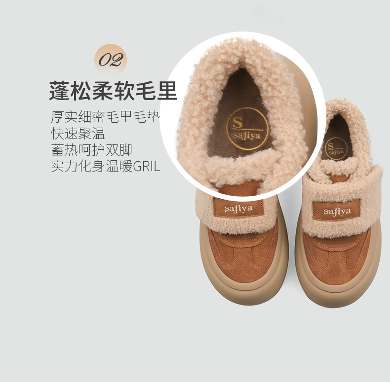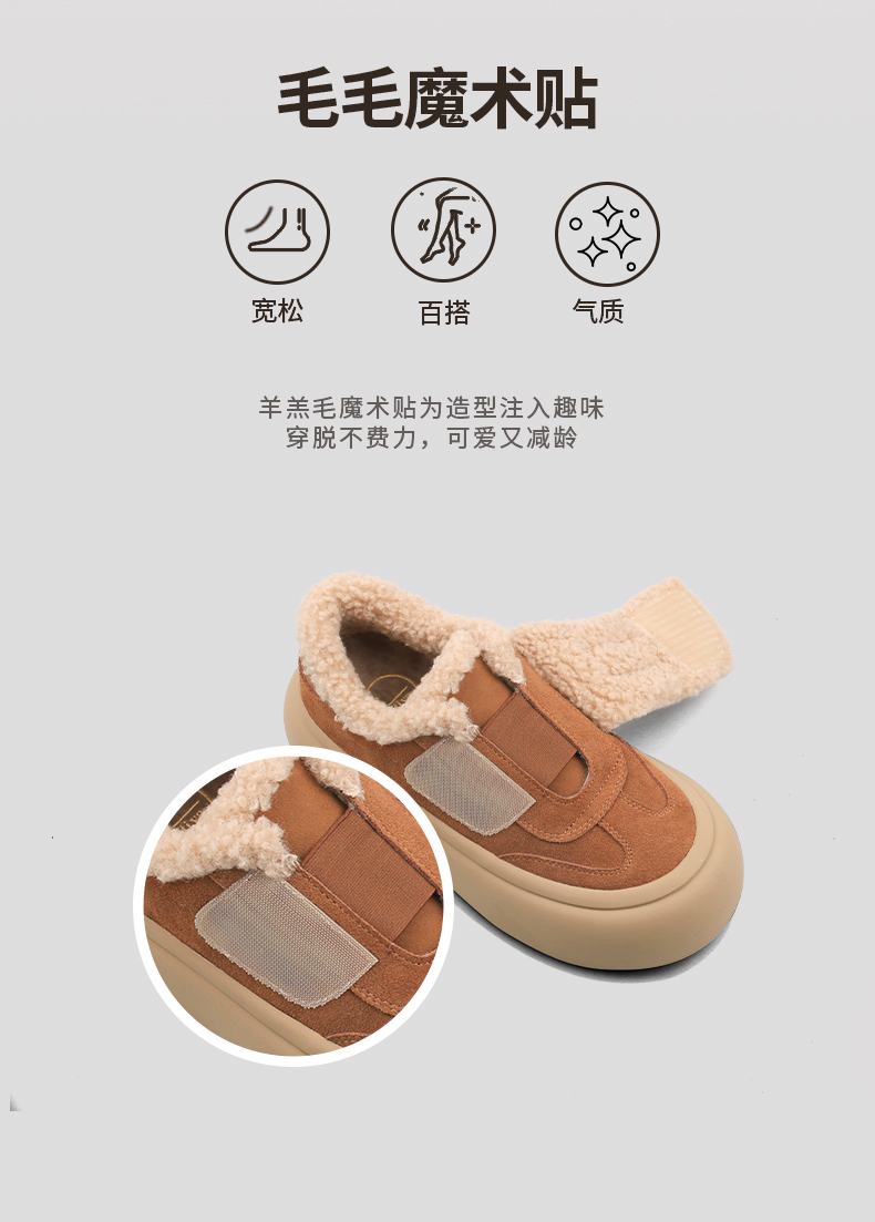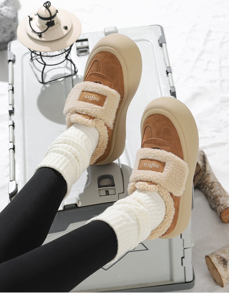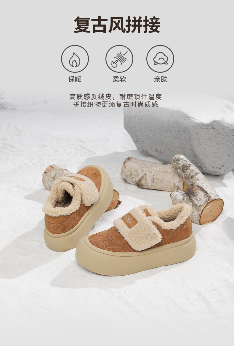 Safiya/索菲娅2024冬季奶呼呼厚底加绒保暖懒人魔术贴毛毛鞋 SF44112080