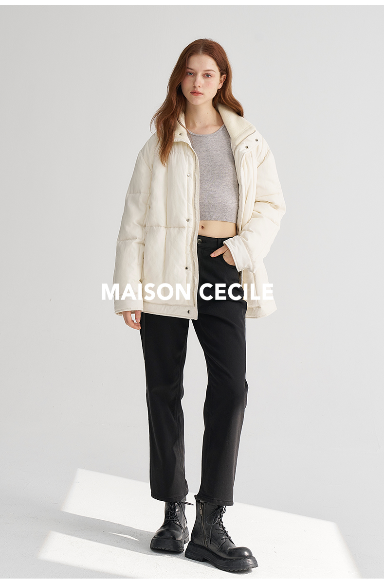 MAISON CECILE米色/黑色重磅羊毛宽松保暖西装领大衣