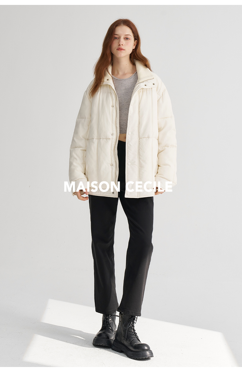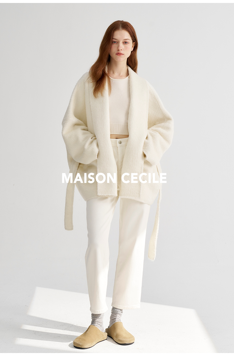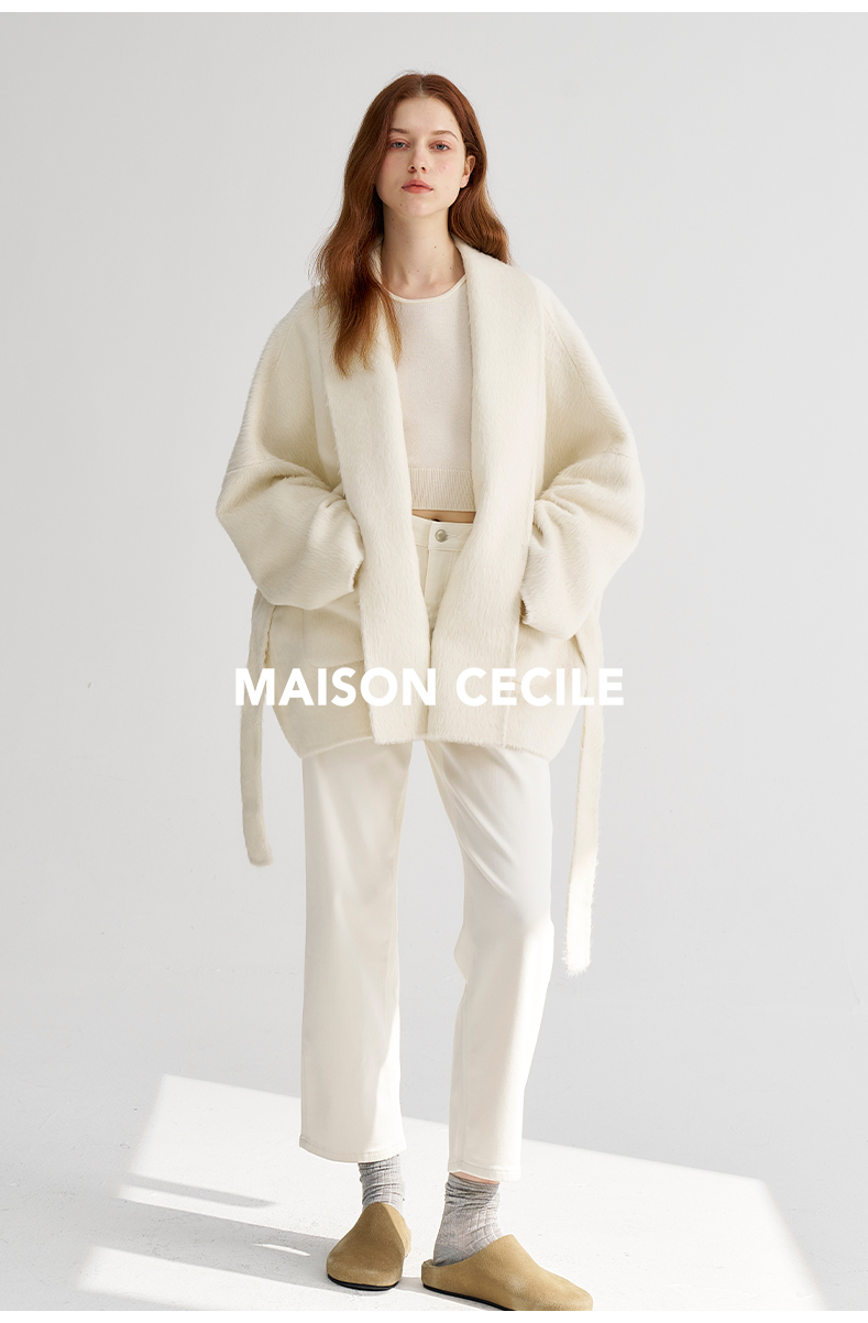 MAISON CECILE深灰/浅灰羊绒羊毛软糯蓬松感宽松立领大衣