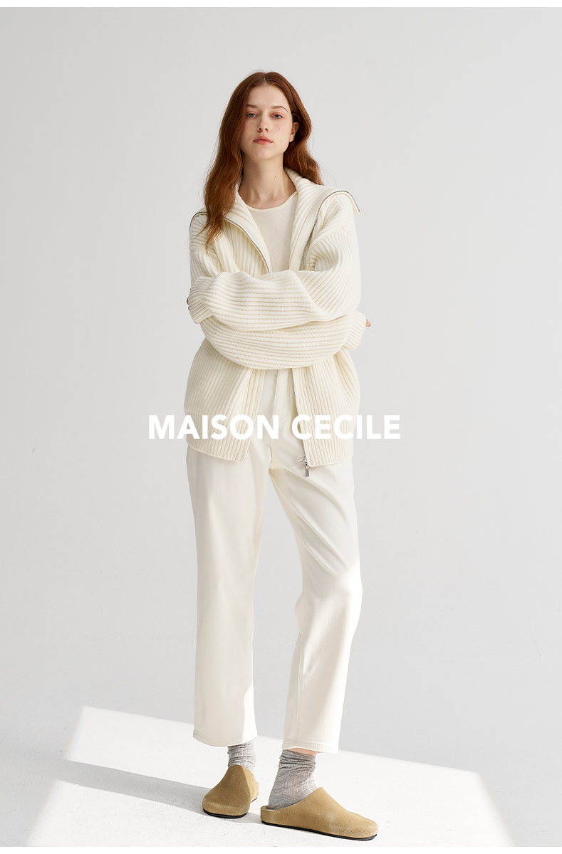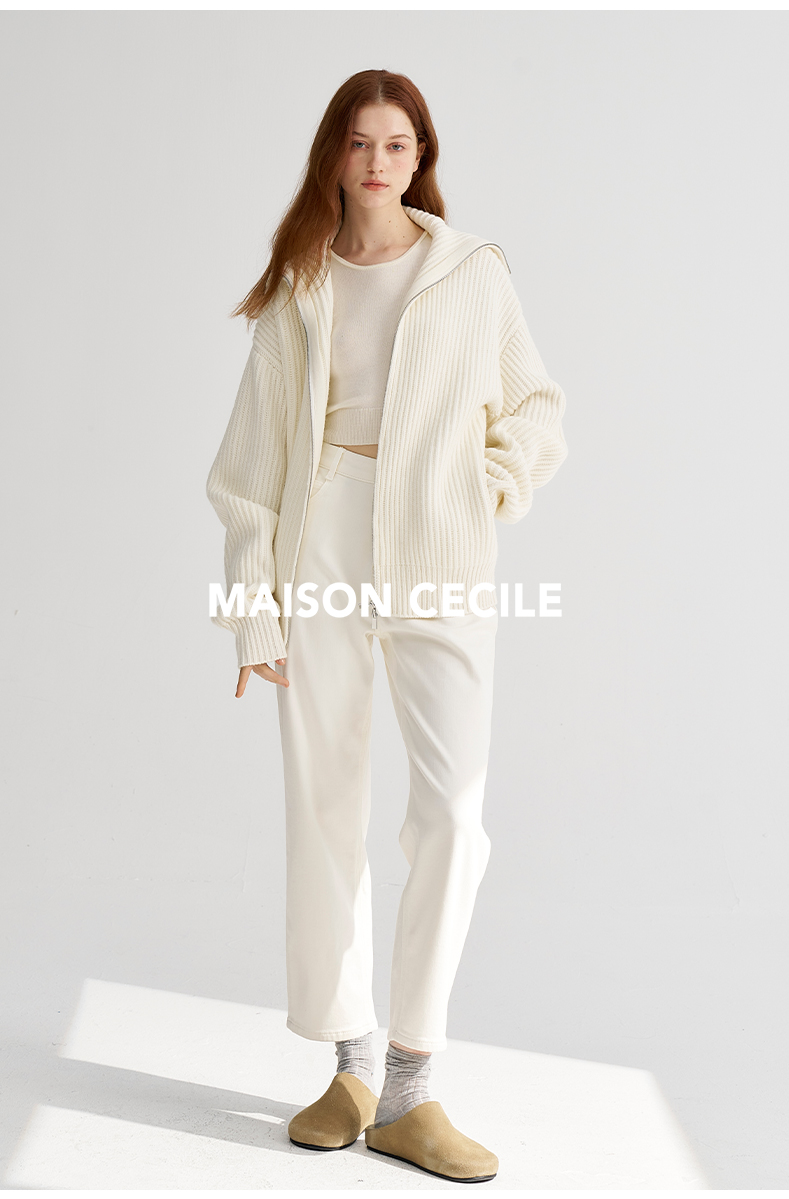 MAISON CECILE冬日8色/圈圈全羊毛保暖厚实修饰腿型镰刀弧形裤
