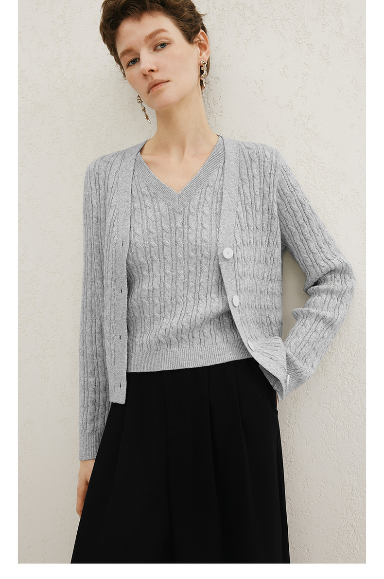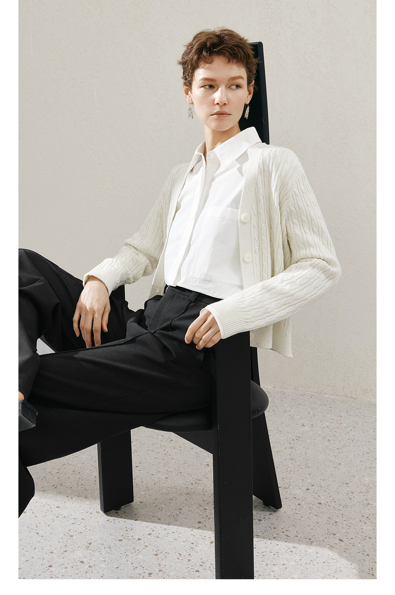 【商场同款】麦檬知识分子风复古立体绞花毛衫开衫5F1931321