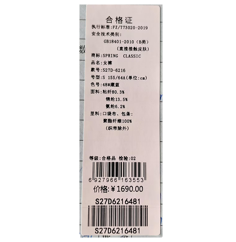 西贝伦长裤S27D6216