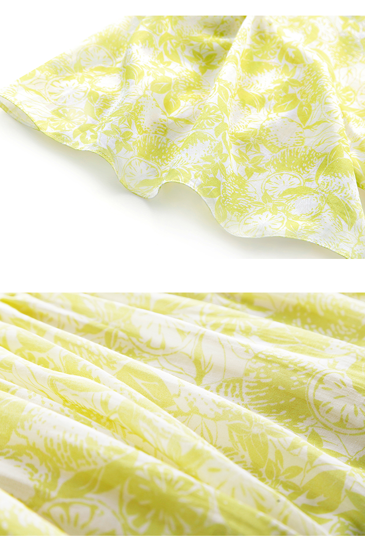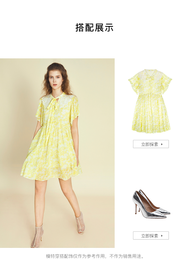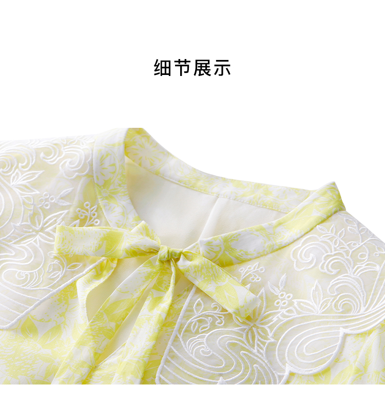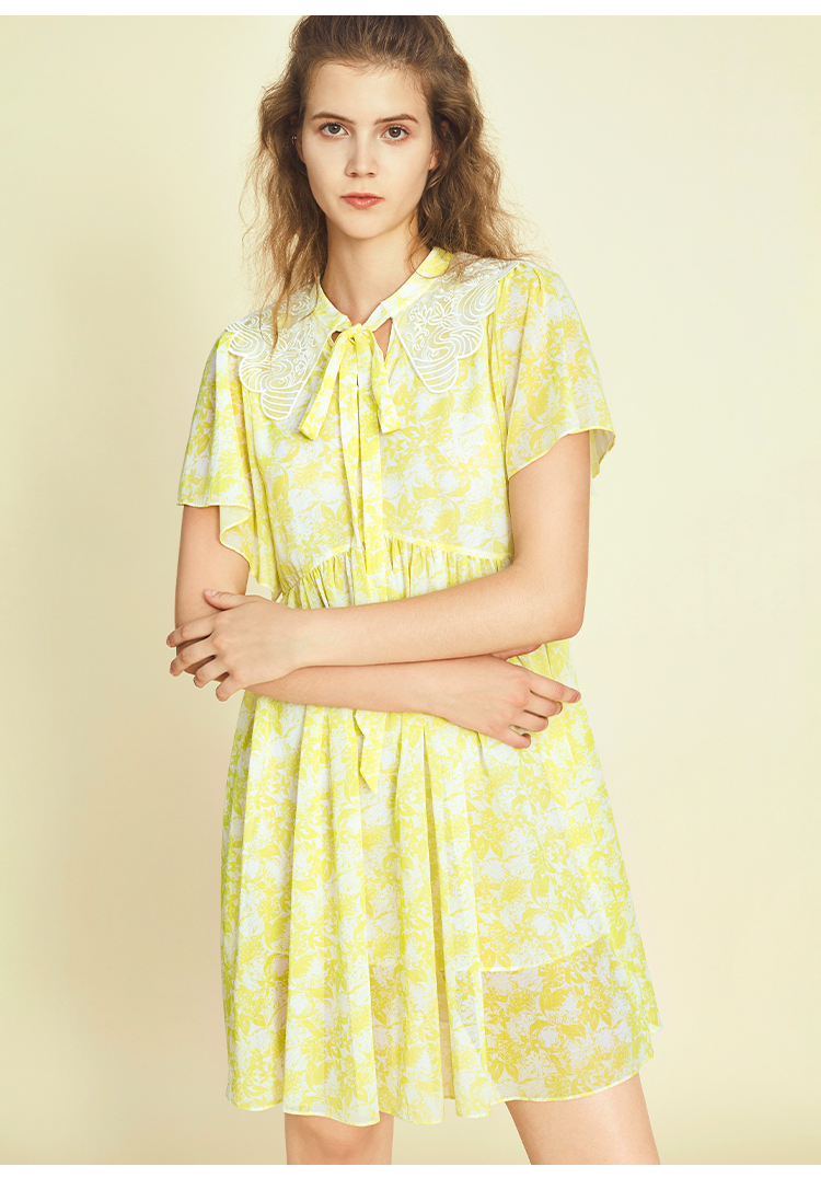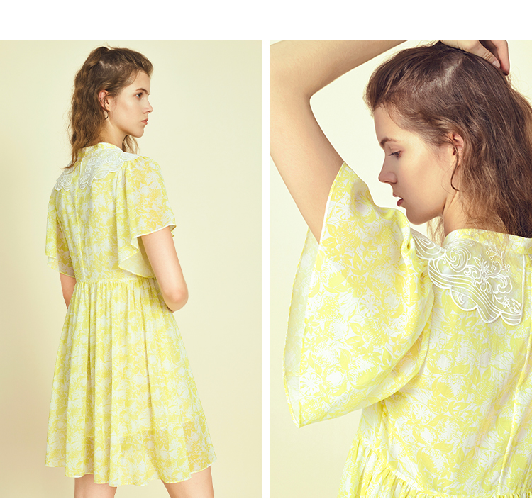 RSG郭培成衣品牌原创设计蕾丝印花女士连衣裙短袖黄色夏季