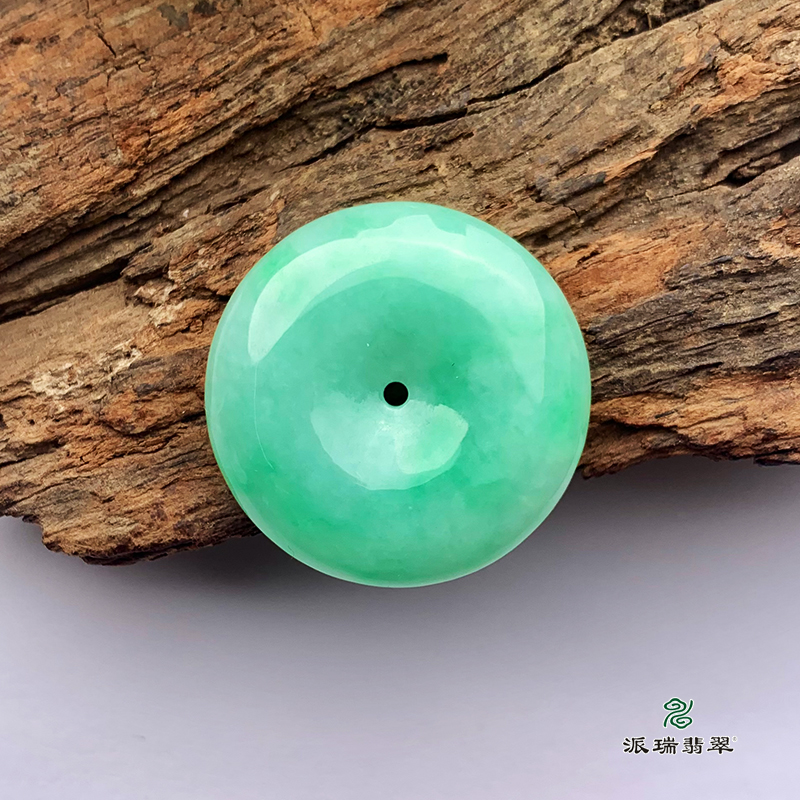 派瑞翡翠 翡翠平安扣 糯种 满绿