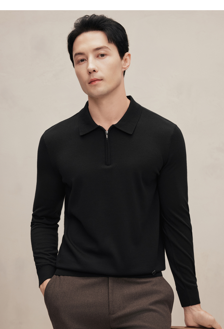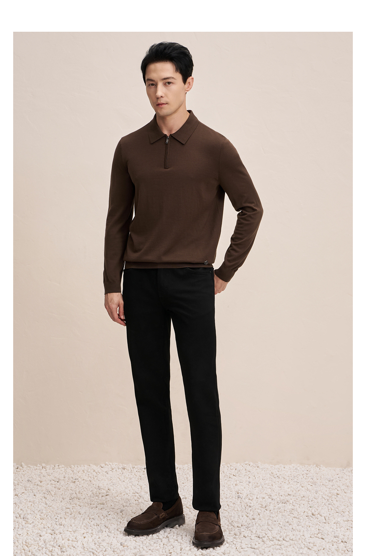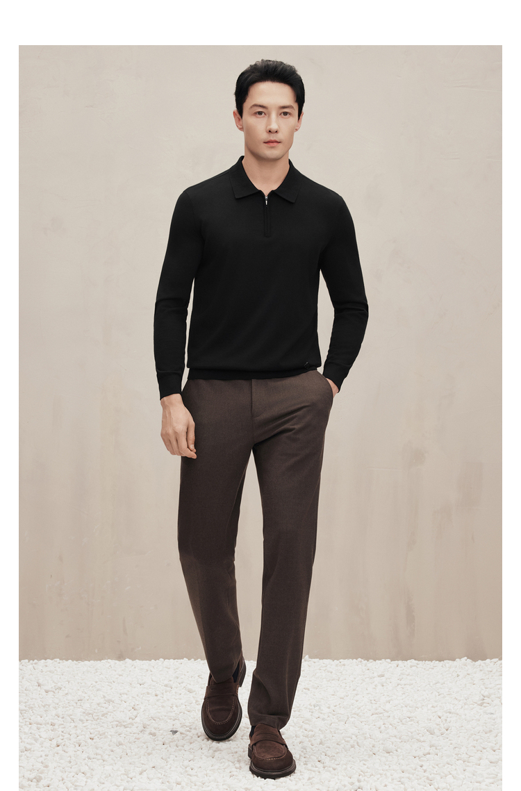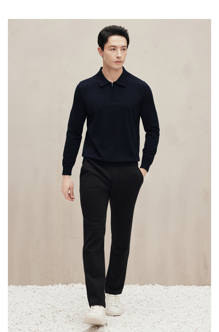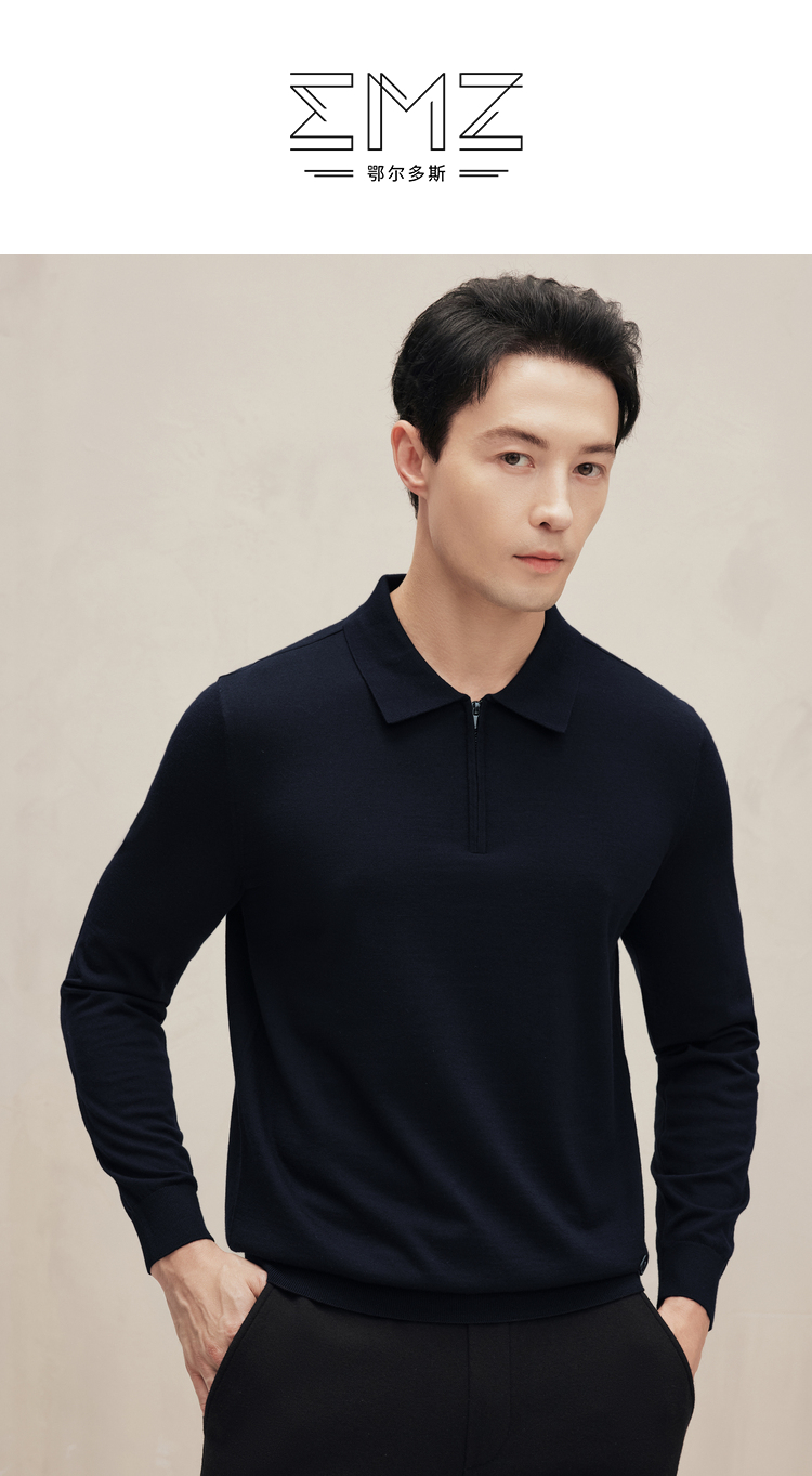 EMZ鄂尔多斯 男士保暖针织翻领商务休闲毛衣 9D7605001