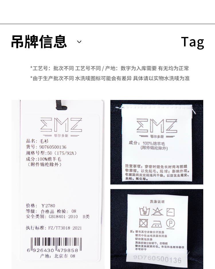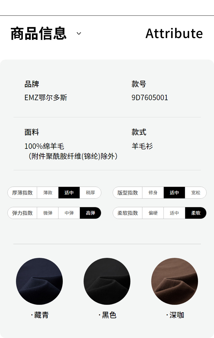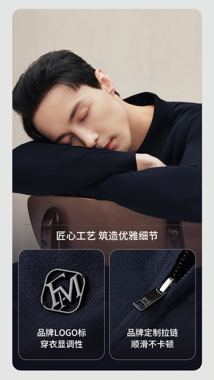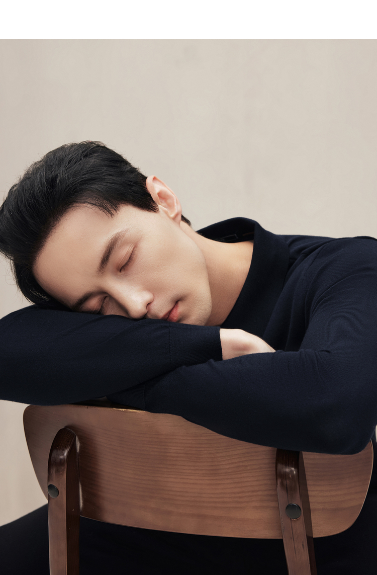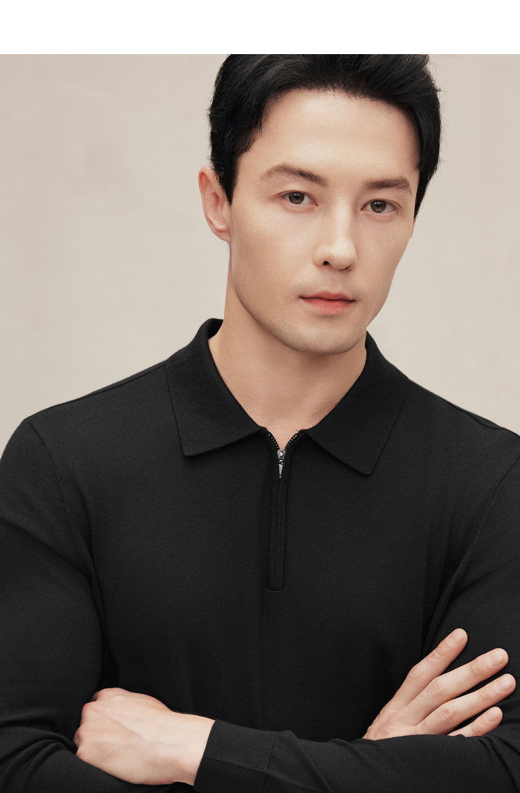 EMZ鄂尔多斯 男士保暖针织翻领商务休闲毛衣 9D7605001