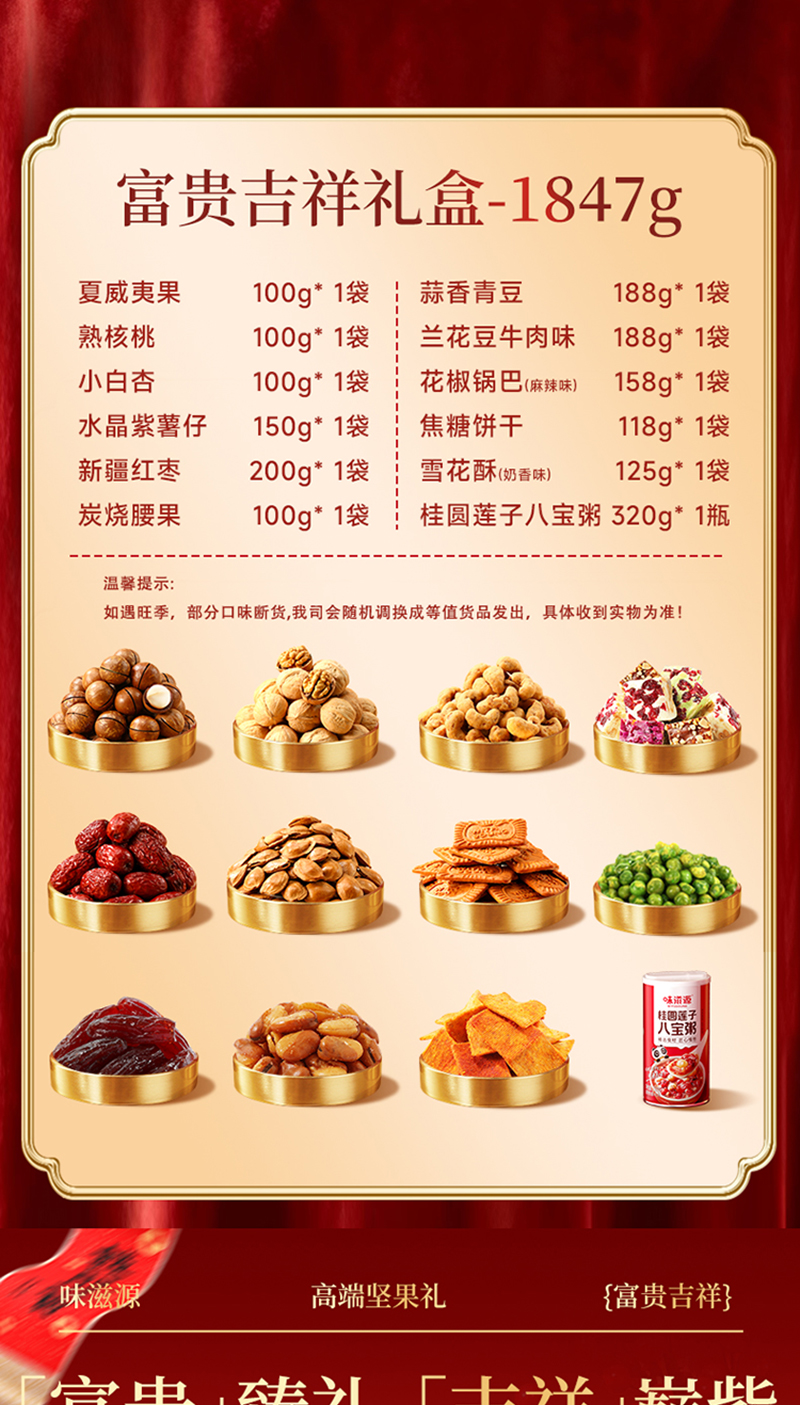 【味滋源】富贵吉祥 巅紫坚果礼 1847g 零食大礼包礼盒年货送礼团购员工福利-FN