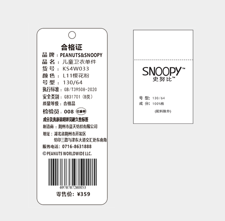 【清仓捡漏】【90-130】【史努比】女童春秋长袖t恤