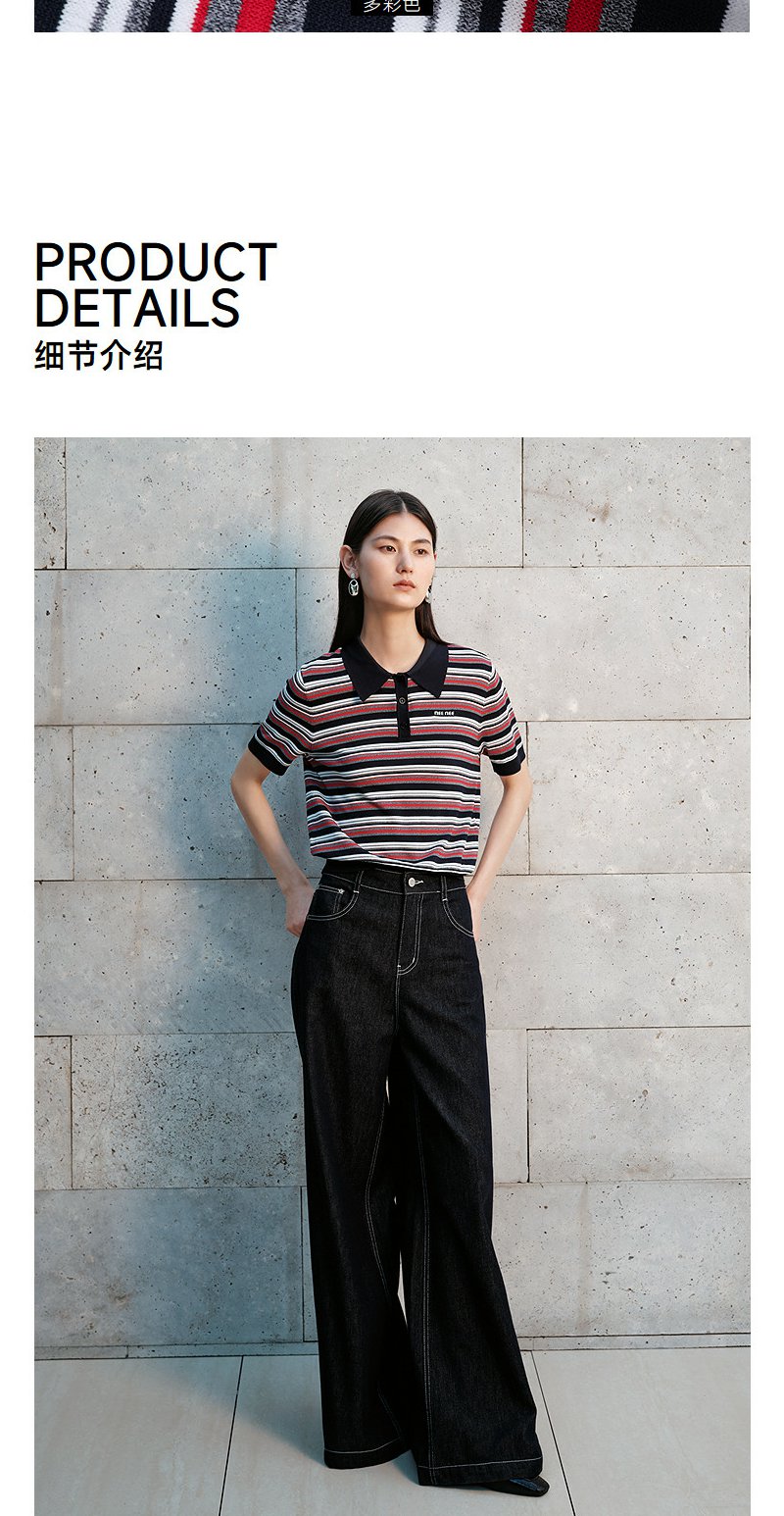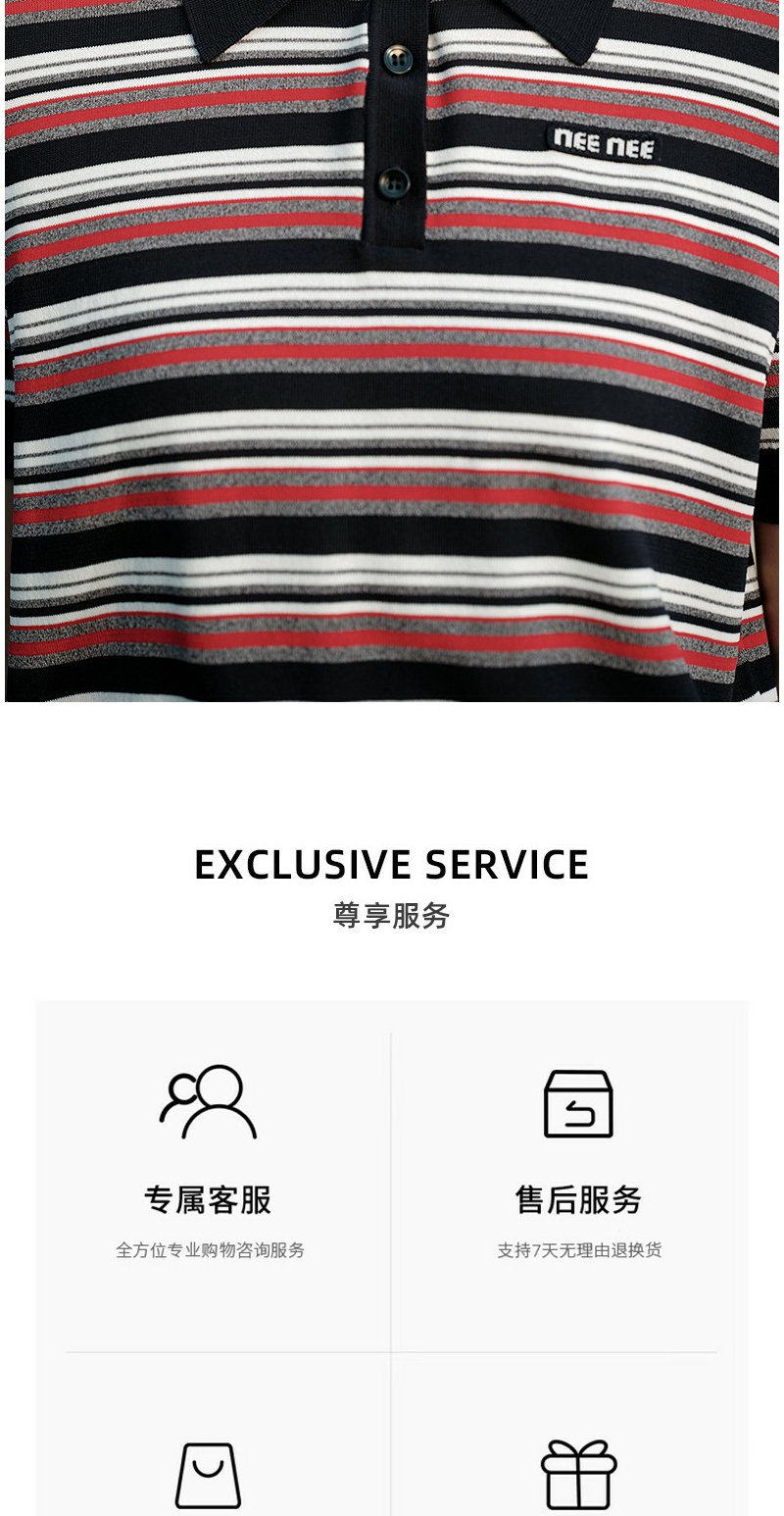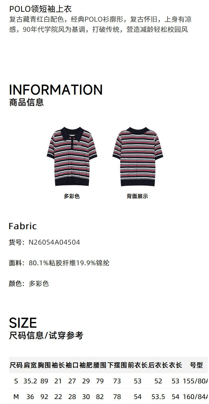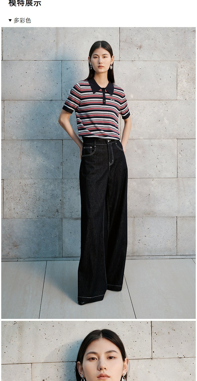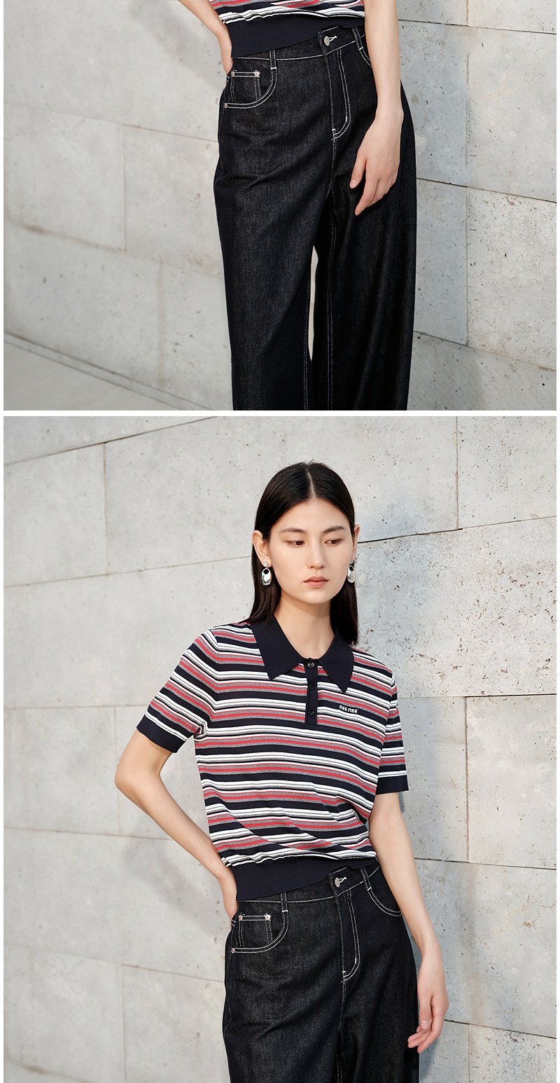 NEELLY纳俪商场同款夏季新款POLO领短袖针织衫女条纹撞色舒适上衣N26054A04504