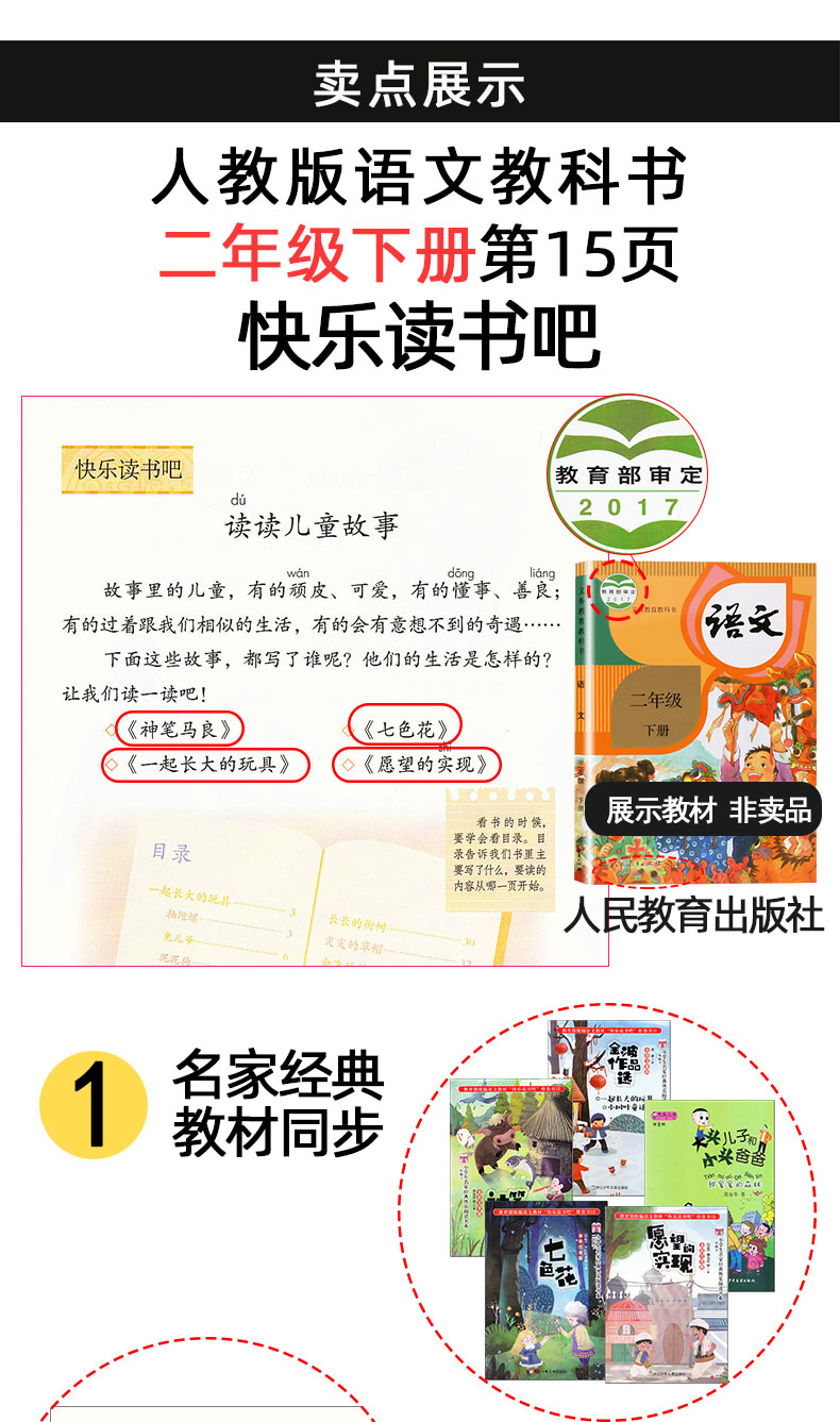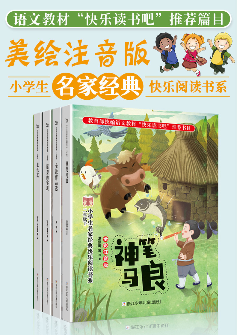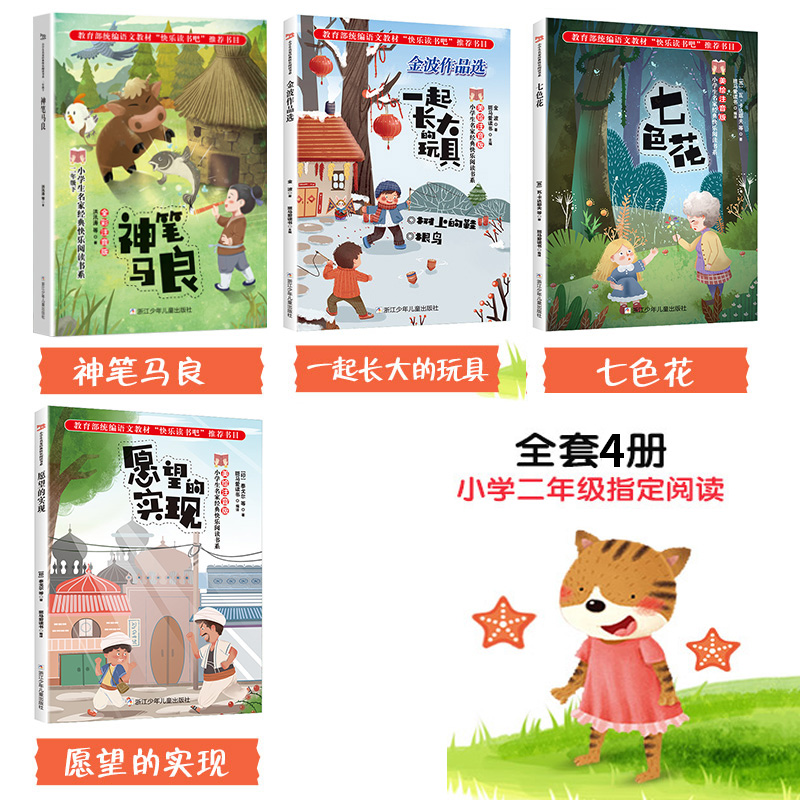 快乐读书吧二年级下册彩绘注音版 全套4册 神笔马良七色花愿望的实现金波作品选 2年级下册学生必读