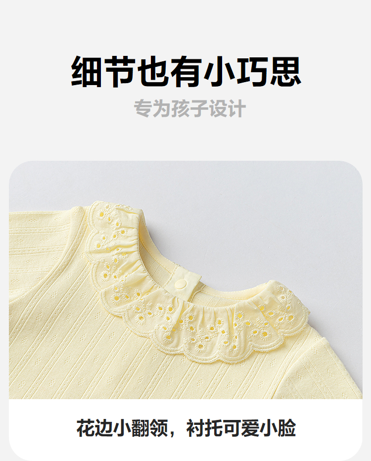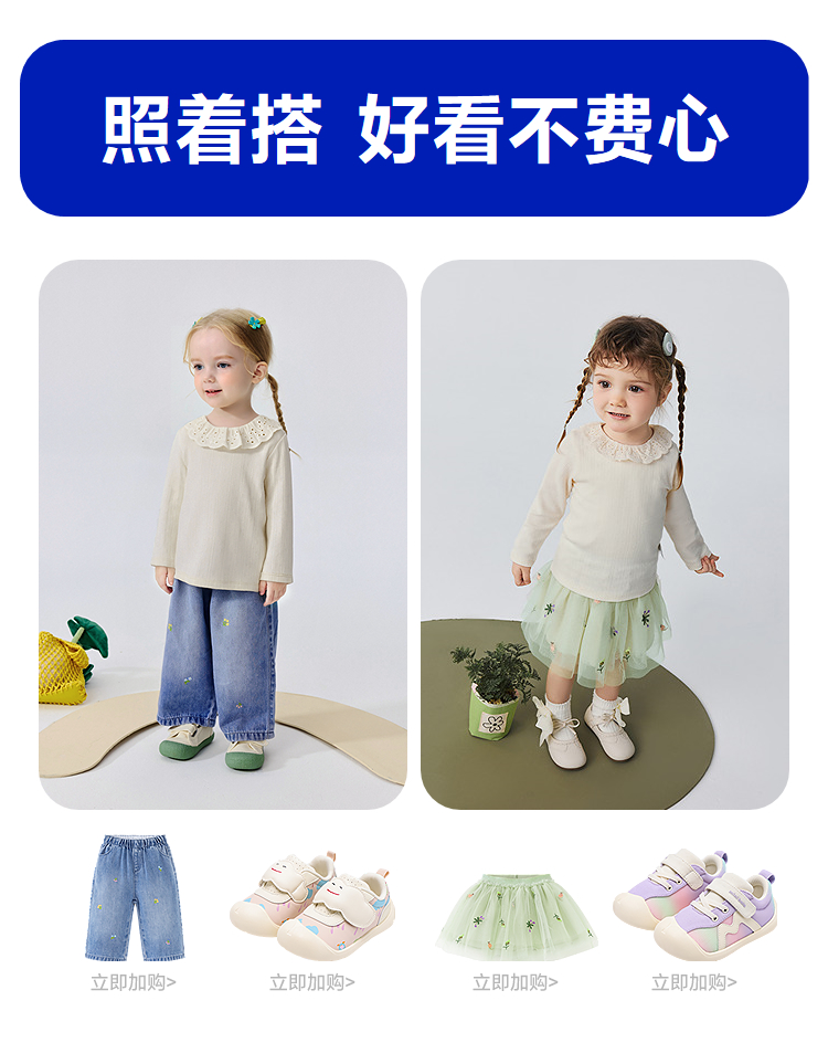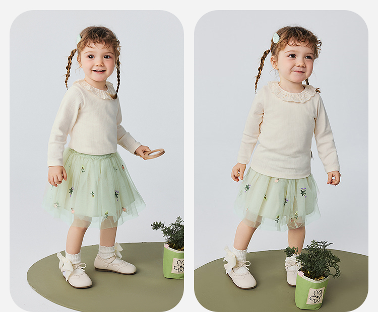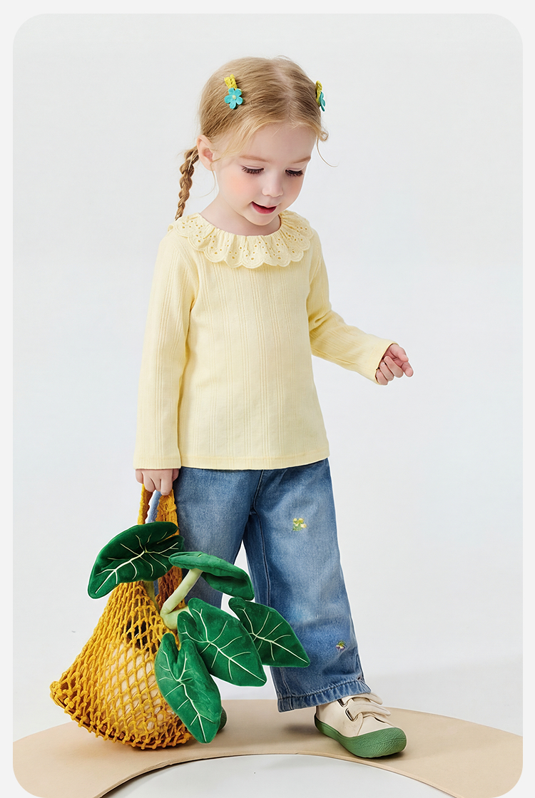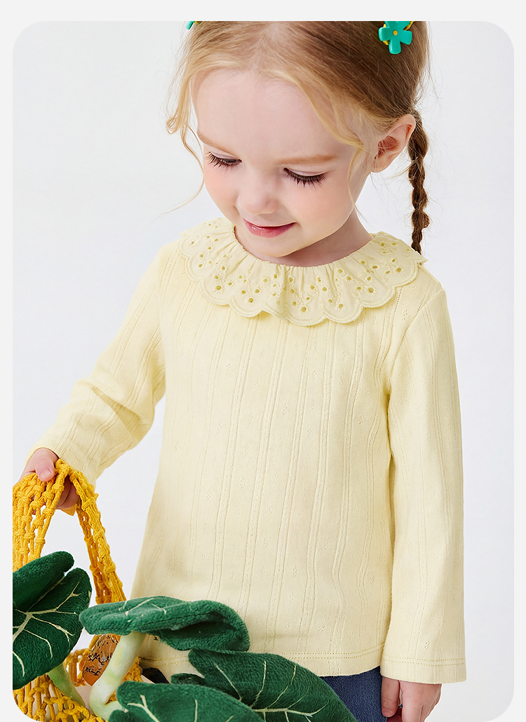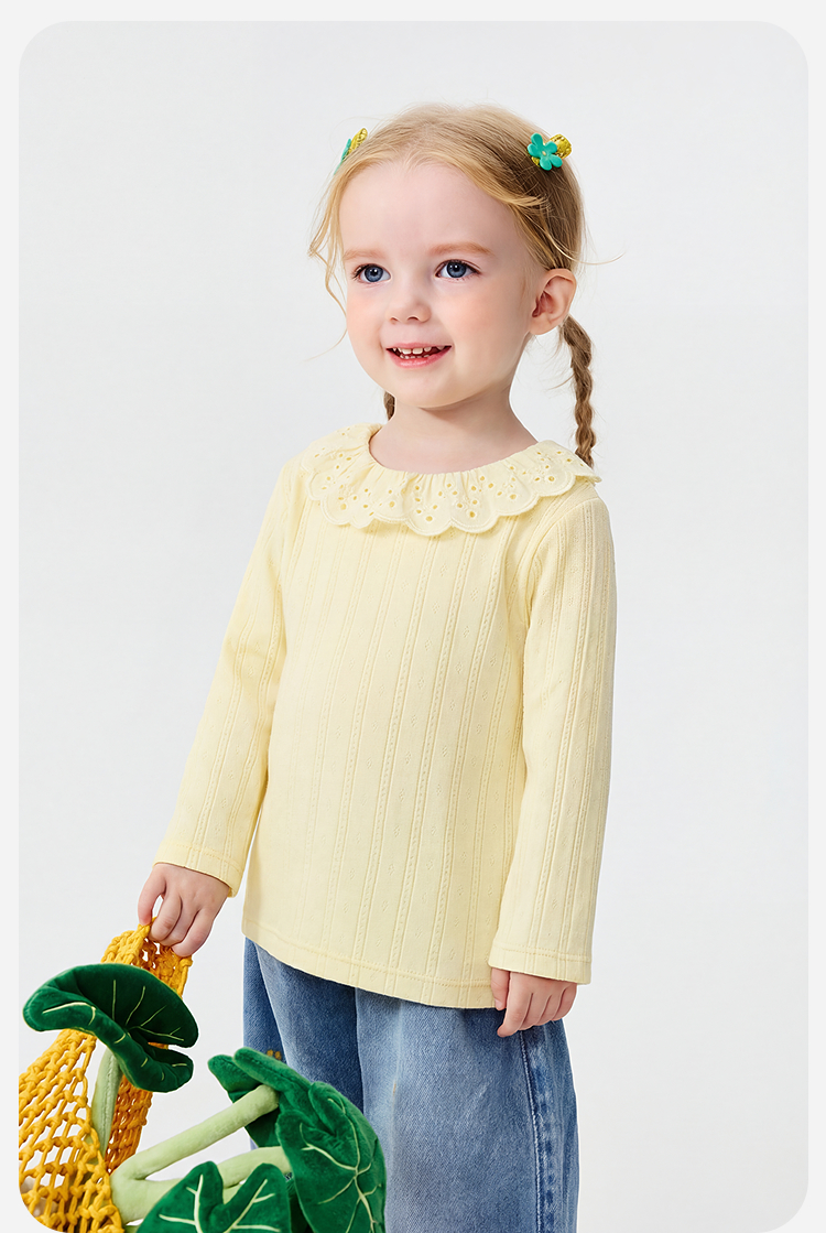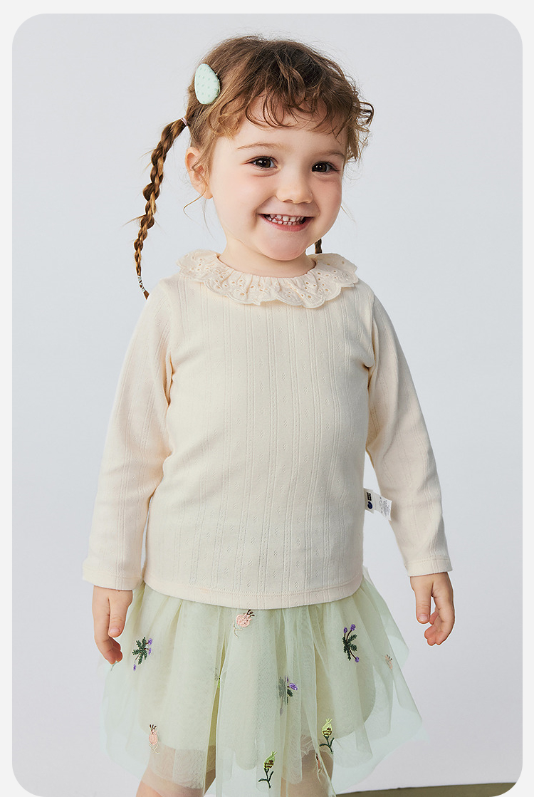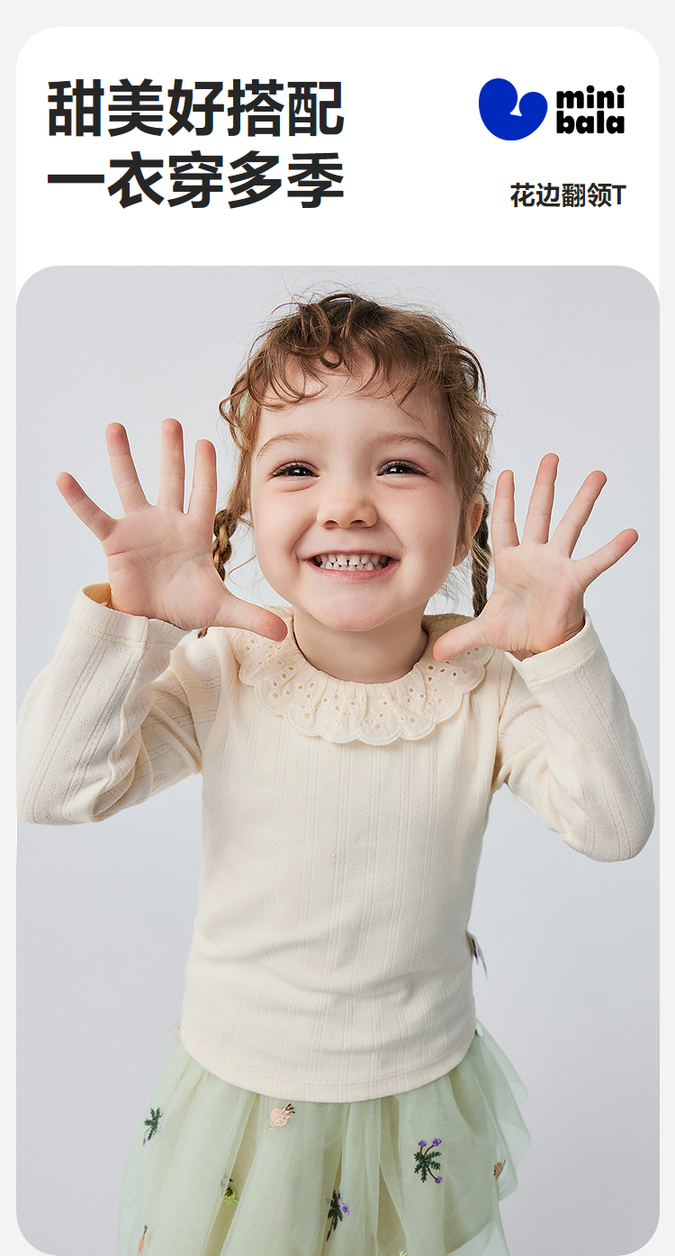 迷你巴拉女童宝宝长袖T恤春季新款柔软亲肤不易变形甜美翻领上衣★