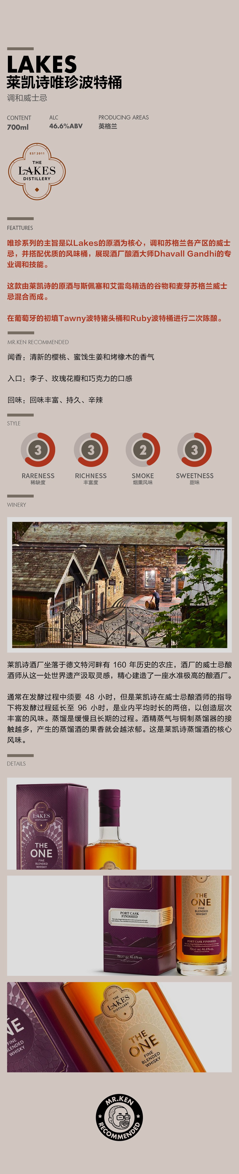 莱凯诗(Lakes)唯珍波特桶调和威士忌(赠随机小酒版)