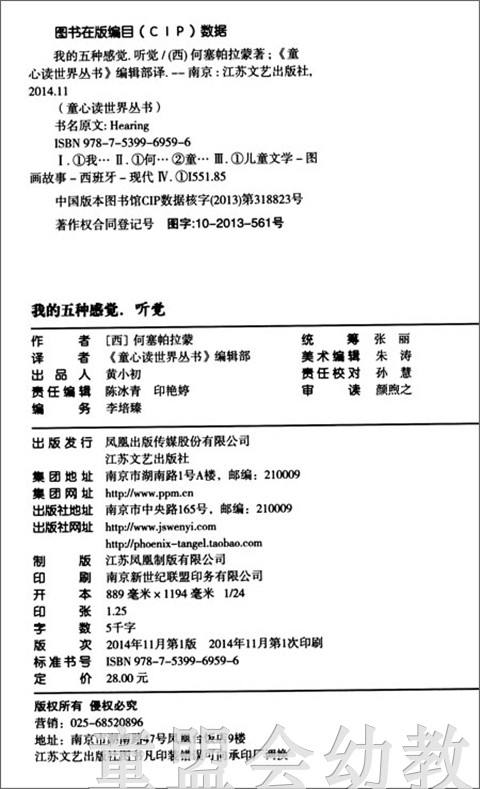 我的五种感觉:听觉 何塞帕拉蒙 3-4-5-6岁儿童读物 正版
