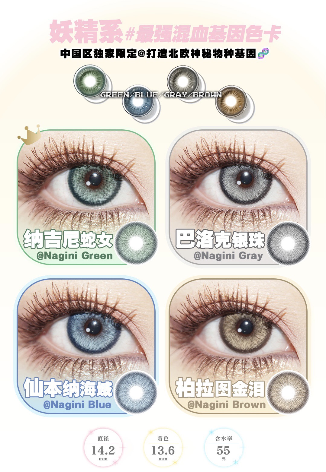 日抛 纳吉尼蛇女/柏拉图金泪/仙本那海域/巴洛克银珠 蓝/绿/棕/灰 日抛无售后!huohuocon