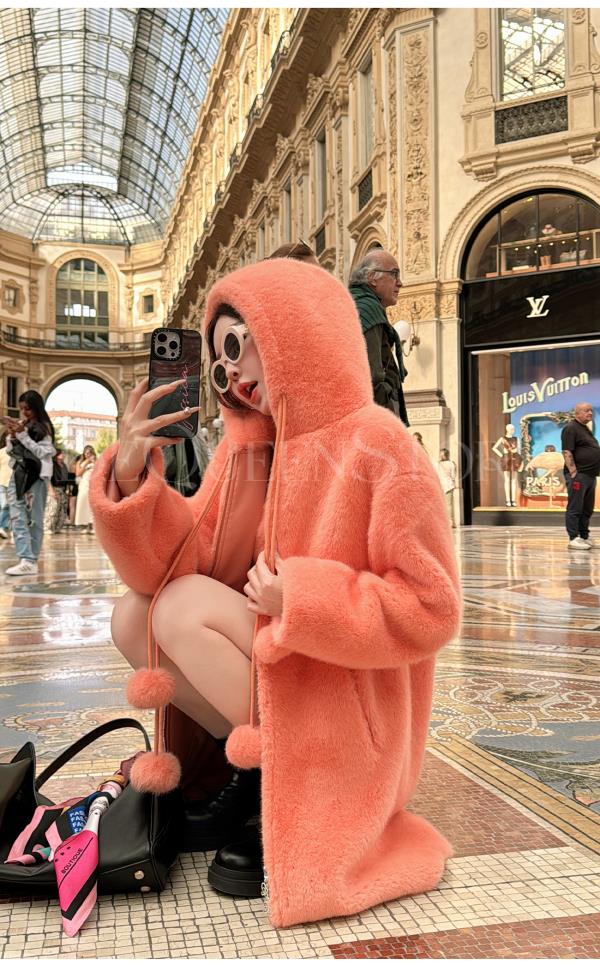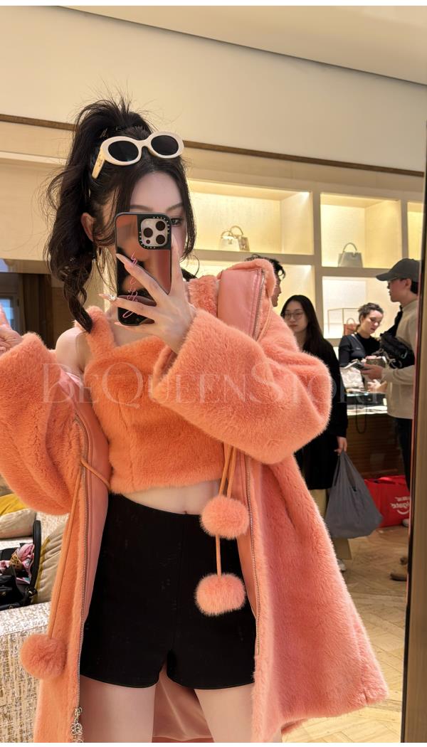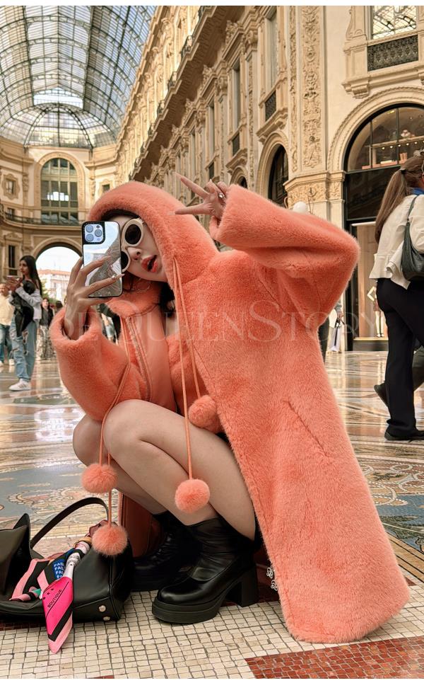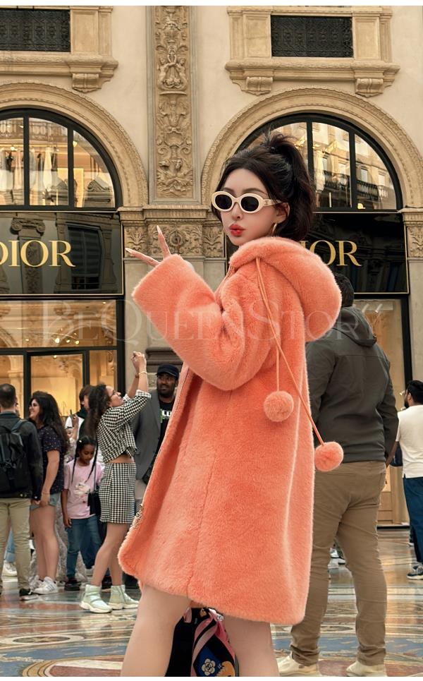 BeQueenStory【全橙热恋】环保米兰貂细腻舒适落肩袖宽松百搭外套