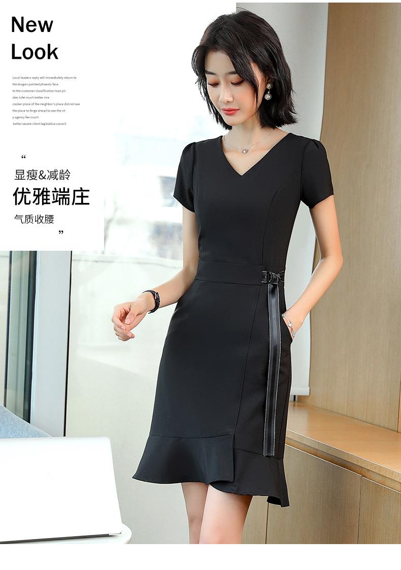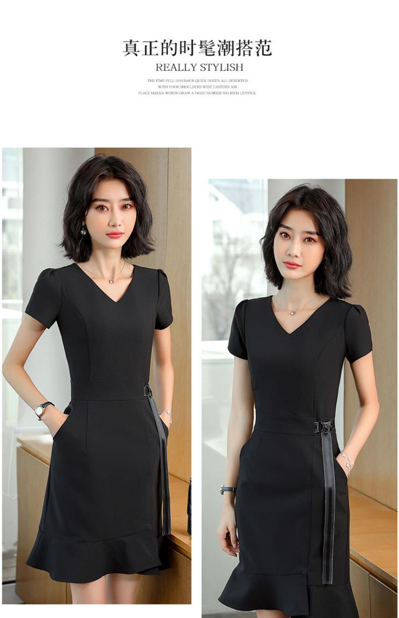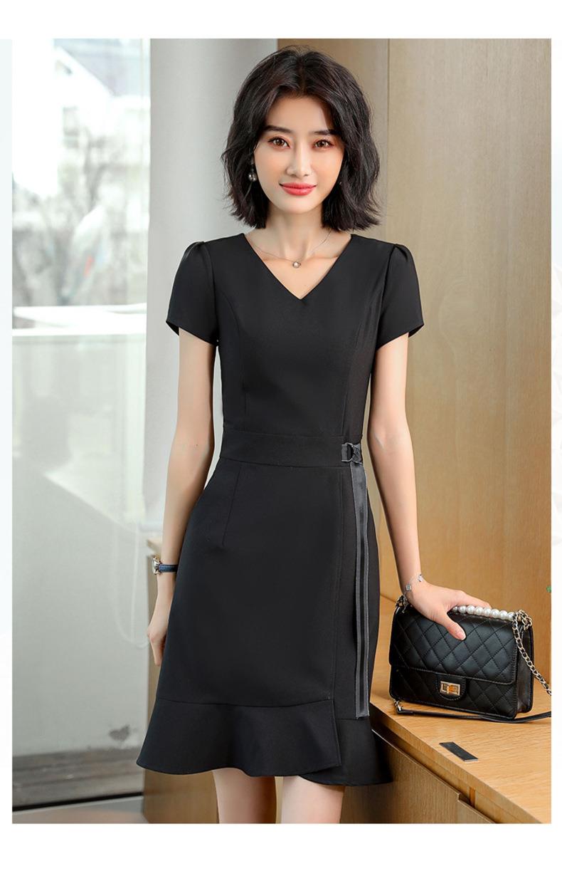 娜璐多 法式鱼尾连衣裙短袖设计感收腰带2023夏新款设计感简约通勤风裙子