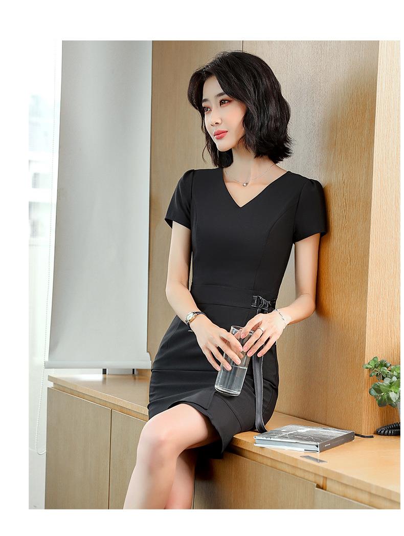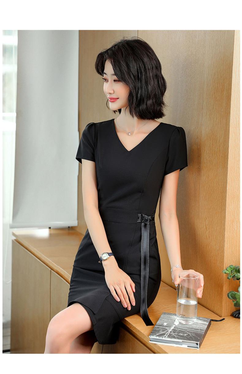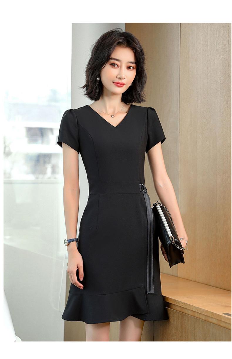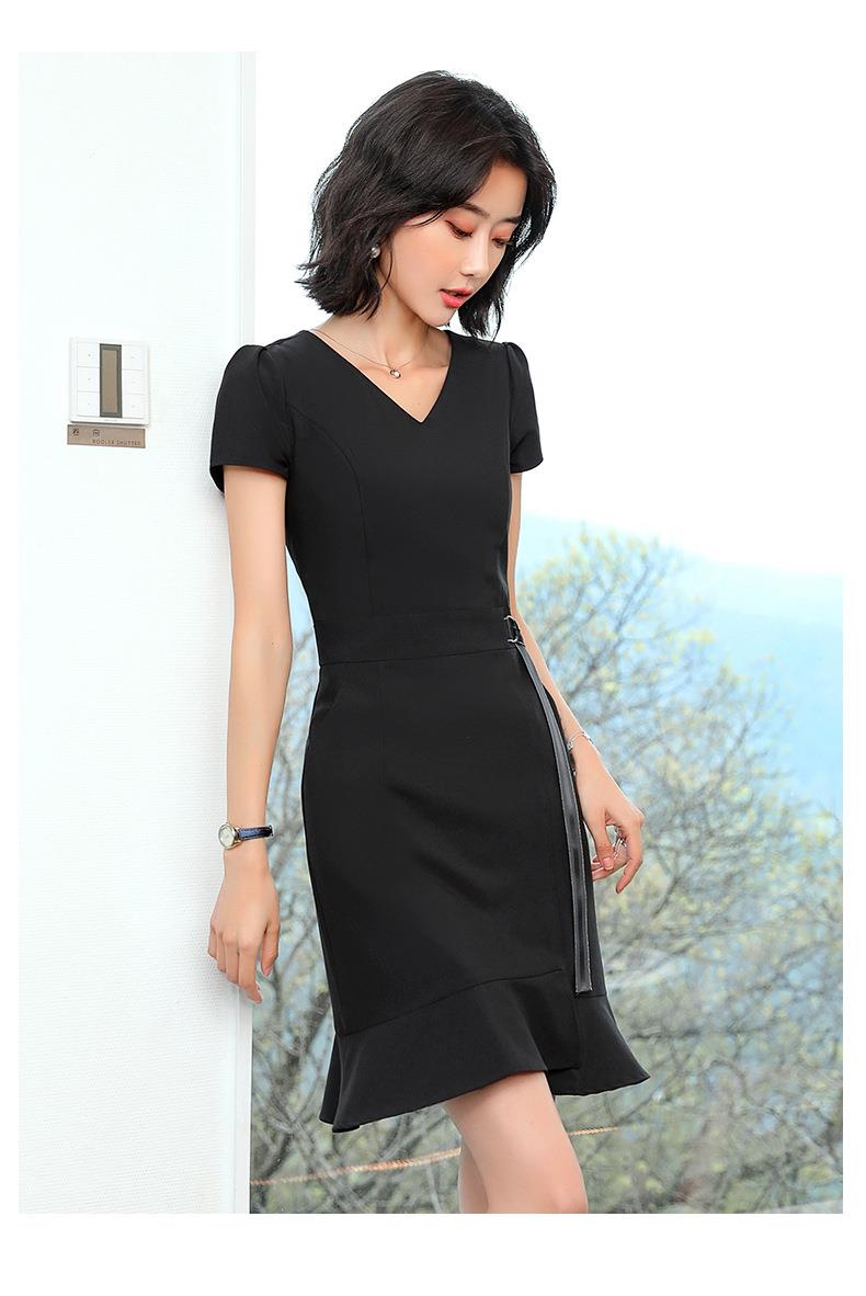 娜璐多 法式鱼尾连衣裙短袖设计感收腰带2023夏新款设计感简约通勤风裙子