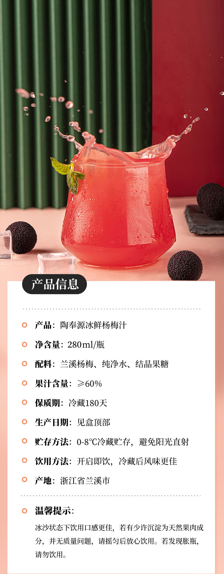 沈爷的宝贝 陶奉源冰鲜杨梅汁可冰镇果味饮品饮料280ml 商品图4