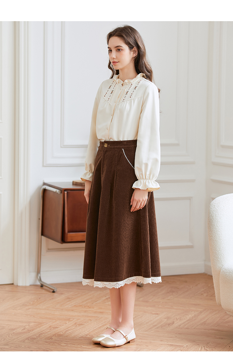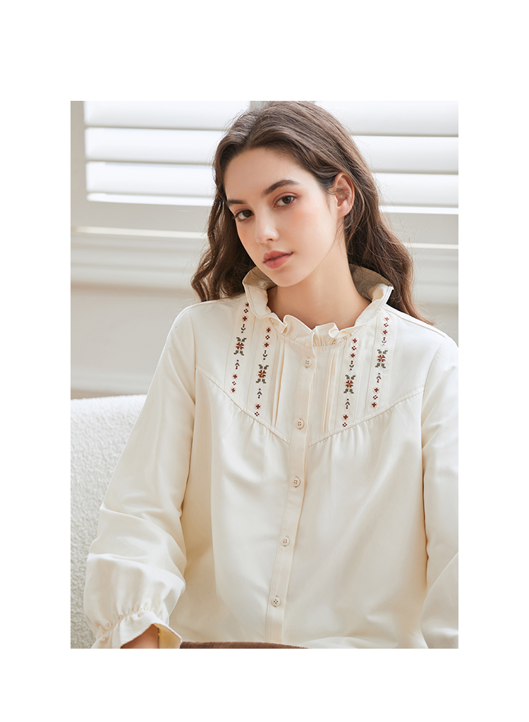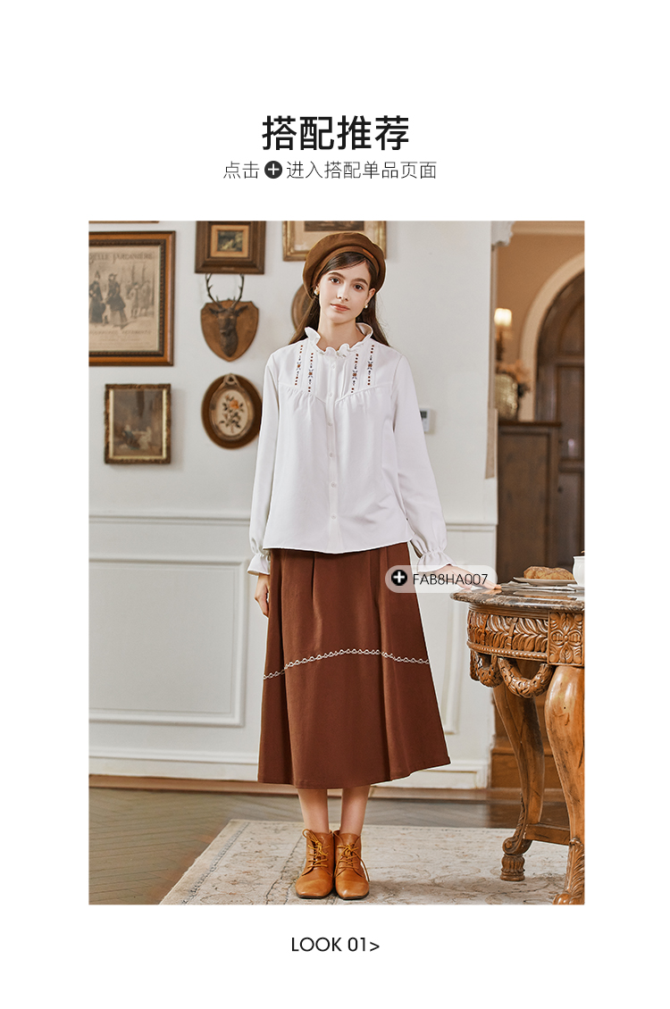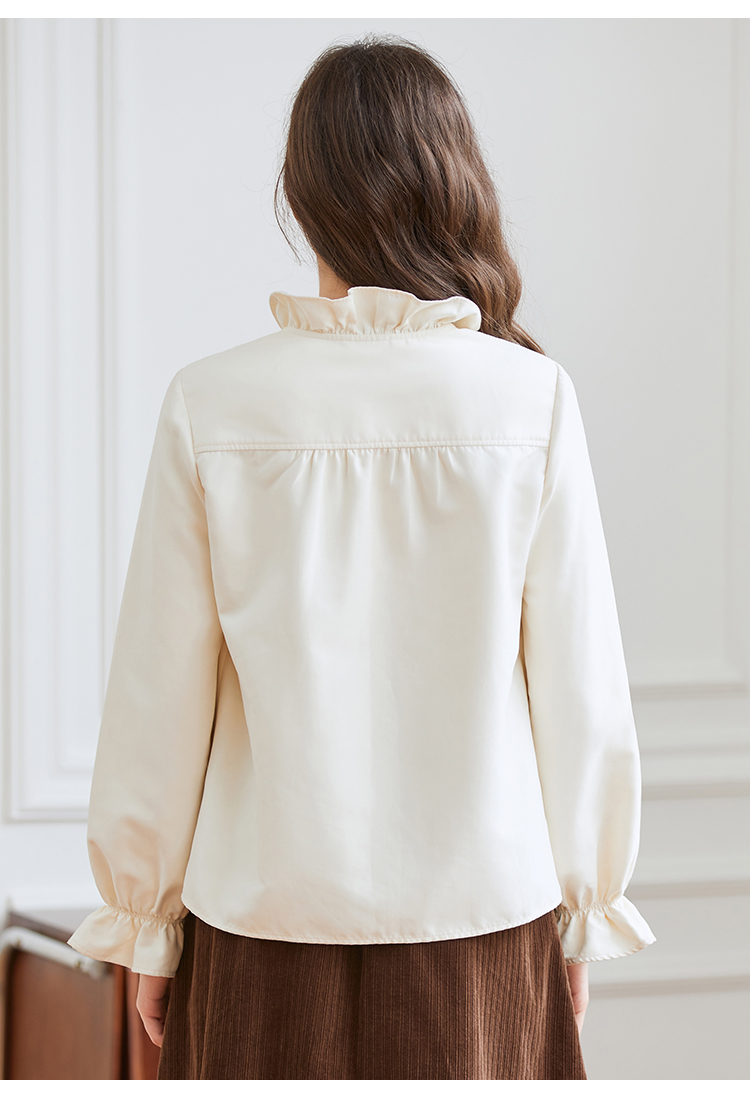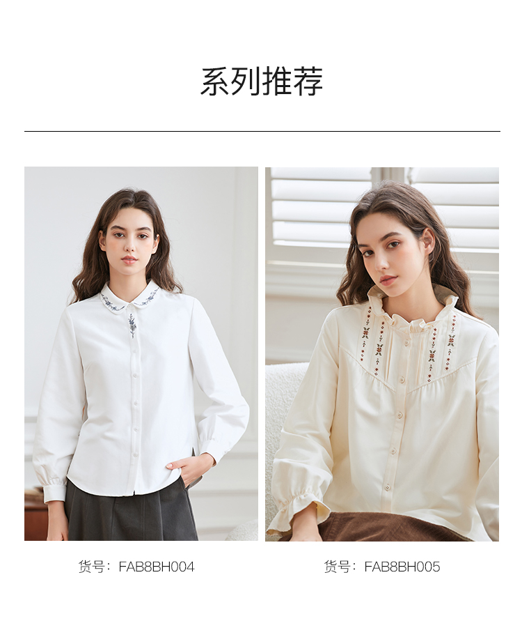 Famecoco范可儿荷叶边立领绣花衬衣减龄冬FAB8BH005