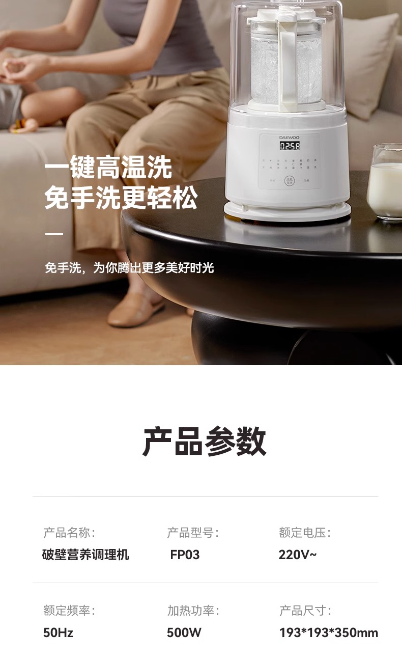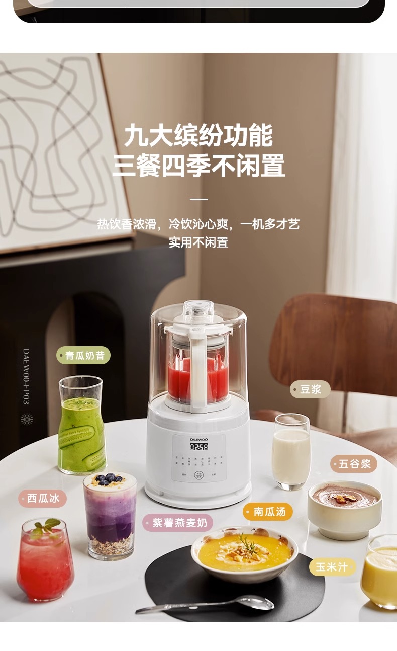 大宇破壁机家用低噪轻音破壁机多功能全自动小型迷你破壁豆浆机FP03