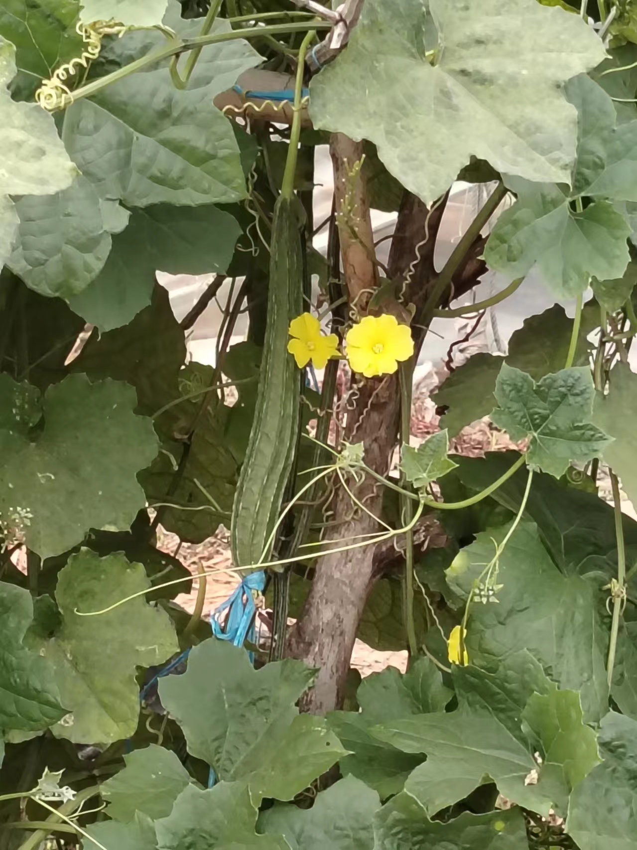 丝瓜为露天种植,略有虫害,但不影响食用,美味可口