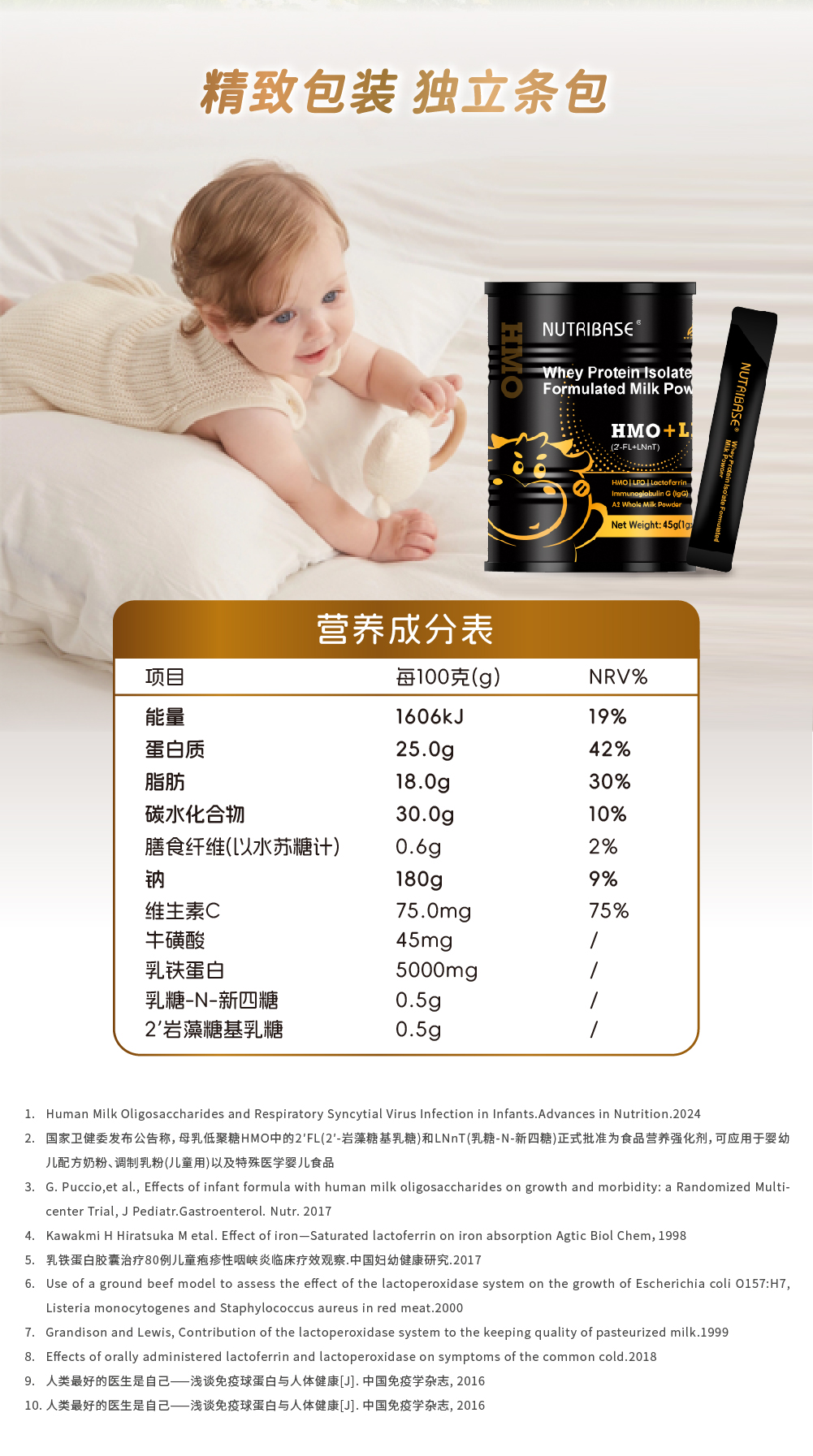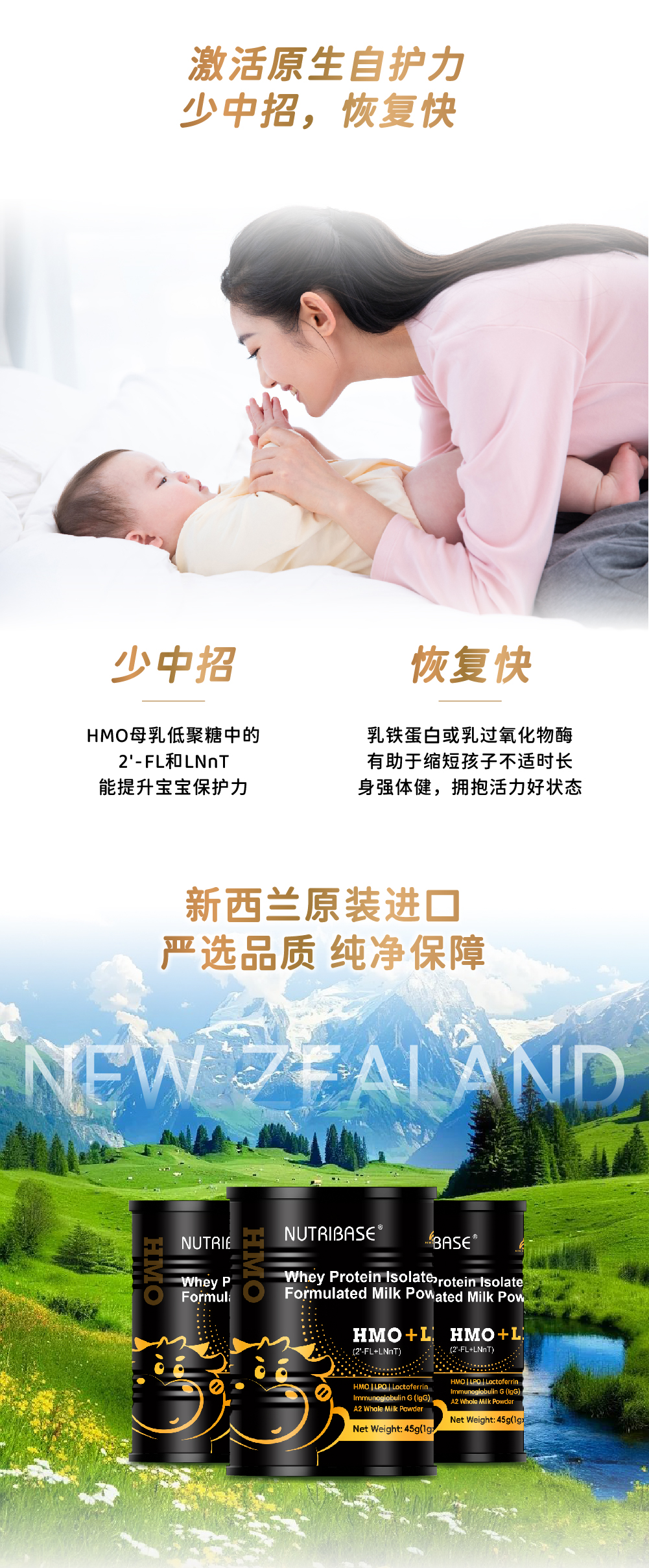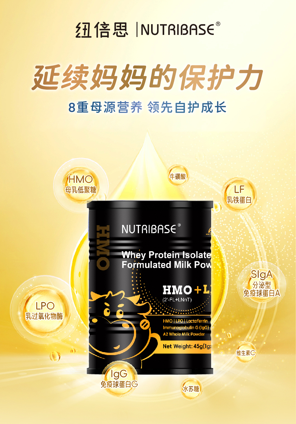 ² 【新西兰进口纽倍思HMO自护小黑罐】每袋10毫克HMO+43.75毫克LPO+50毫克乳铁蛋白+25毫克免疫球蛋白+VC等 1g*45袋/罐 HM02-CRMM-NBS