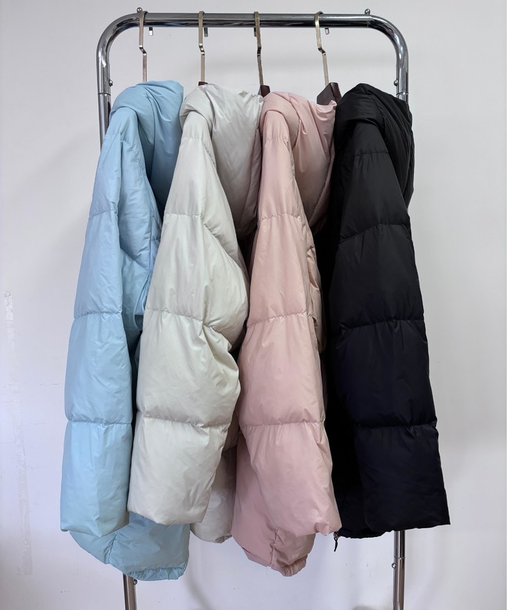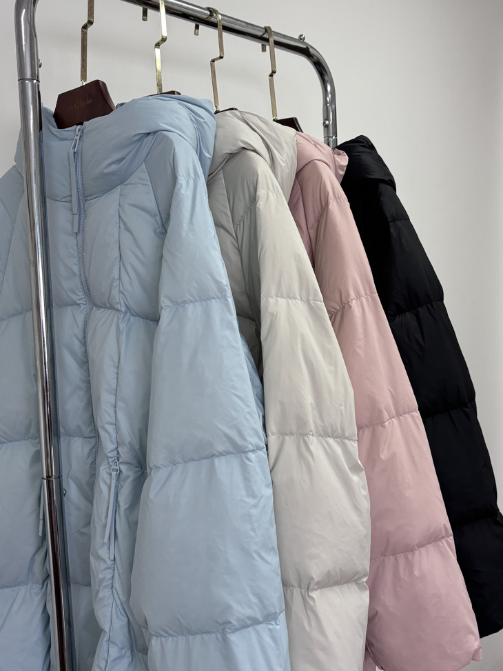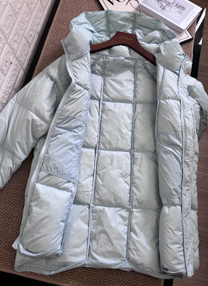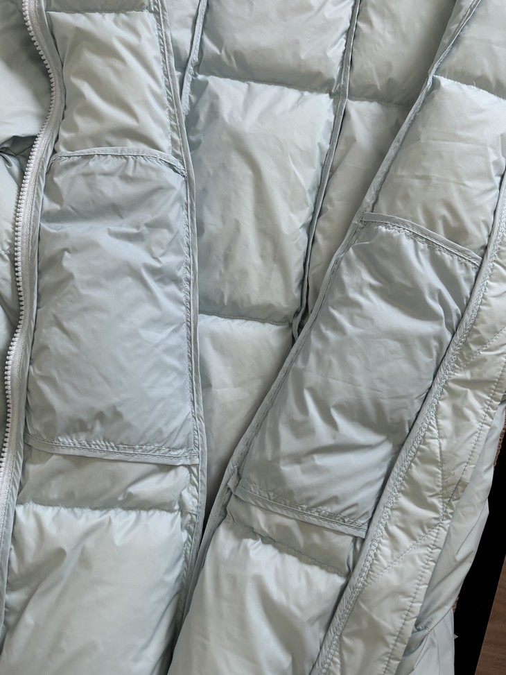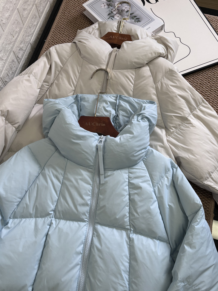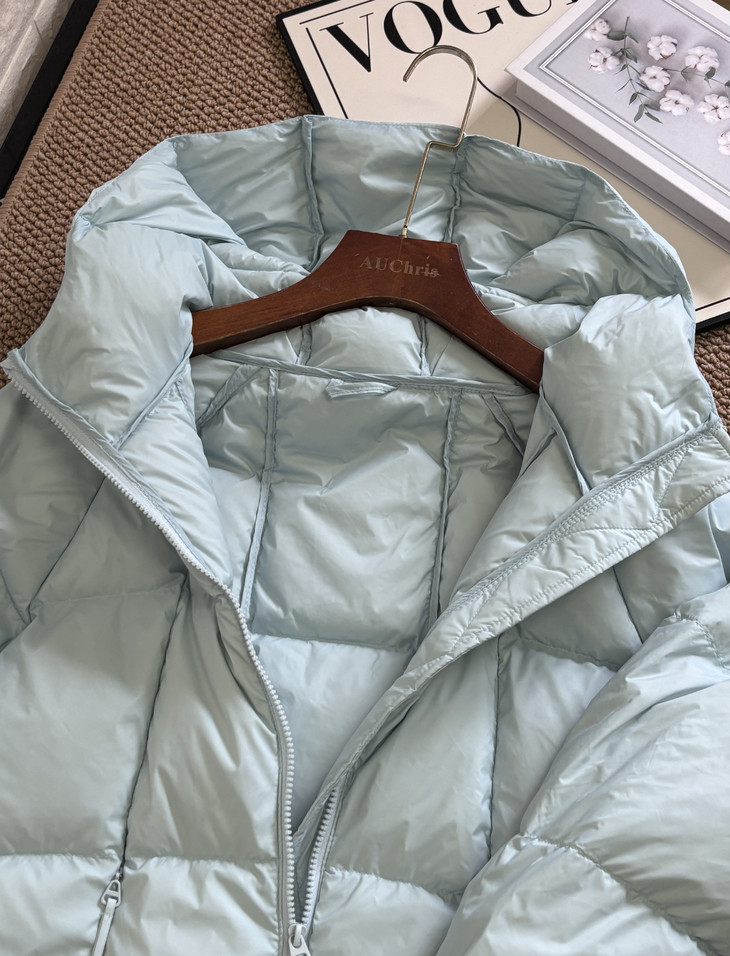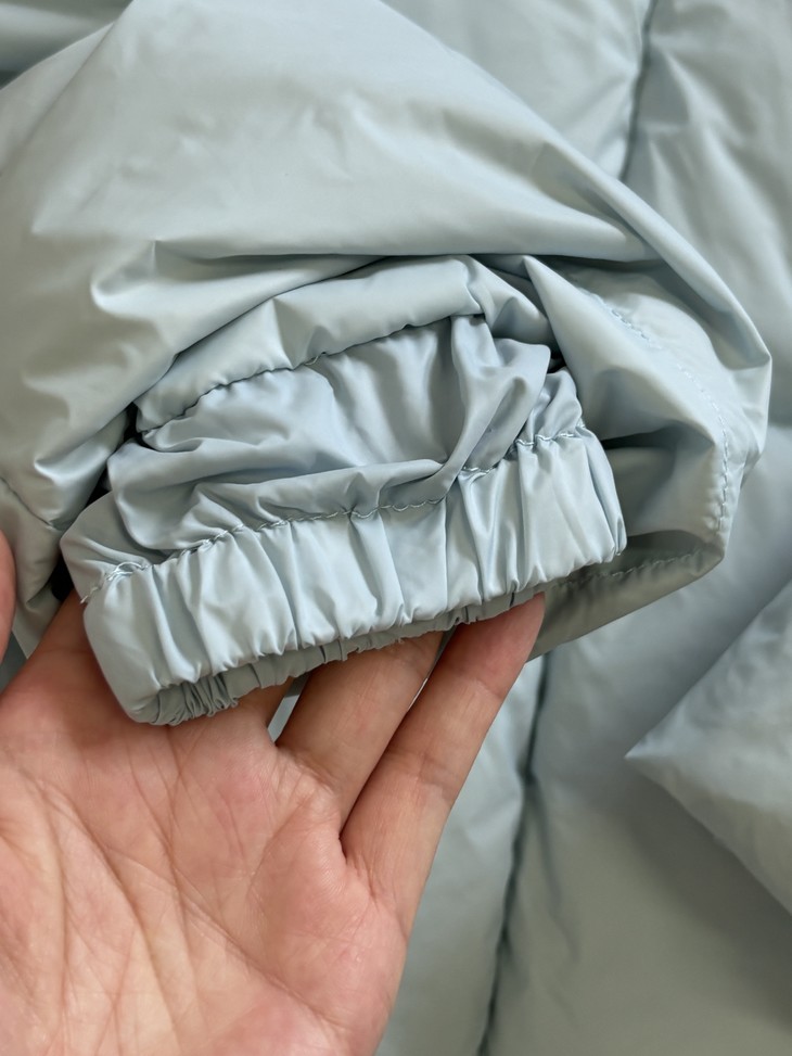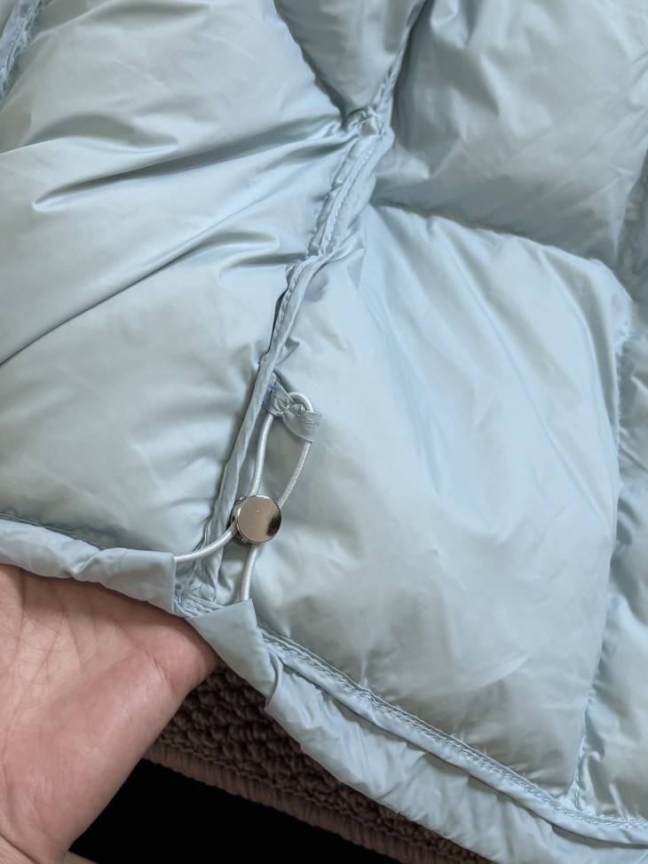 精选肤感高密泡芙面料 面料具有很好的抗皱性和保形性 织面细腻光滑,自带柔和光泽 触感如云朵般绵柔 超轻无胆防绒,不跑绒不钻绒 简约款设计,穿着方便利落,毫无身材局限性 任何人都能轻松驾驭~