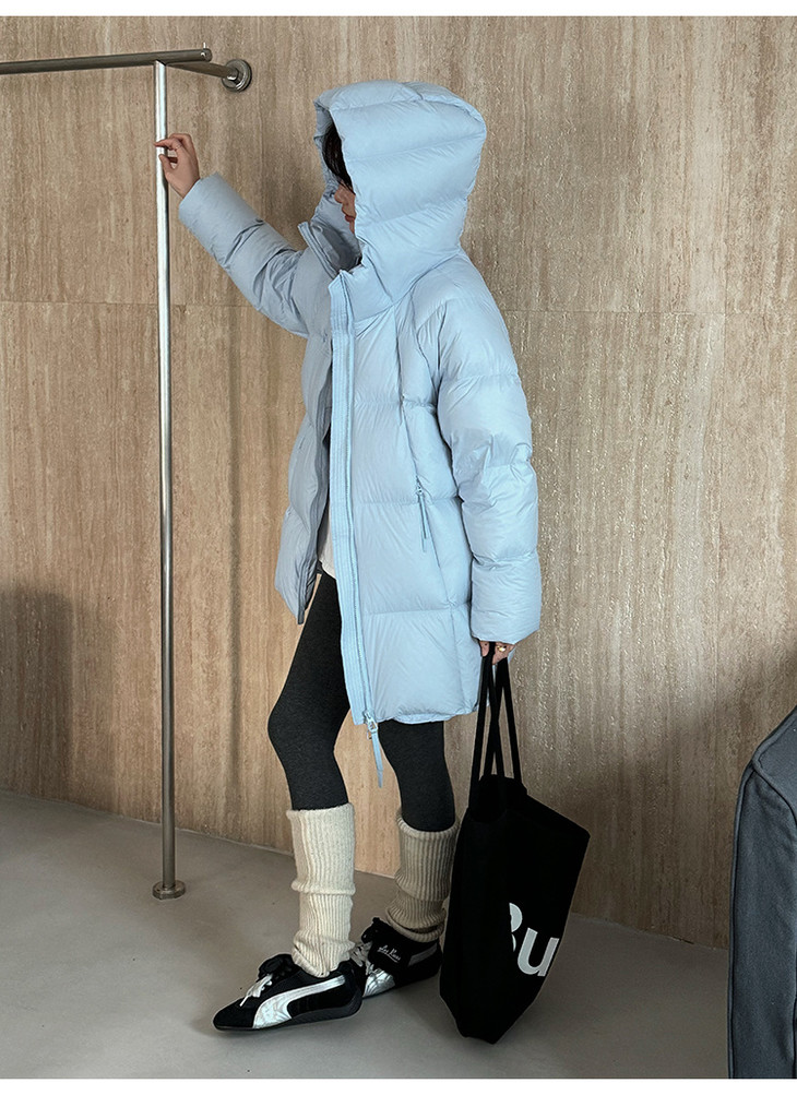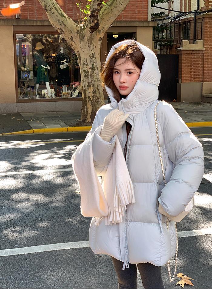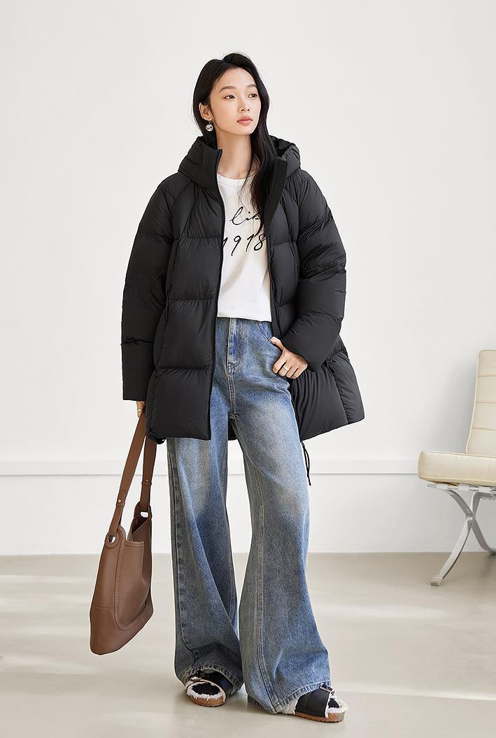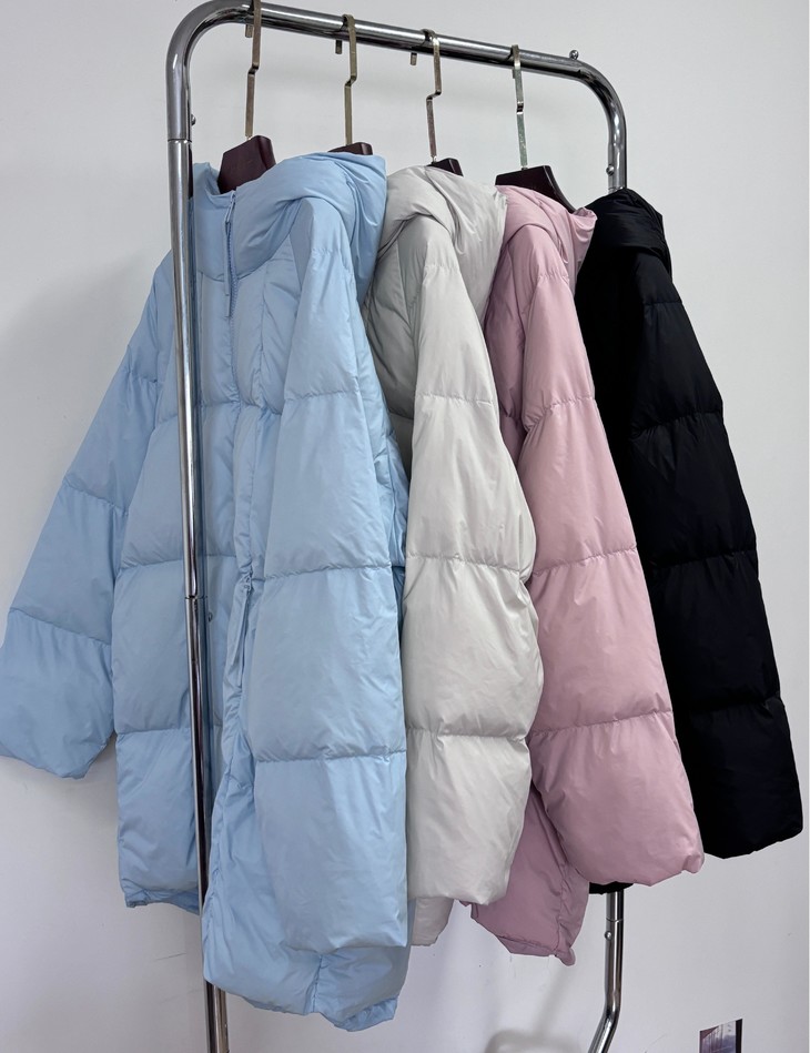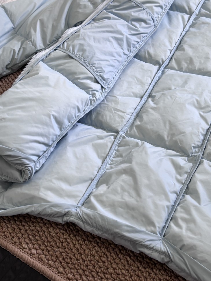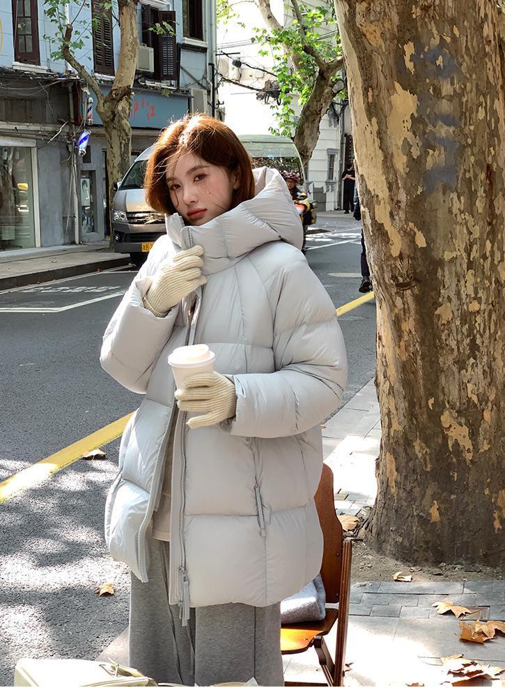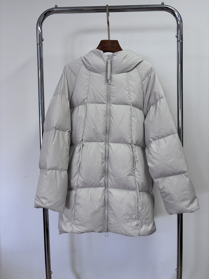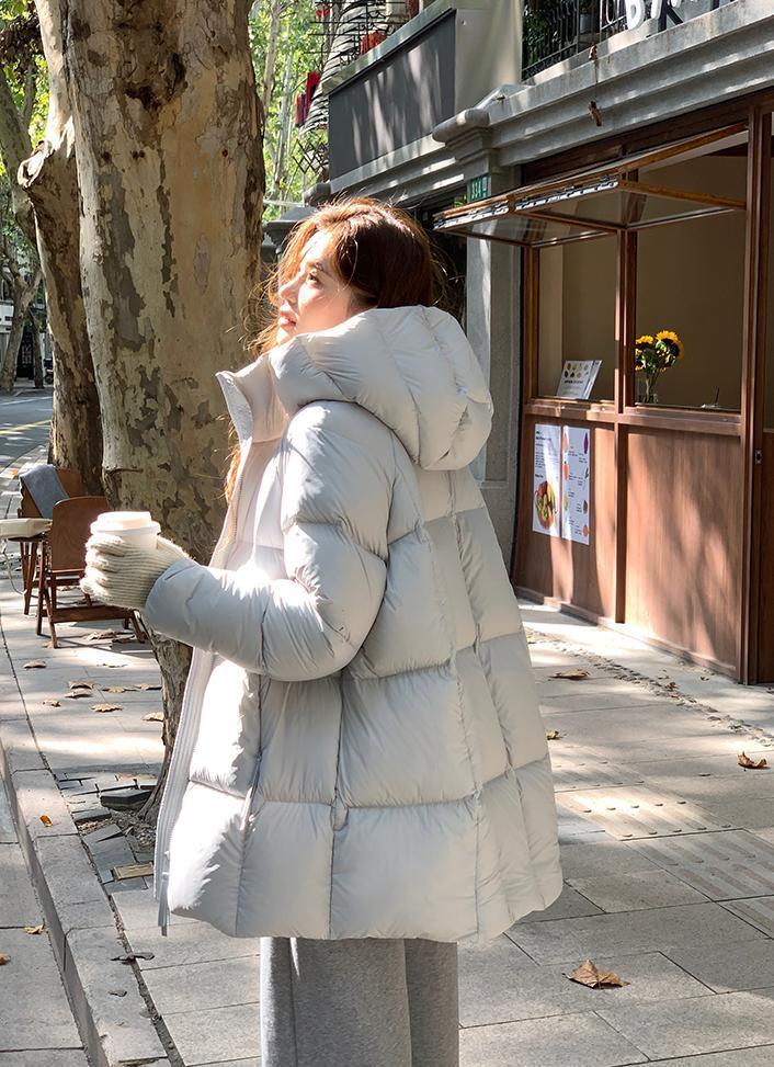 精选肤感高密泡芙面料 面料具有很好的抗皱性和保形性 织面细腻光滑,自带柔和光泽 触感如云朵般绵柔 超轻无胆防绒,不跑绒不钻绒 简约款设计,穿着方便利落,毫无身材局限性 任何人都能轻松驾驭~