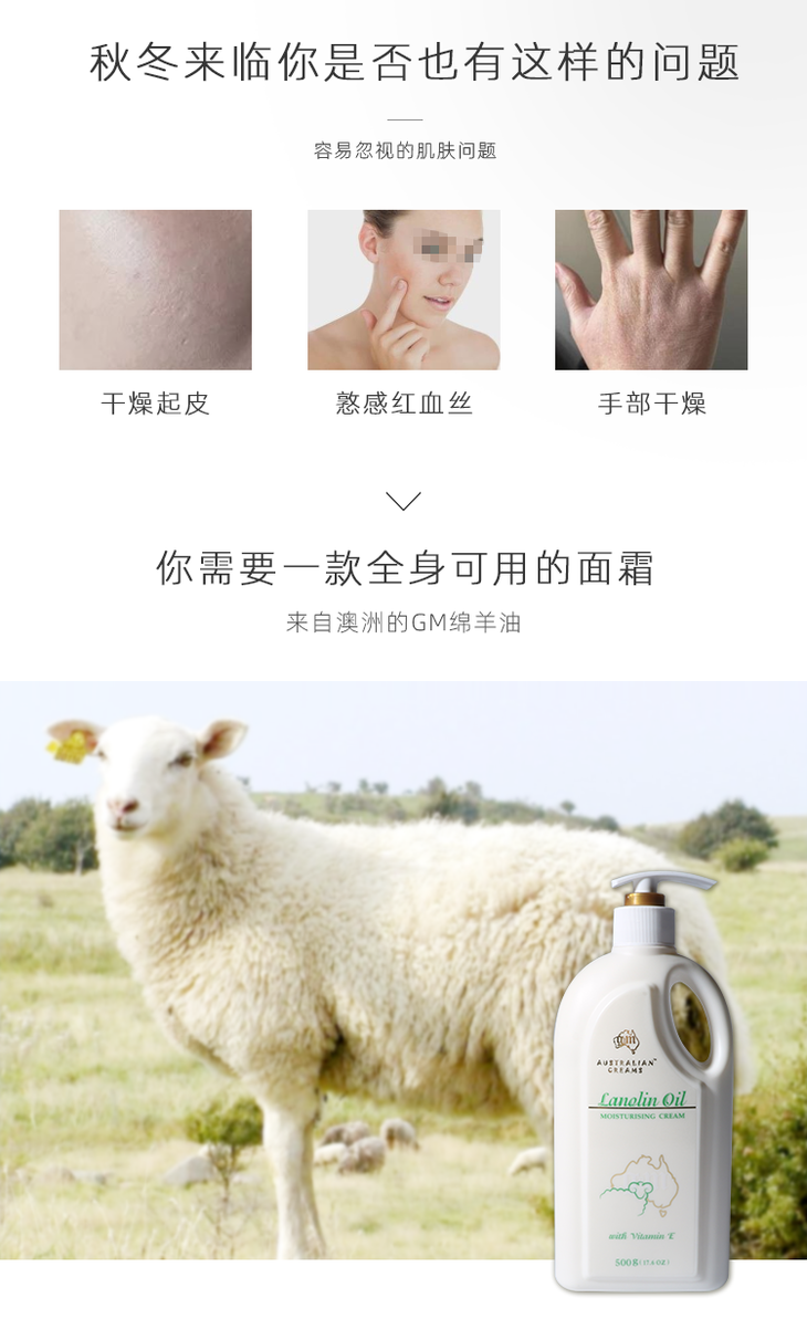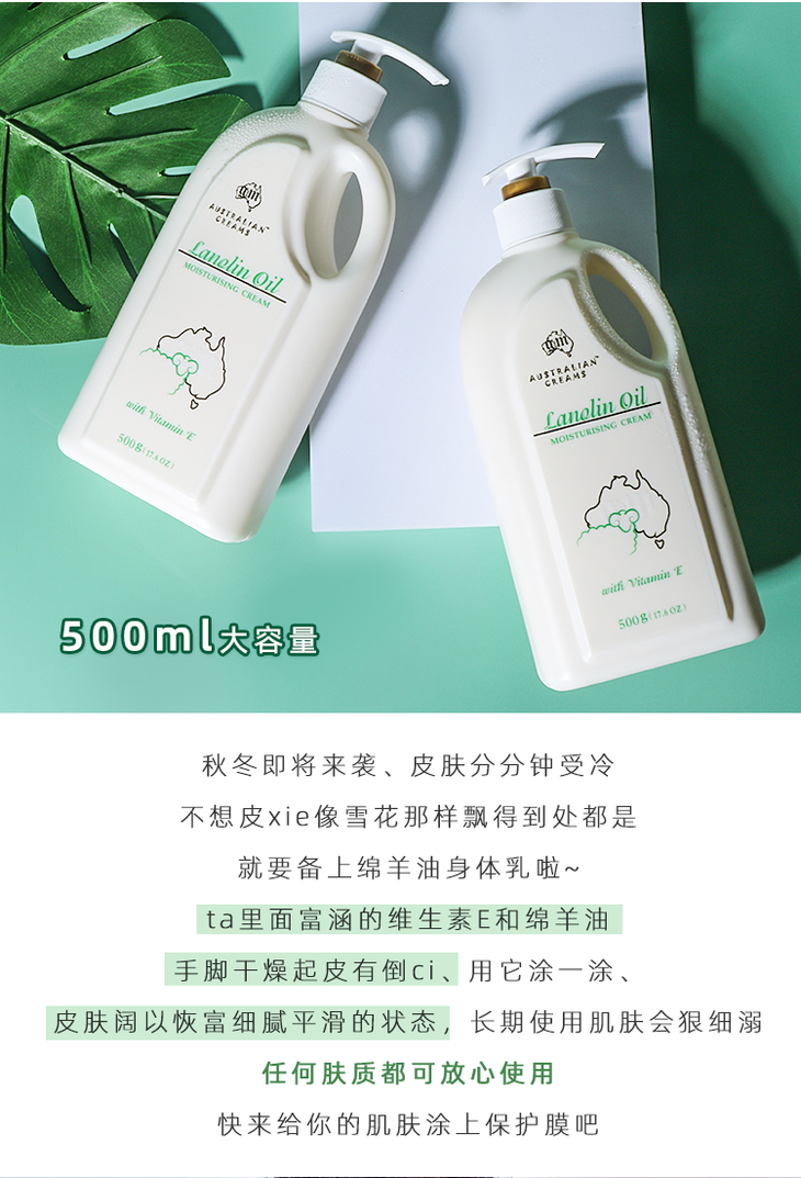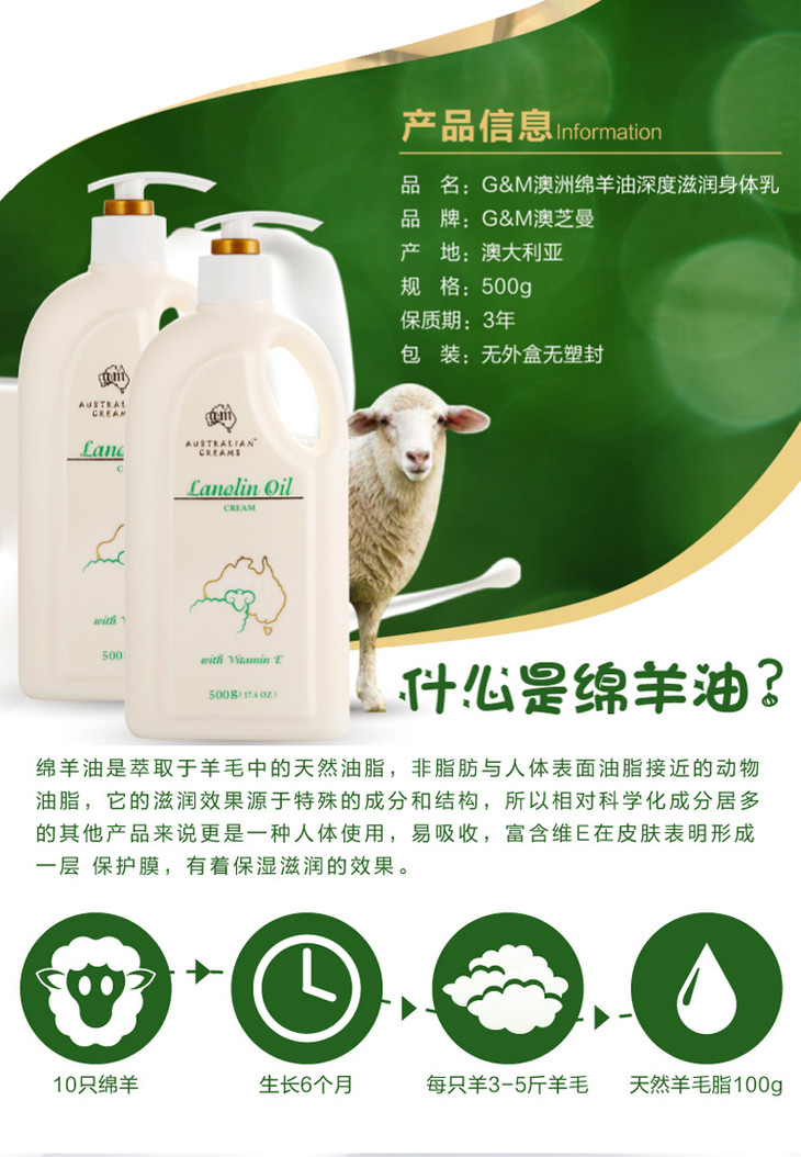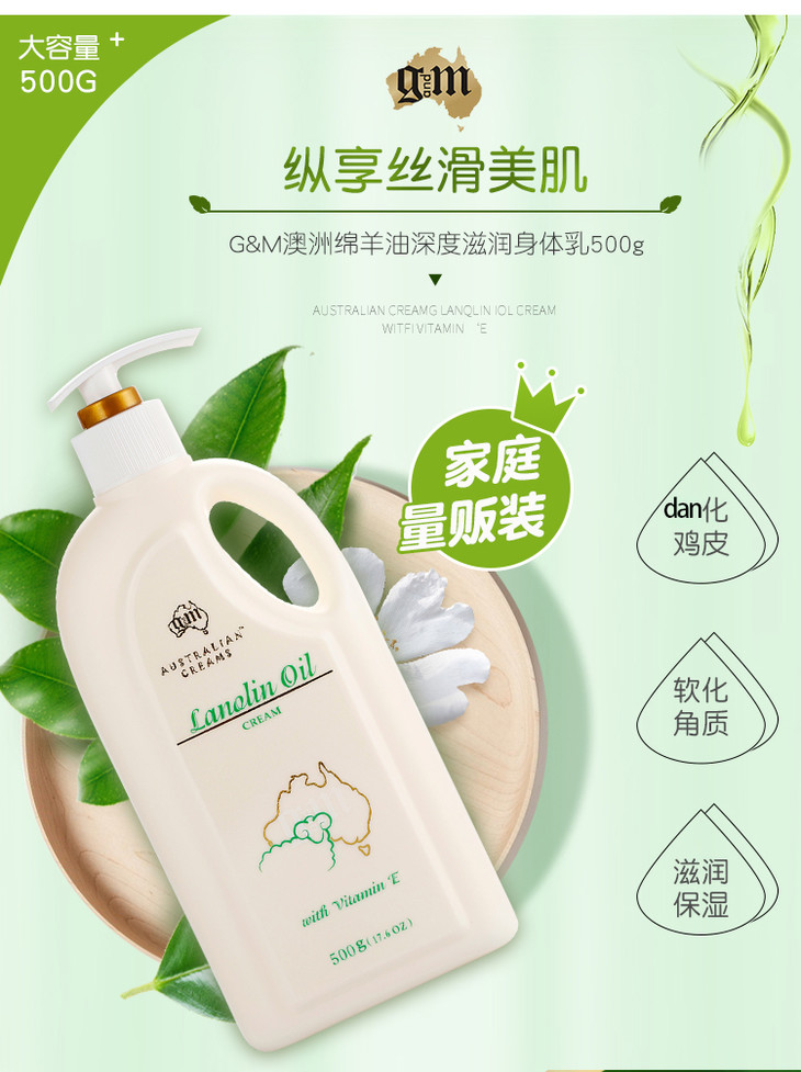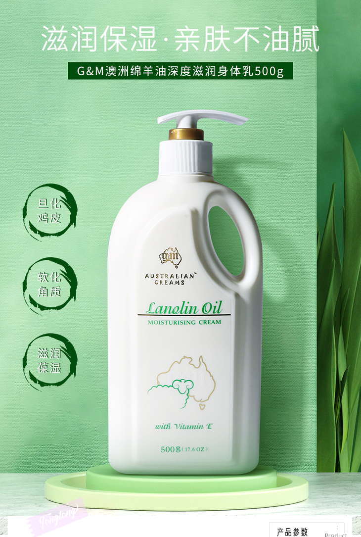 【孕妇可用】澳洲 G&M澳芝曼 绵羊油滋润维e身体乳 500g