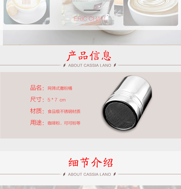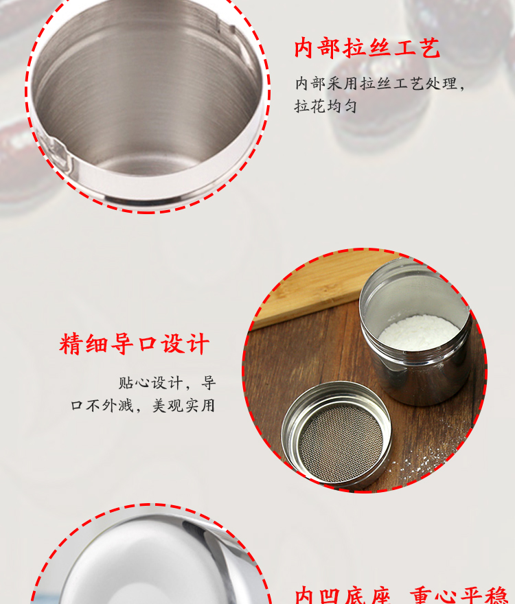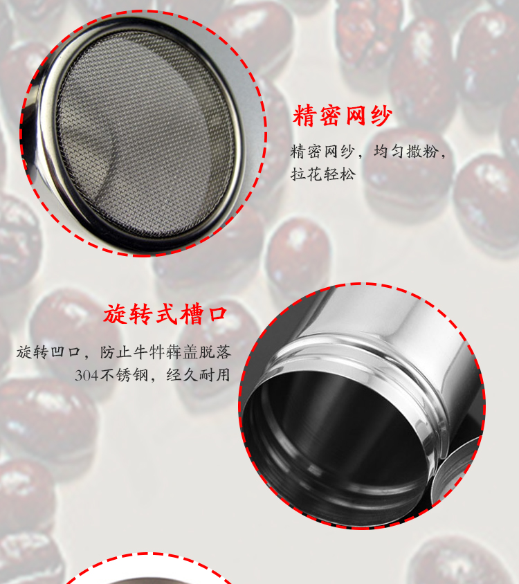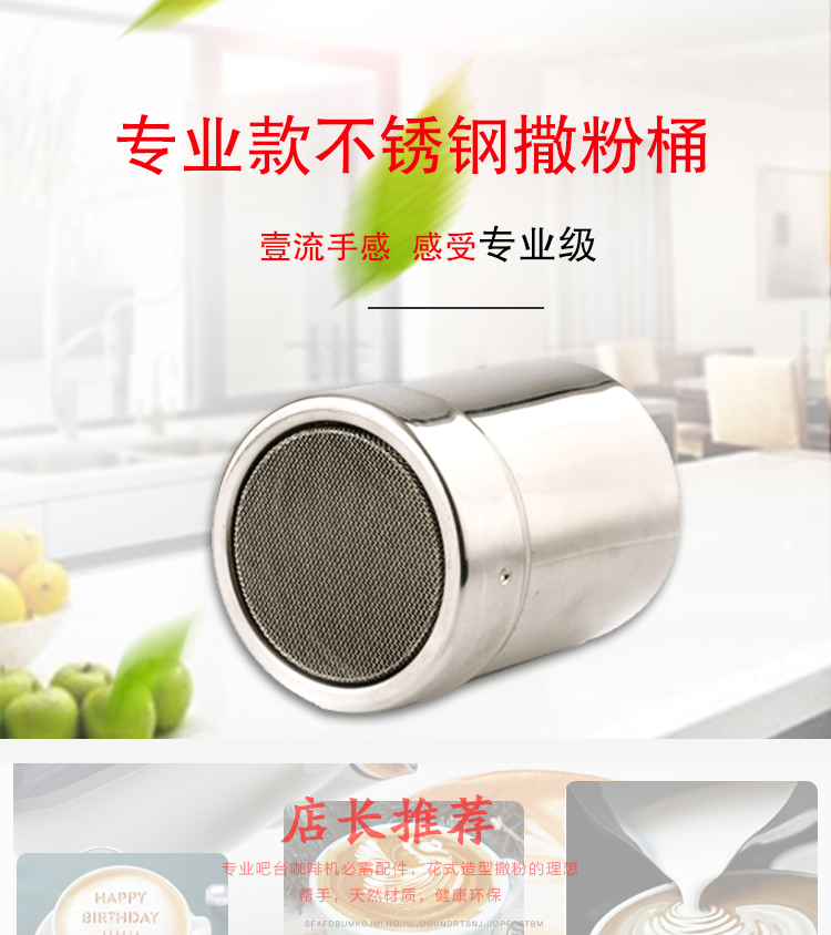 撒粉罐304不锈钢带盖可可粉咖啡撒粉筒 撒粉器精细网纱式桶调味瓶