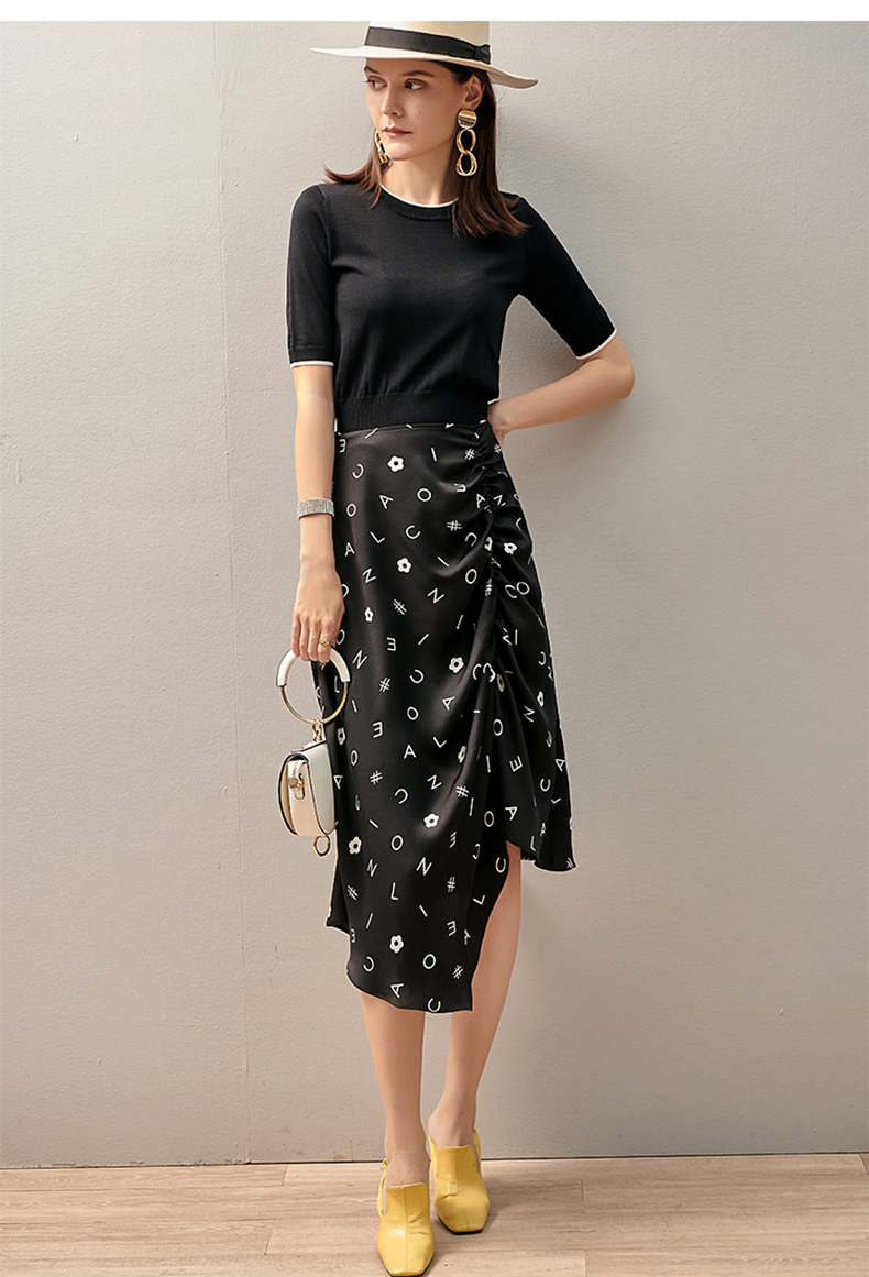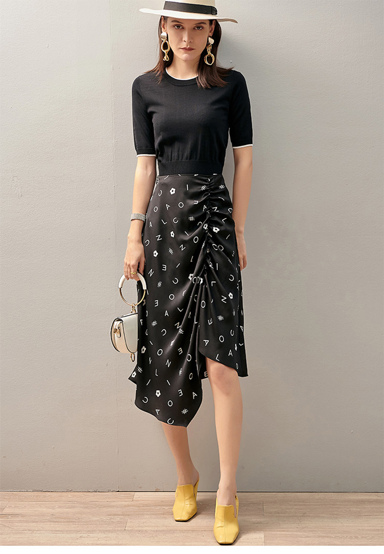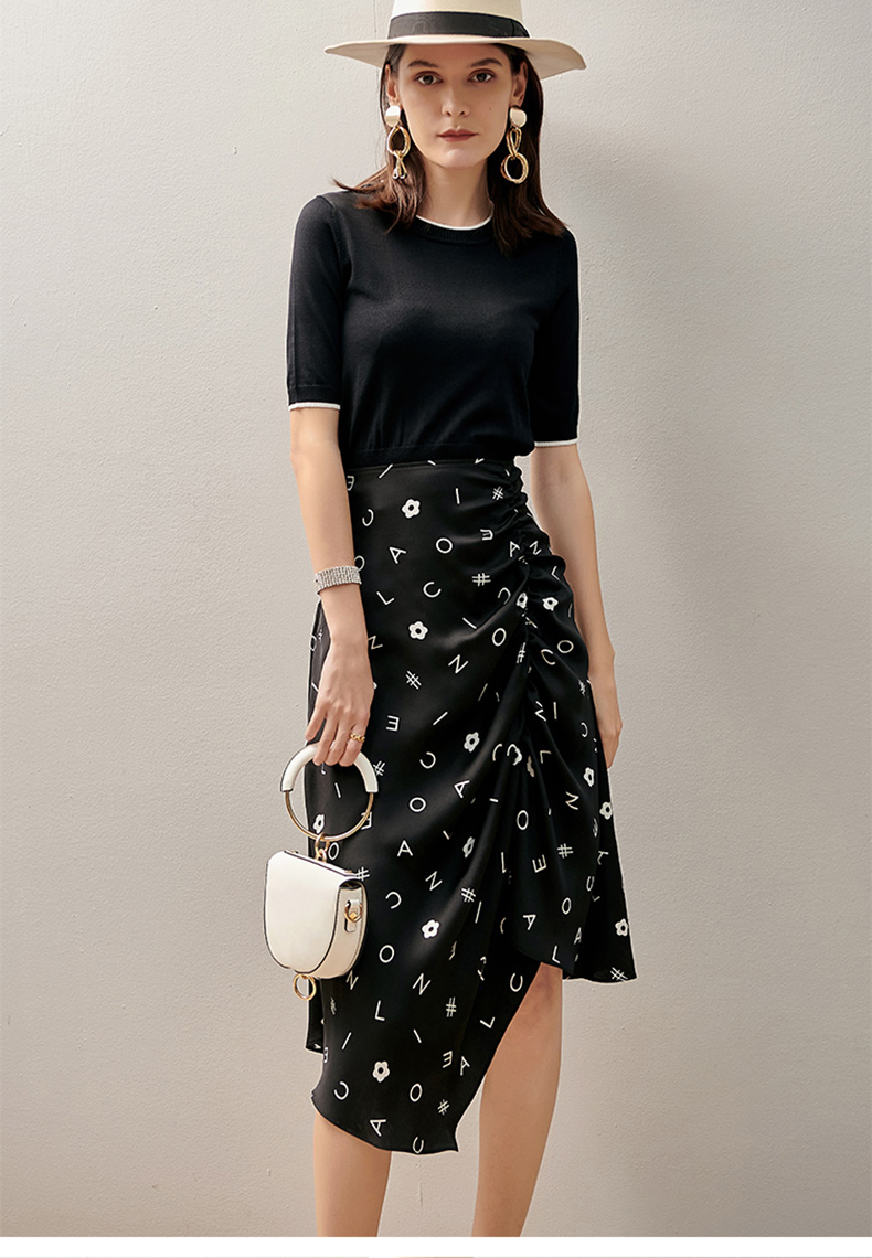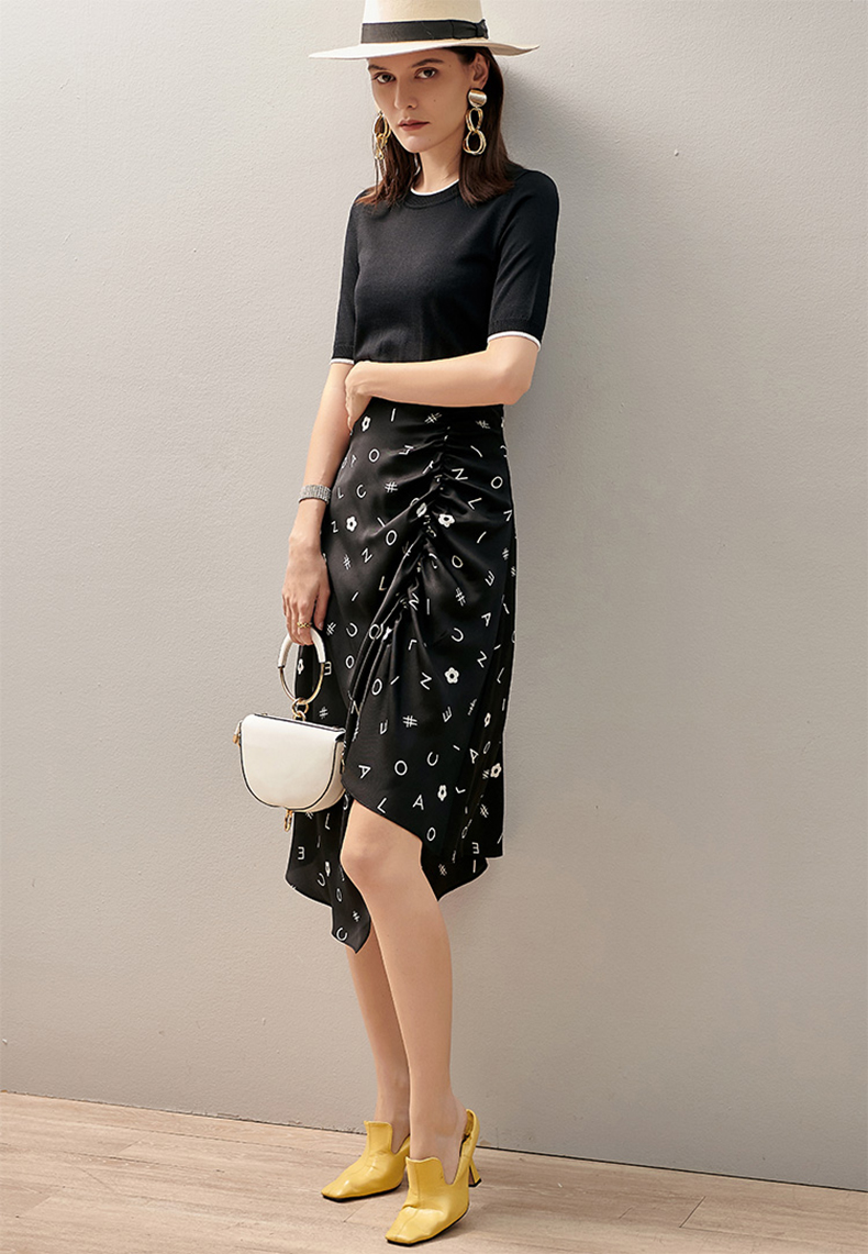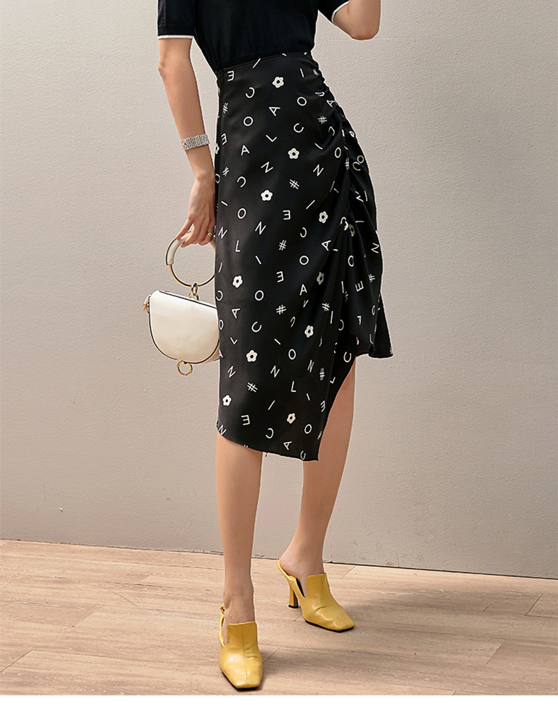 【褶皱不对称设计】芳外2025新款夏季褶皱不对称裙摆半截裙0543