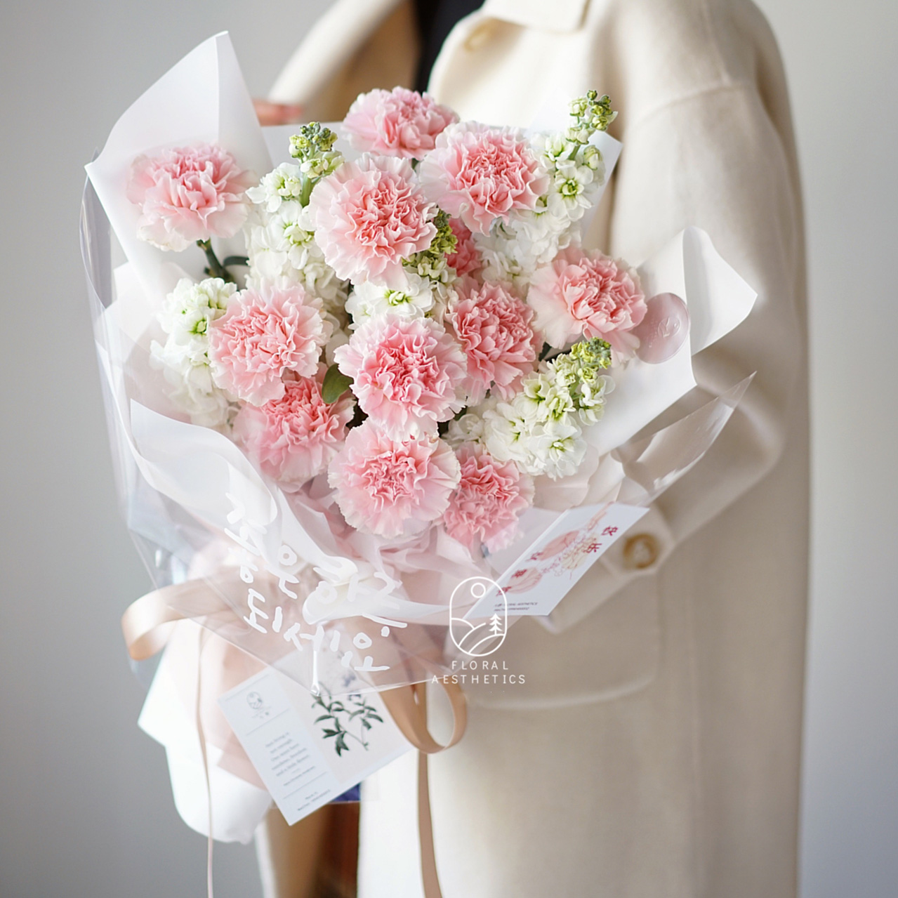 《琉璃书》. 粉色少女心花束冬季粉玫瑰颜色偏浅
