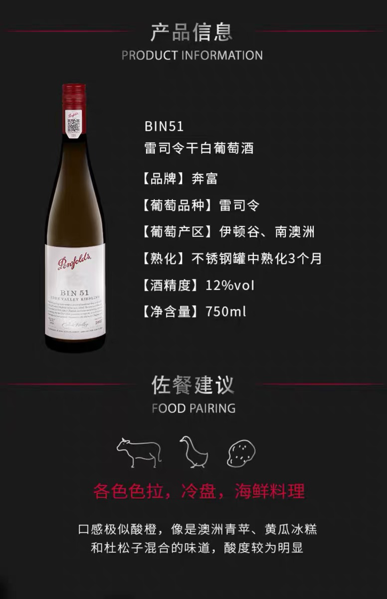 奔富 BIN51伊顿谷雷司令白葡萄酒
