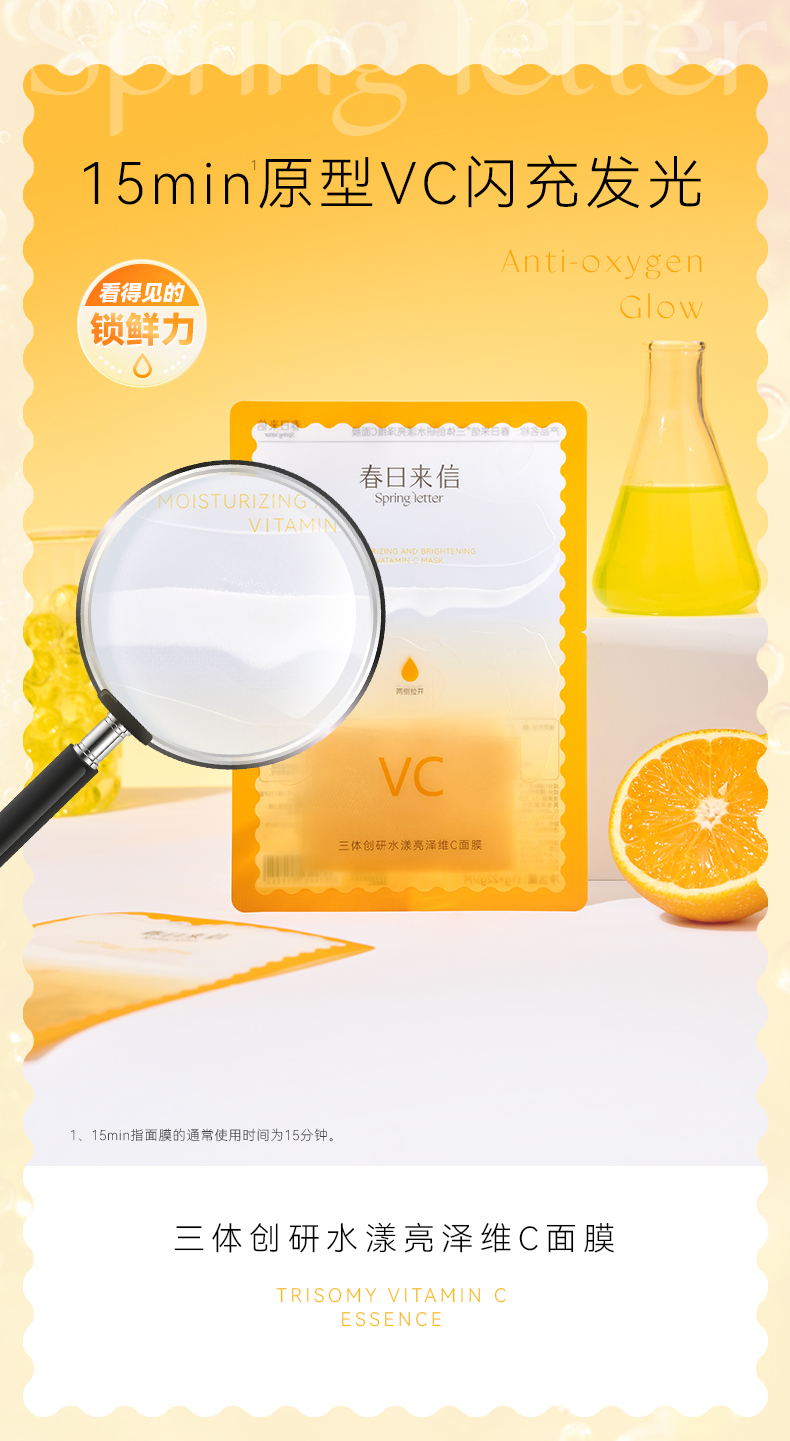 春日来信三体原型VC面膜,15min闪充发光,拍即赠3片同款,到手8片面膜。