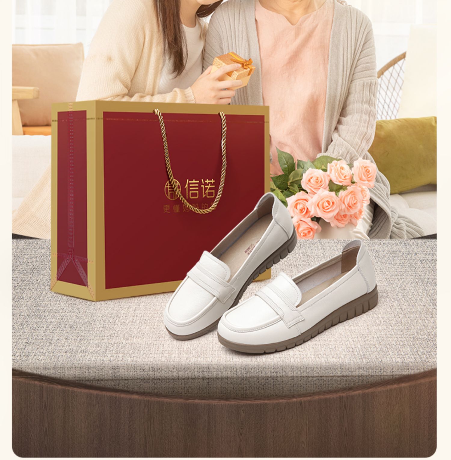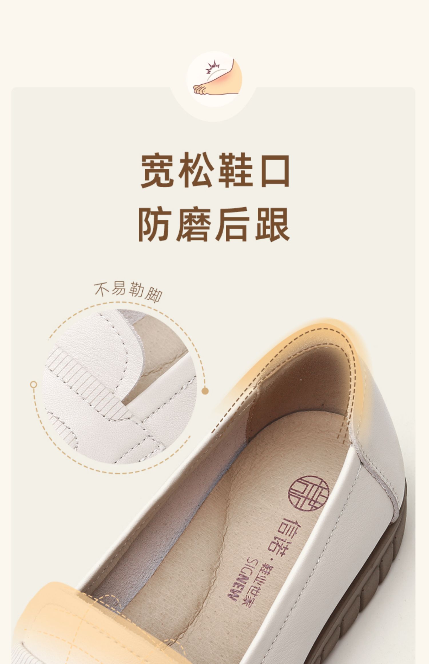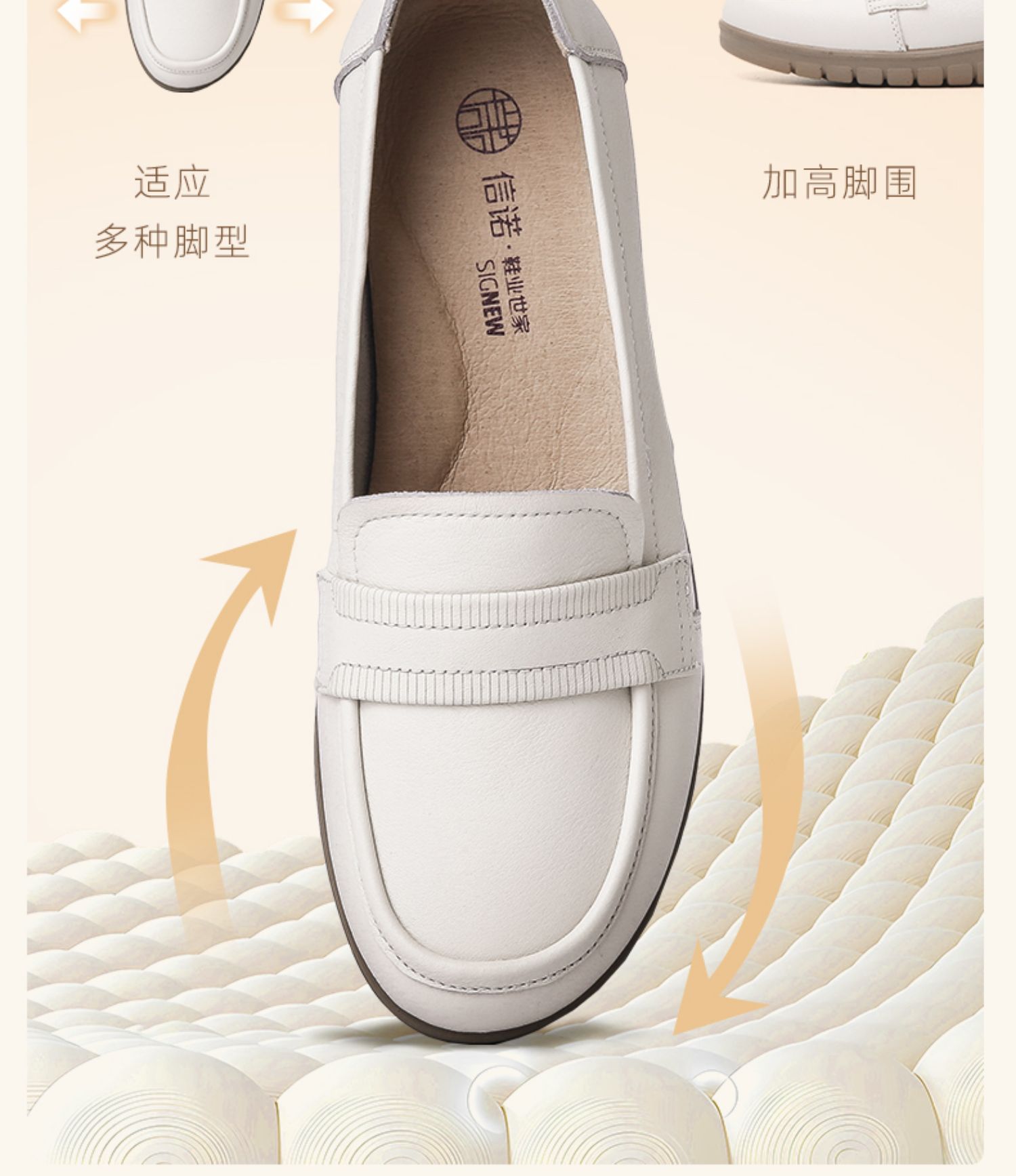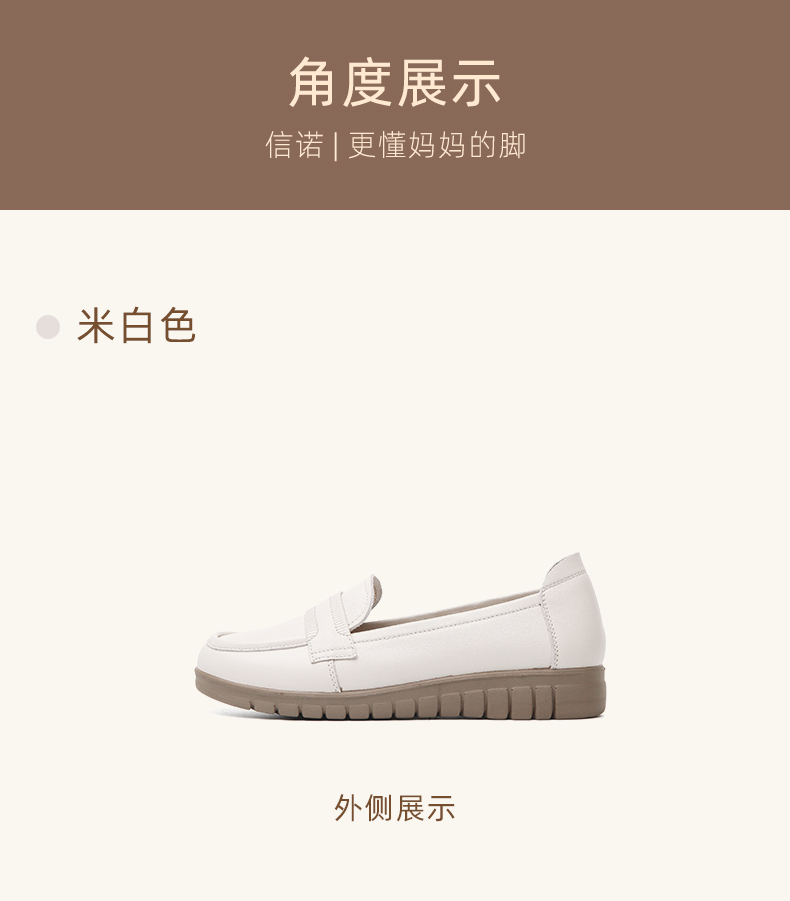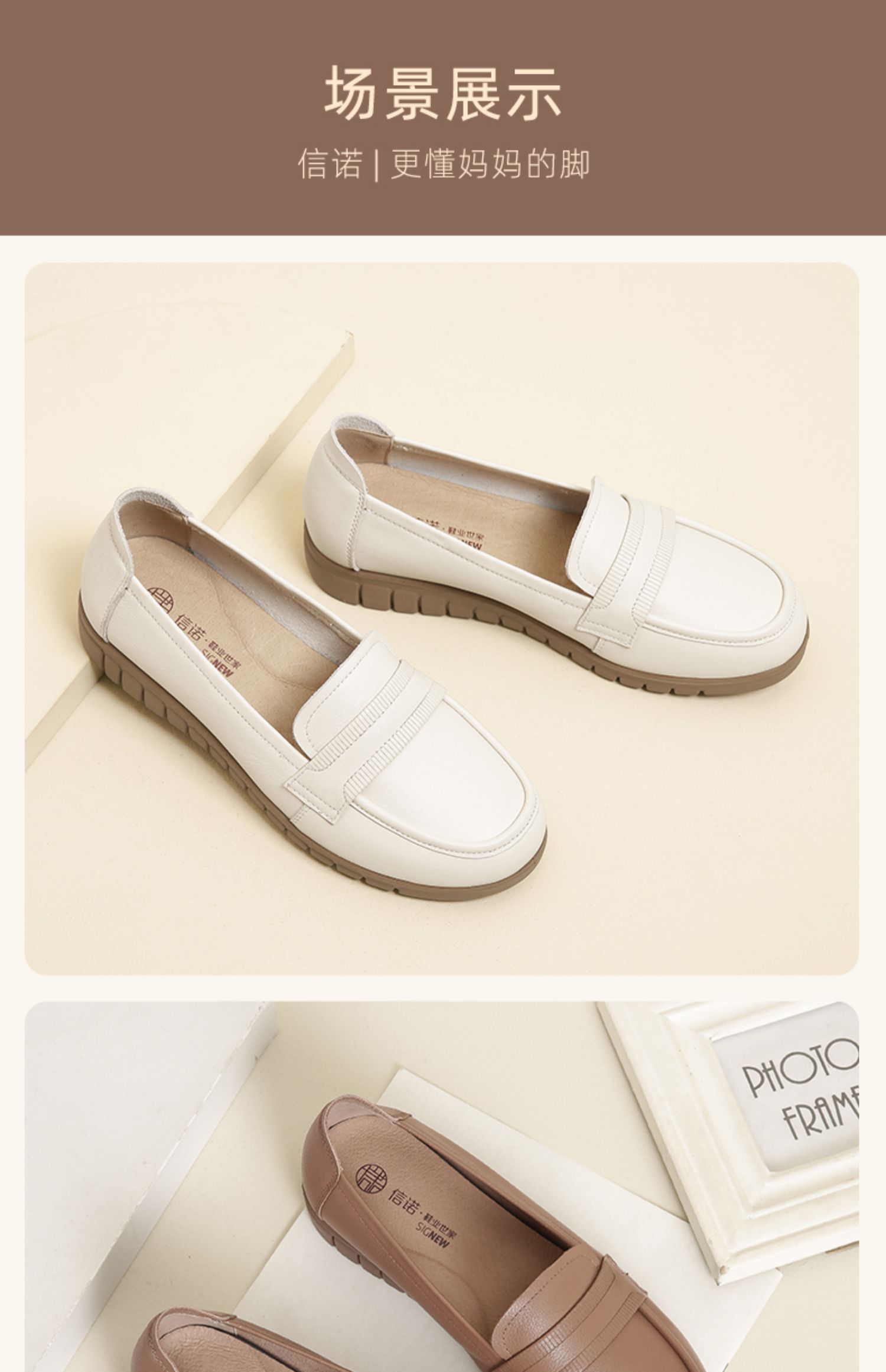 信诺真皮软底妈妈鞋2024新款春季舒适一脚蹬女单鞋中老年休闲皮鞋24C6315-107