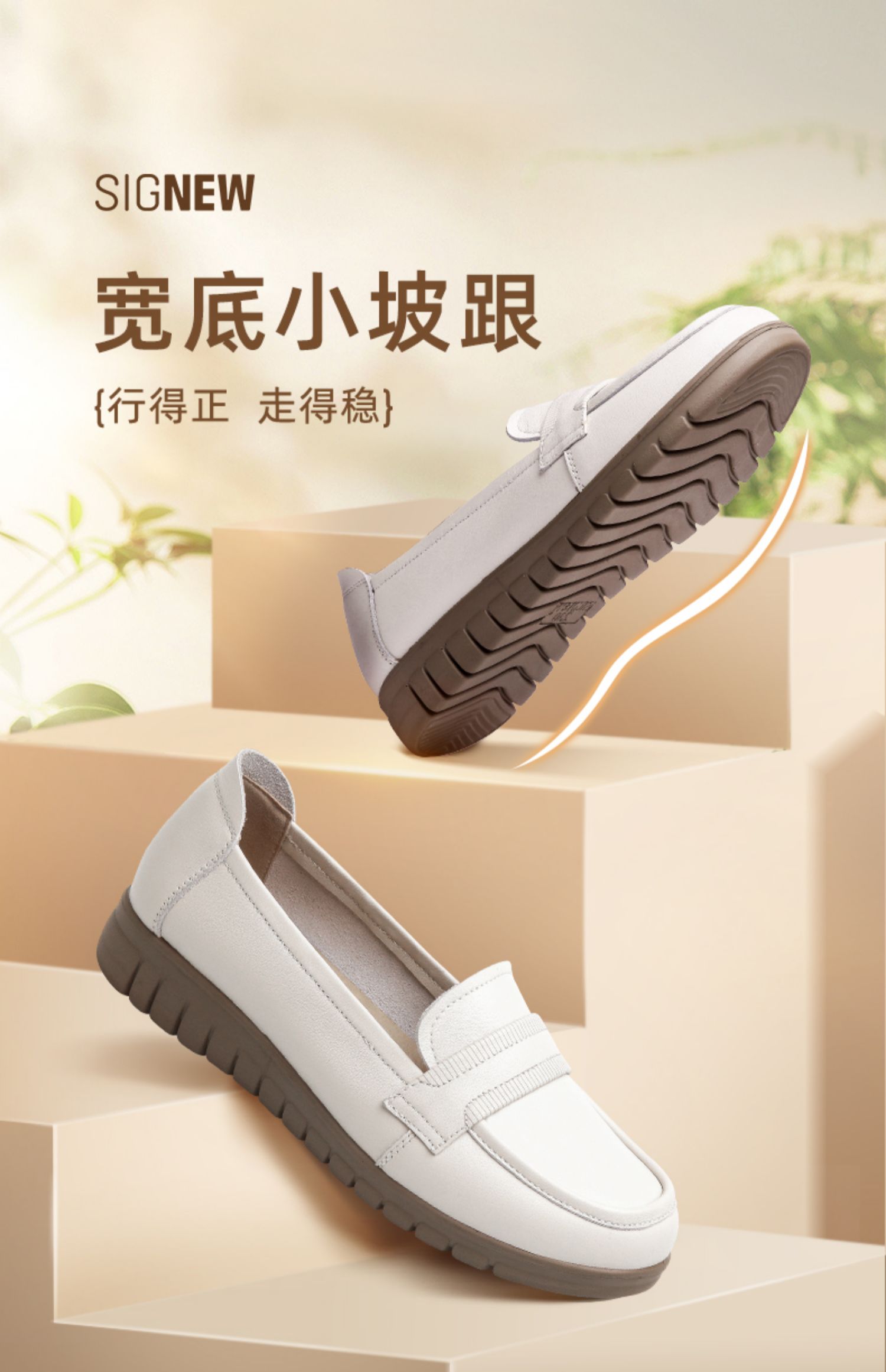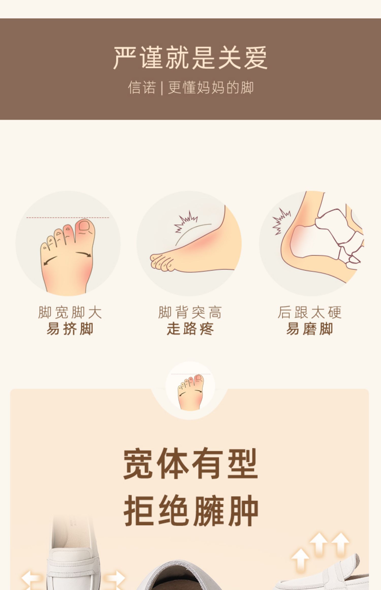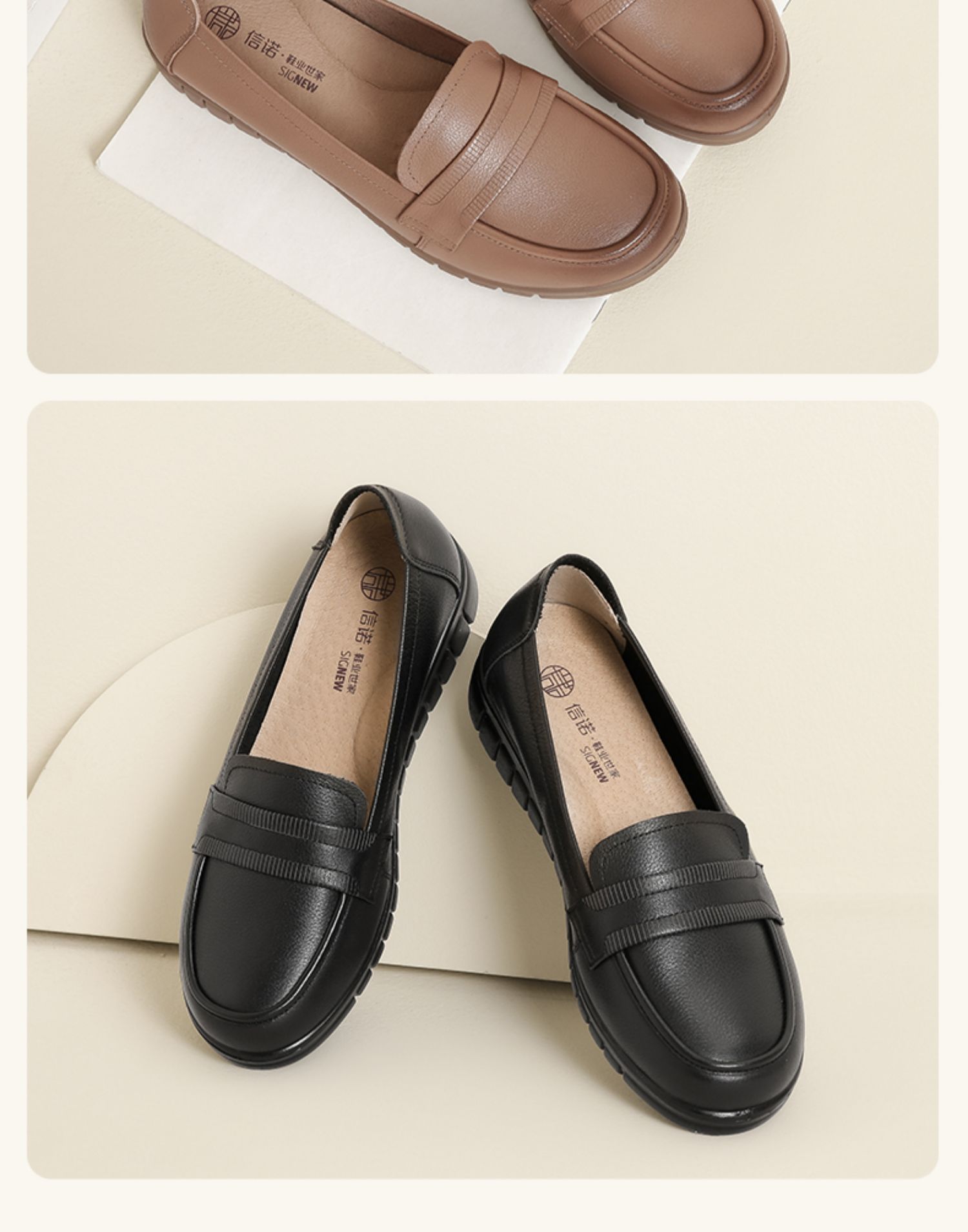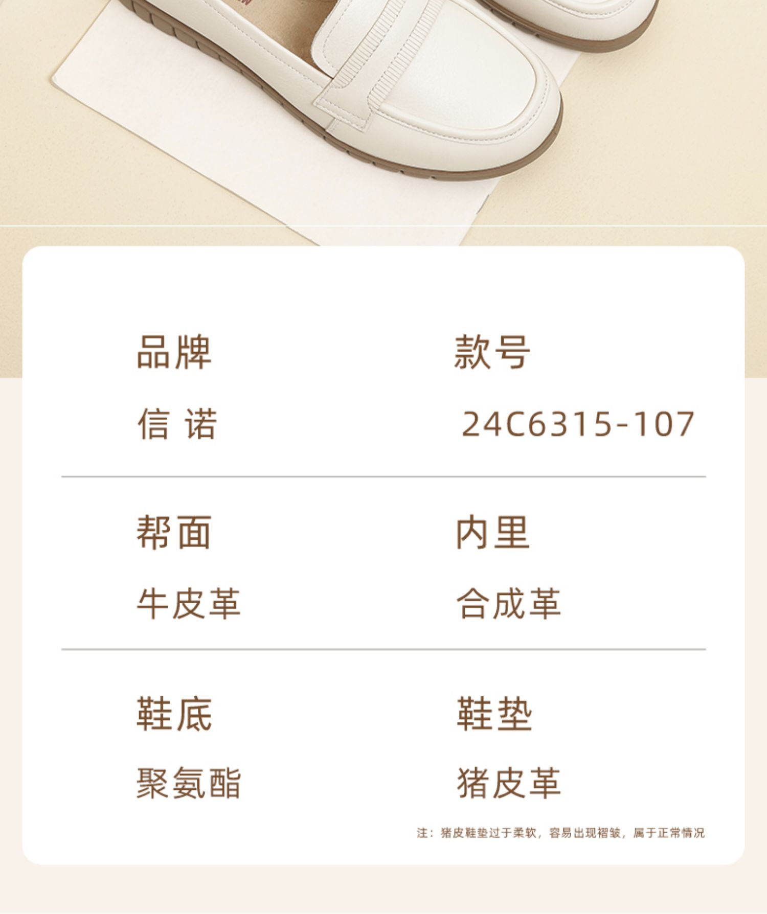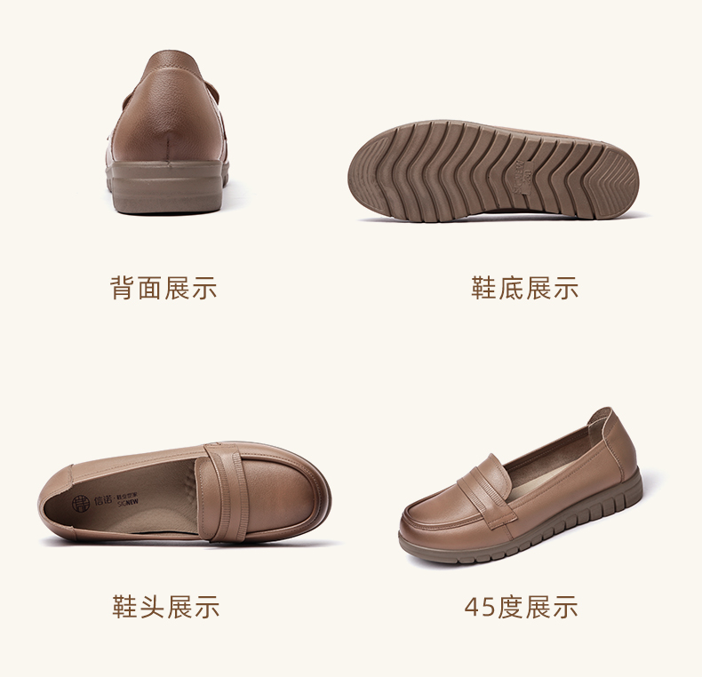 信诺真皮软底妈妈鞋2024新款春季舒适一脚蹬女单鞋中老年休闲皮鞋24C6315-107