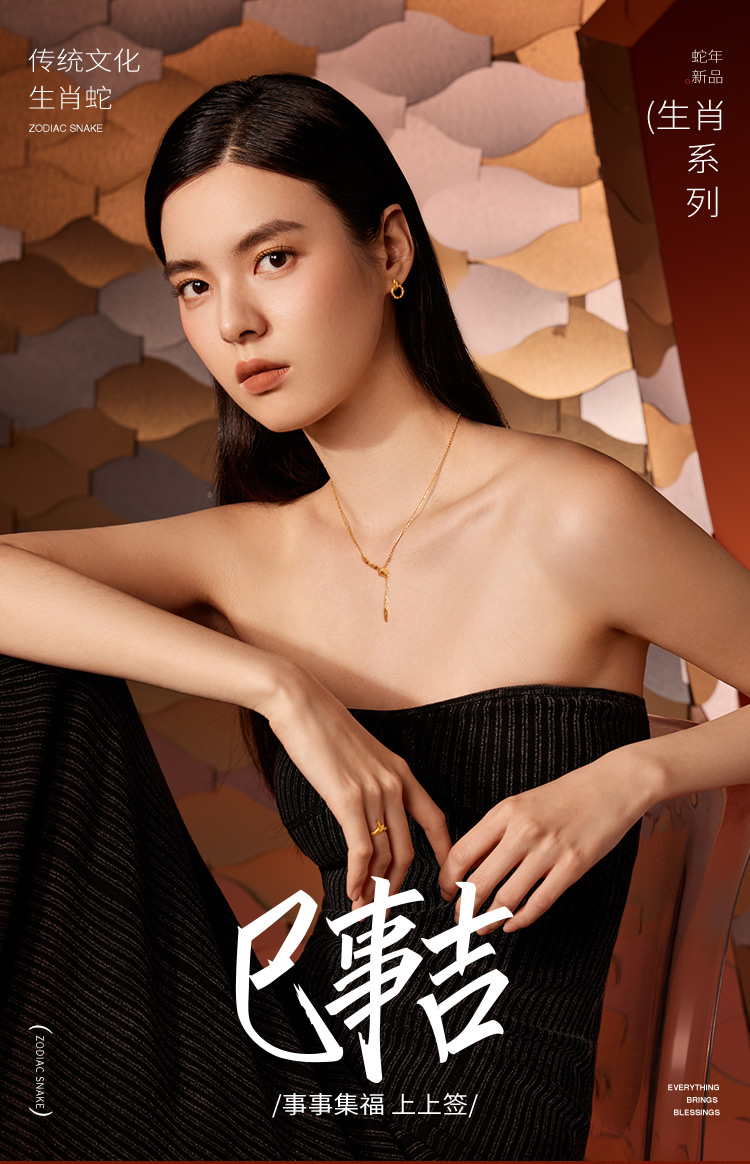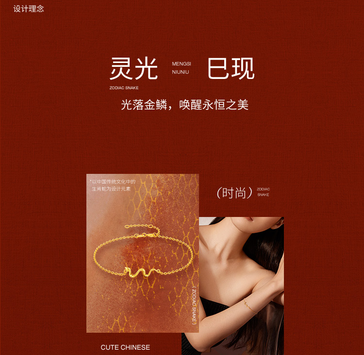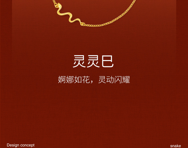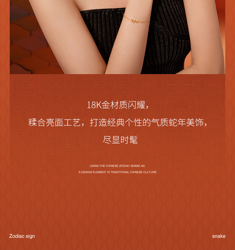 周六福黄18K金手链灵蛇手饰生肖蛇系列多彩金Au750送女友送女友礼物