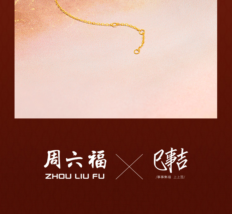周六福金镶玉暴富字金牌手串女士黄金和田青玉手链送女友礼物