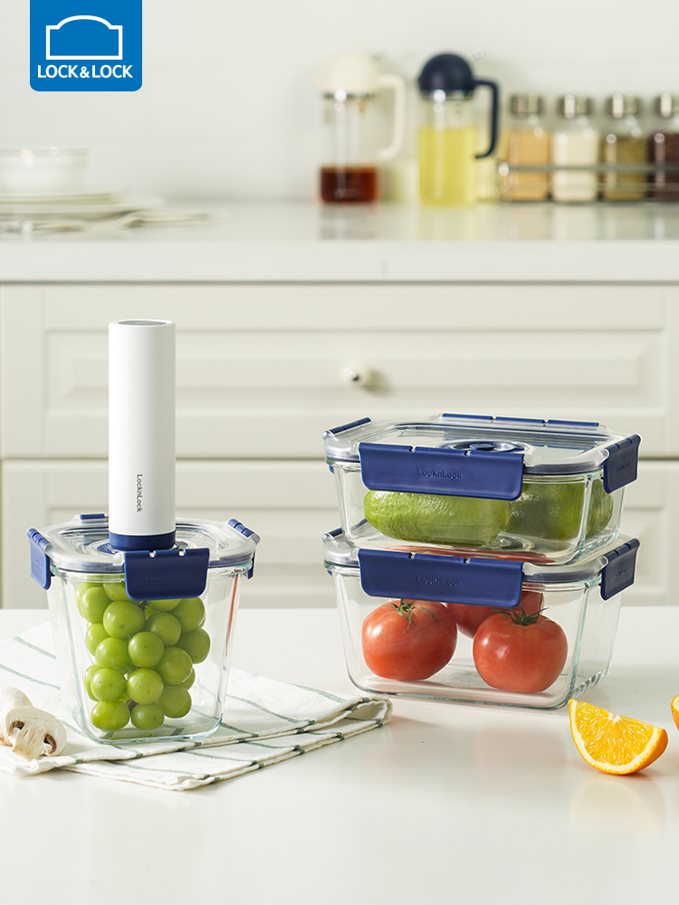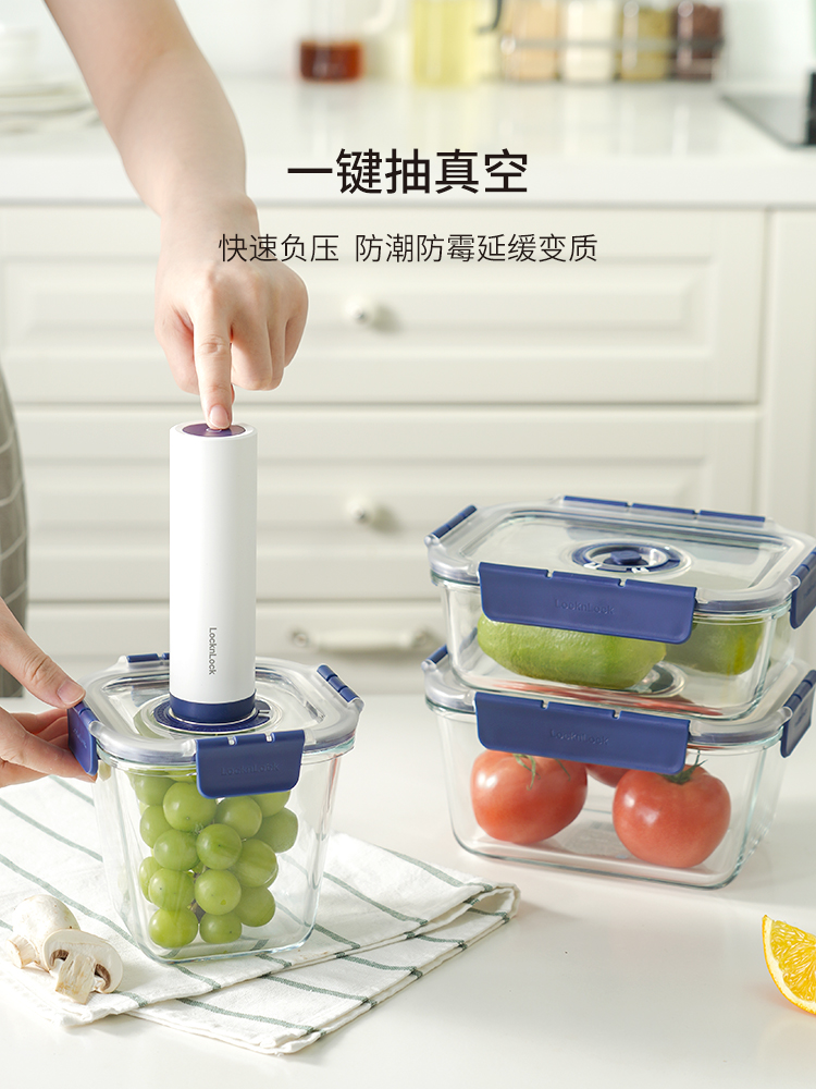 乐扣乐扣抽真空保鲜盒碗计时玻璃饭盒微波炉加热冰箱食品收纳密封盒