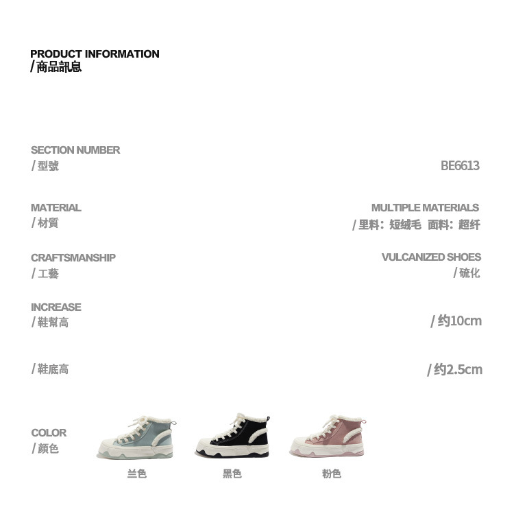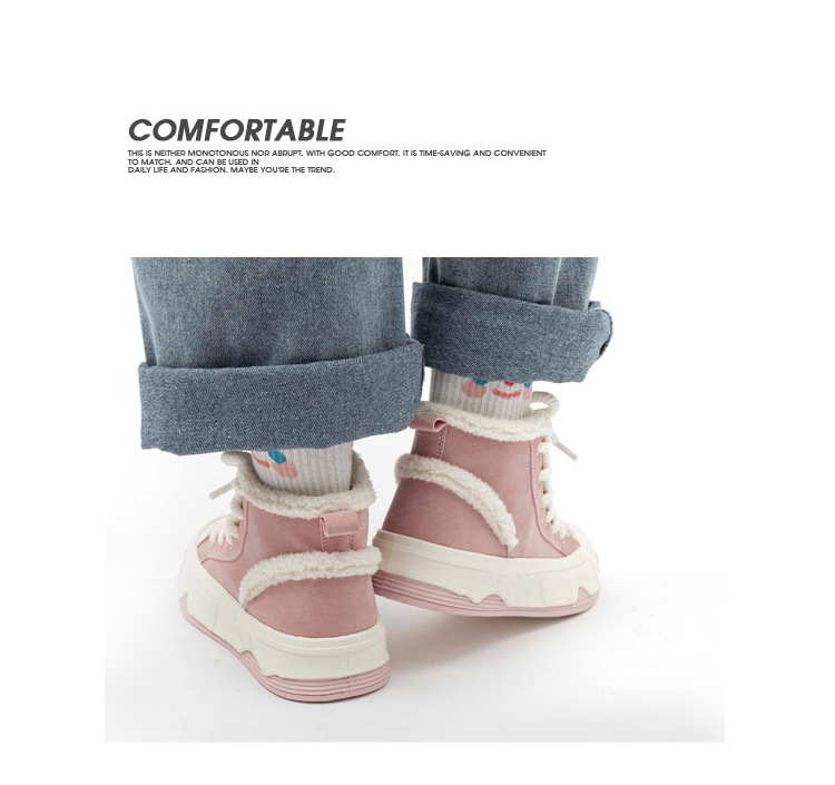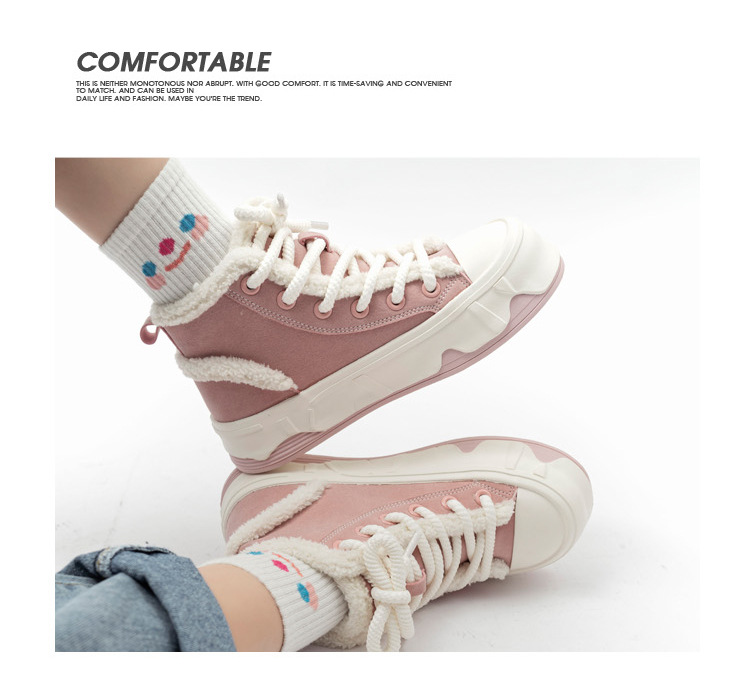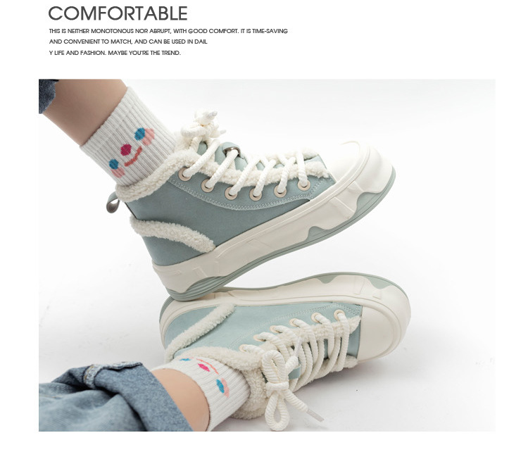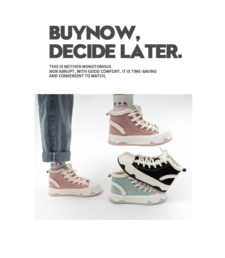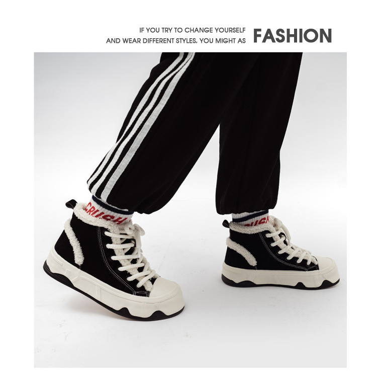 「三款配色!皮面加绒」高帮女鞋2023秋冬新款复古厚底板鞋子韩版保暖二棉鞋